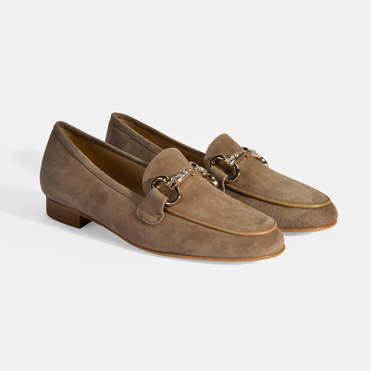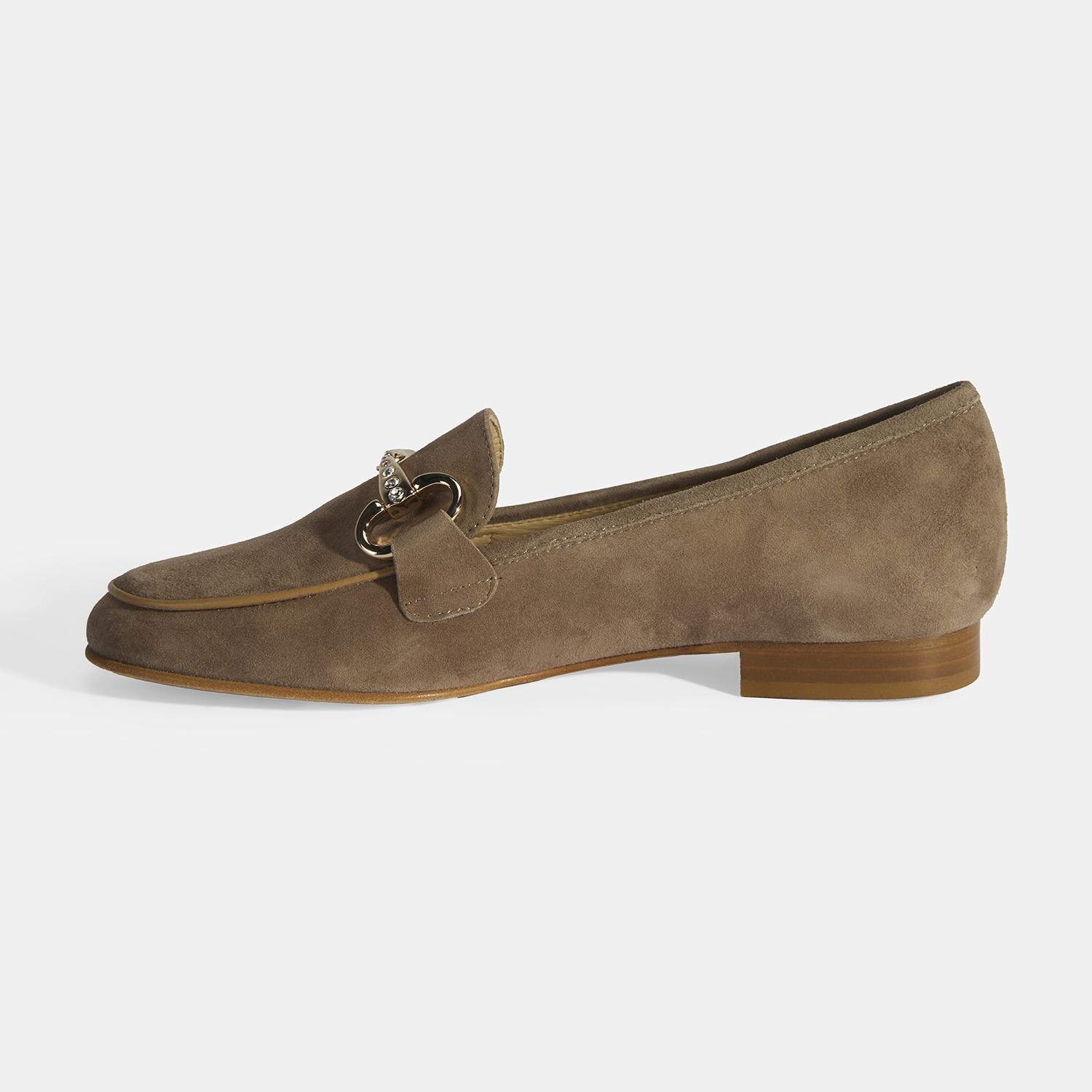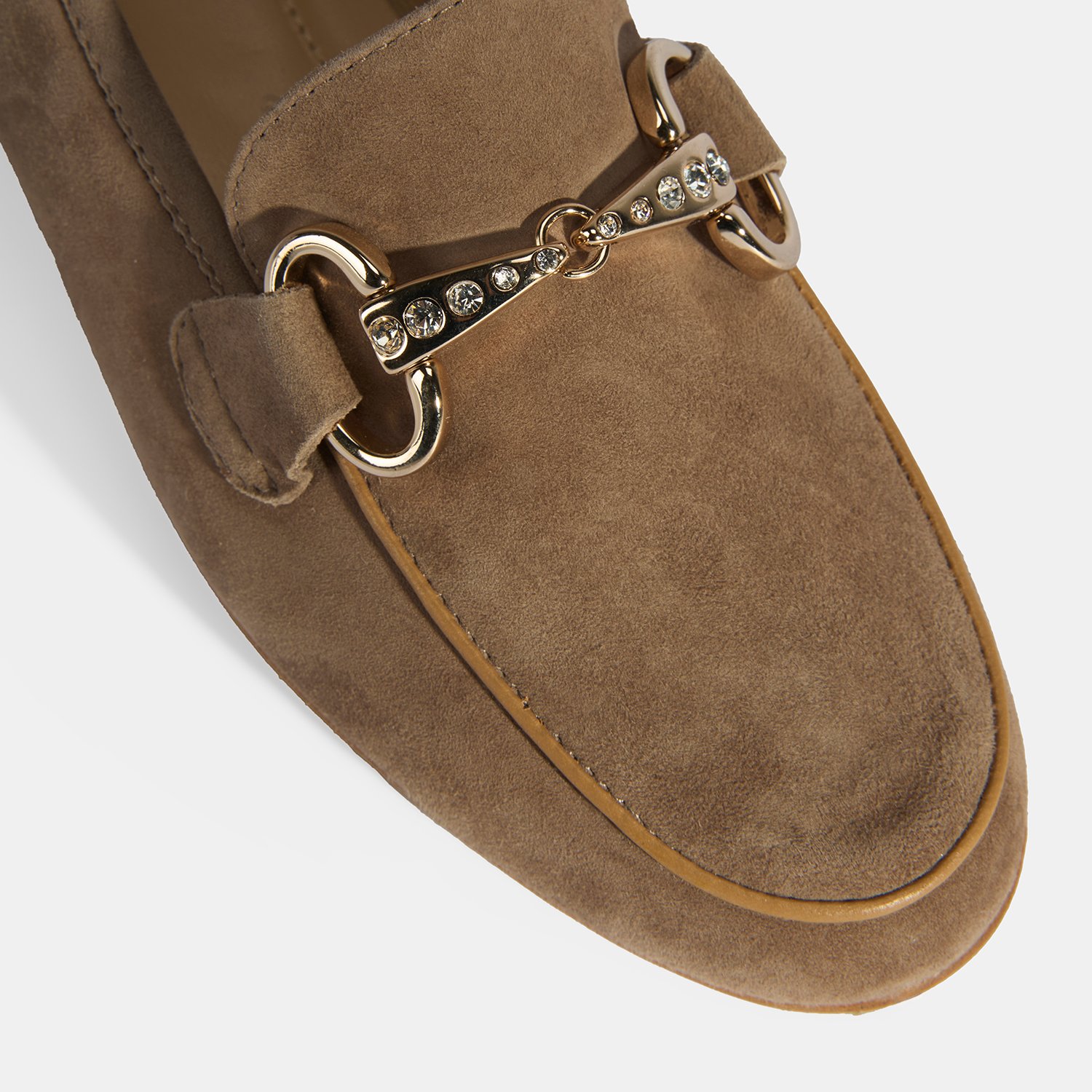 %100 süet deri, deri iç tabanlı, deri astarlı, metal toka aksesuar detaylı, kösele tabanlı, topuklu kadın loafer.