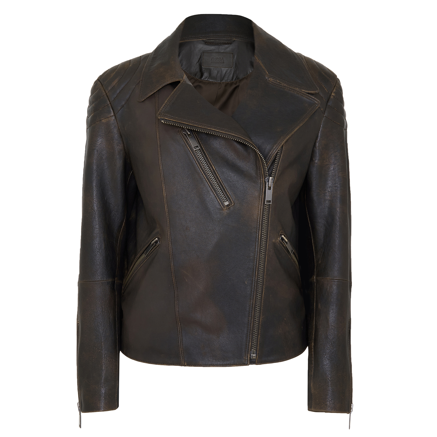 Lucette Kadın Eskitme Oversize Deri Biker Ceket
