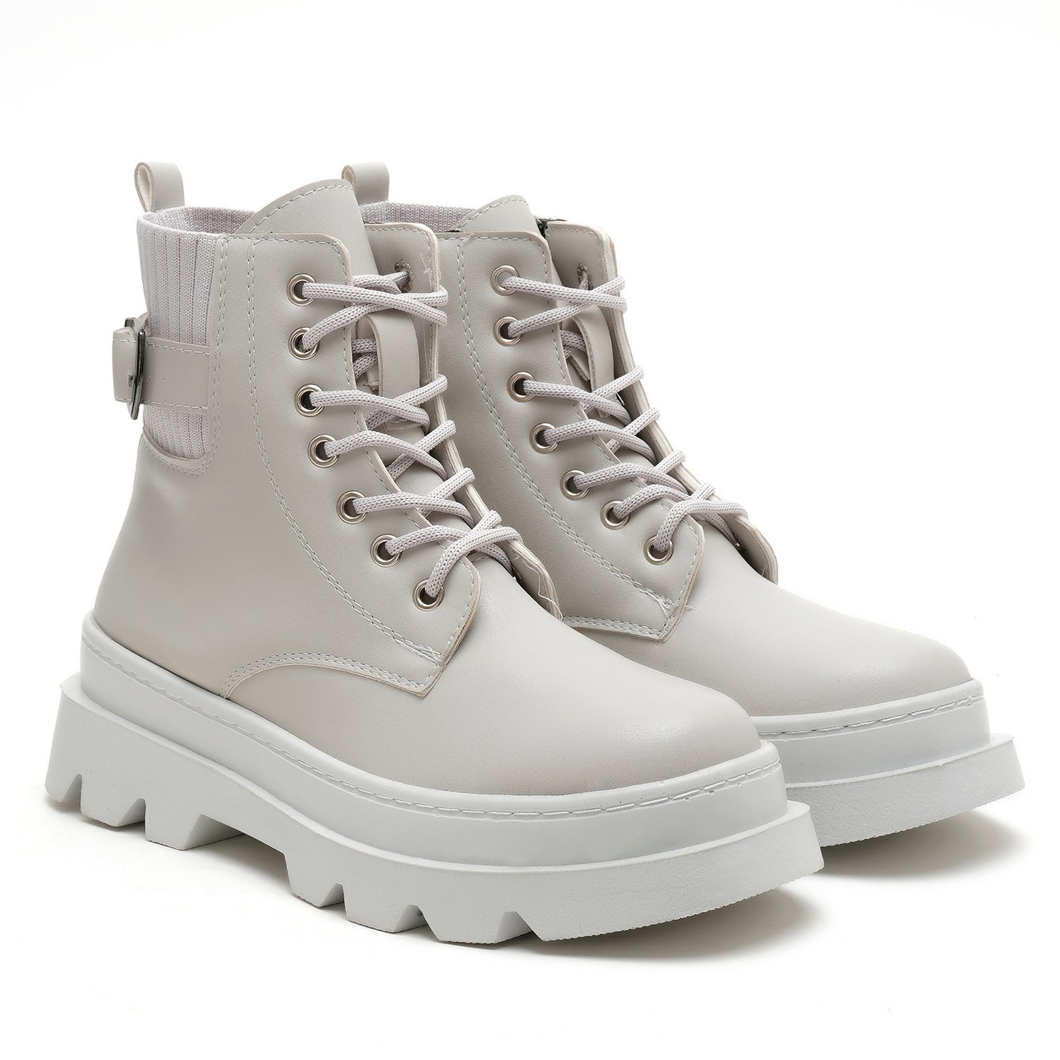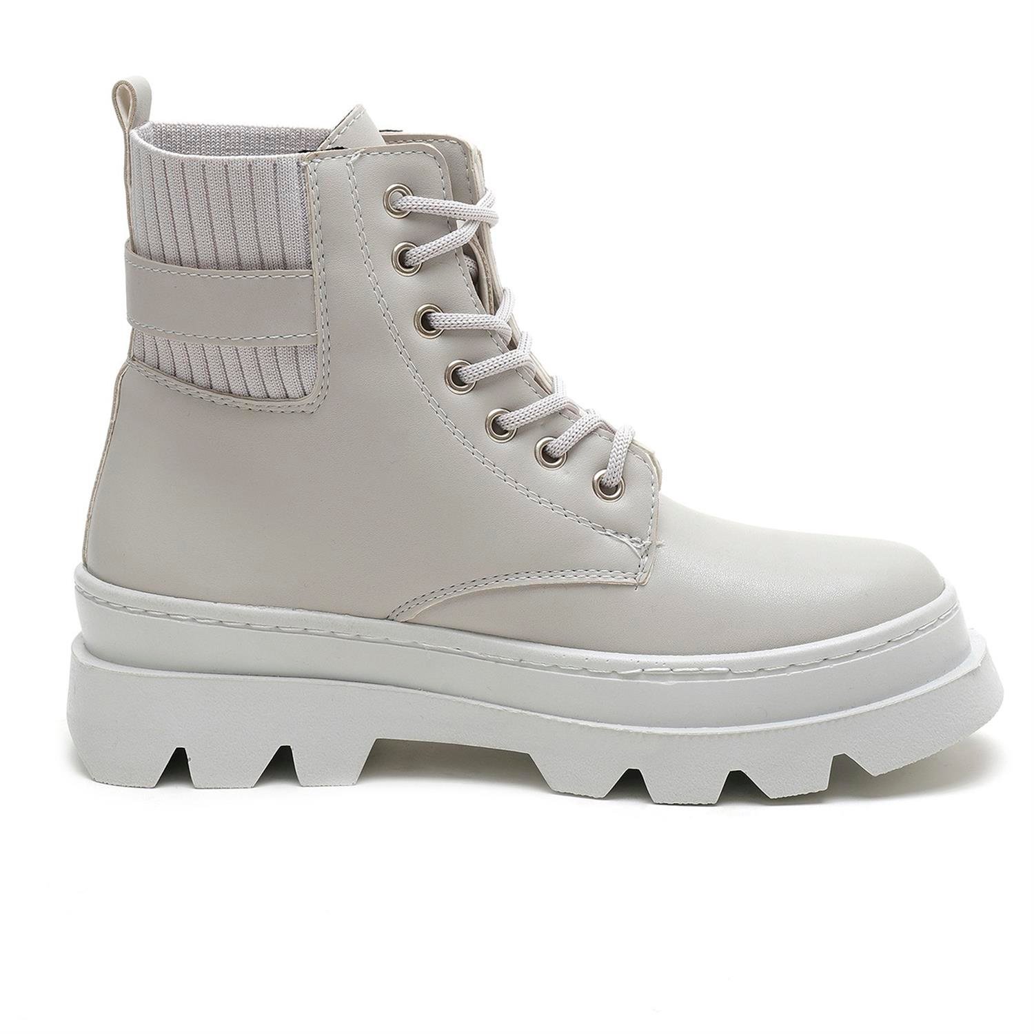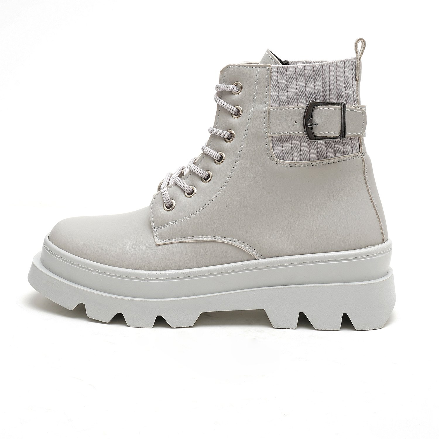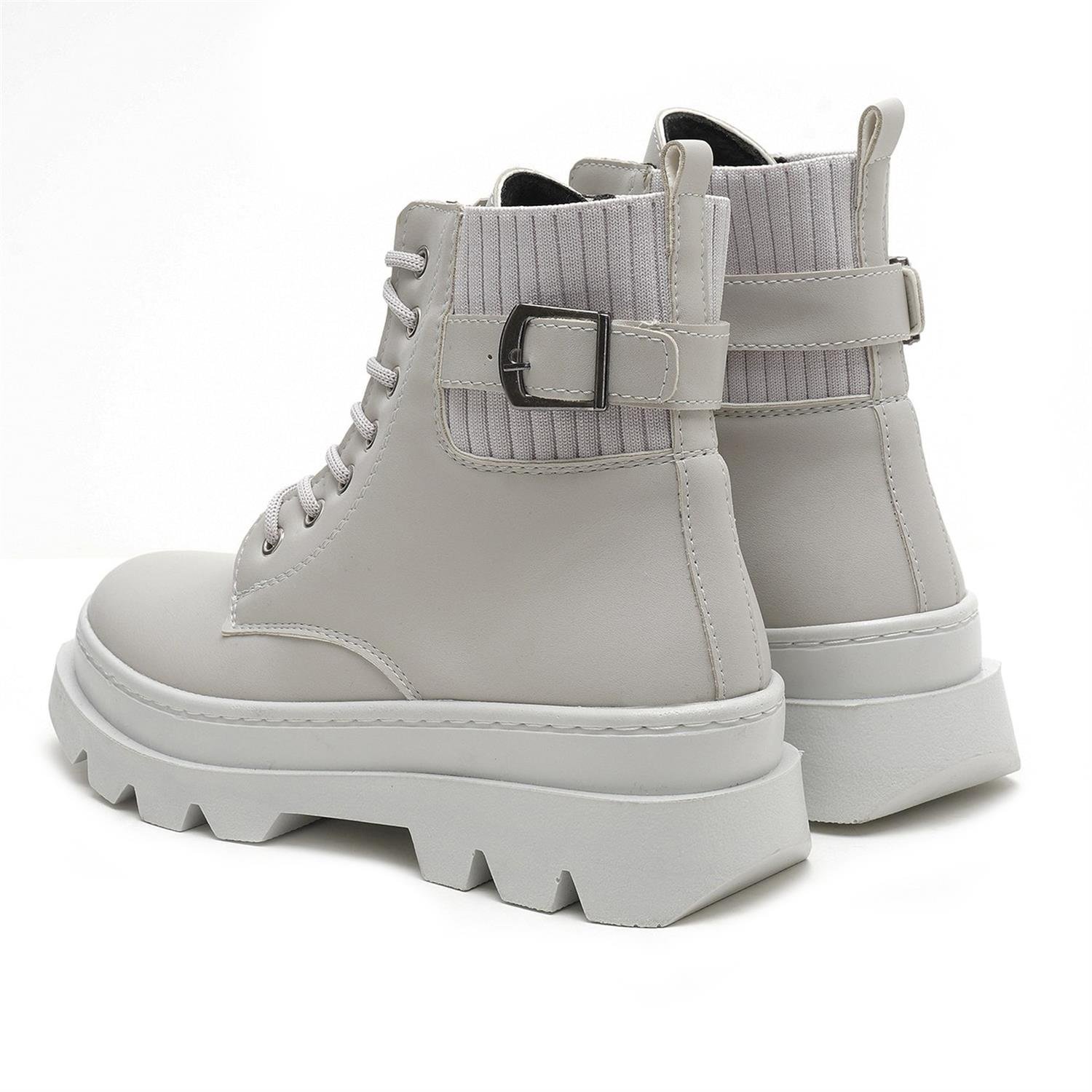 Deri iç tabanlı, tekstil iç astarlı, thermo tabanlı , triko detaylı, ayarlanabilir metal toka aksesuarlı, bağcıklı kadın bot.