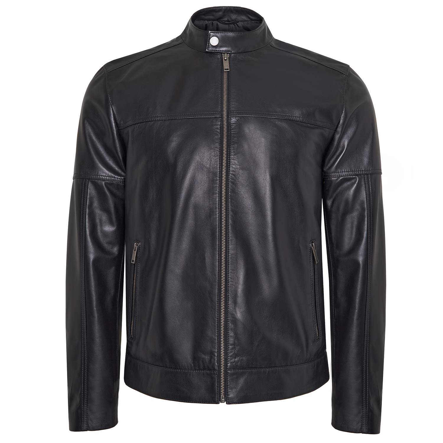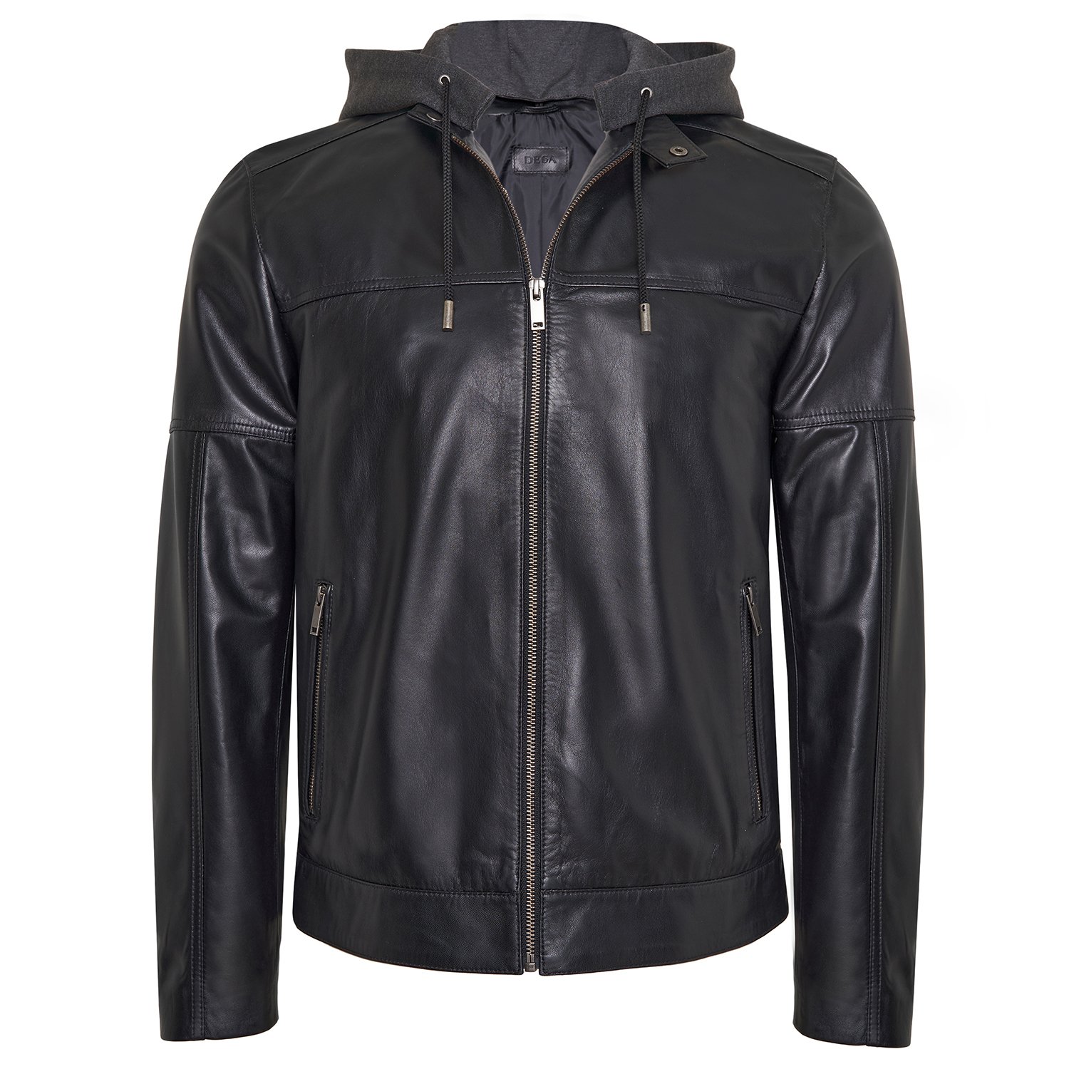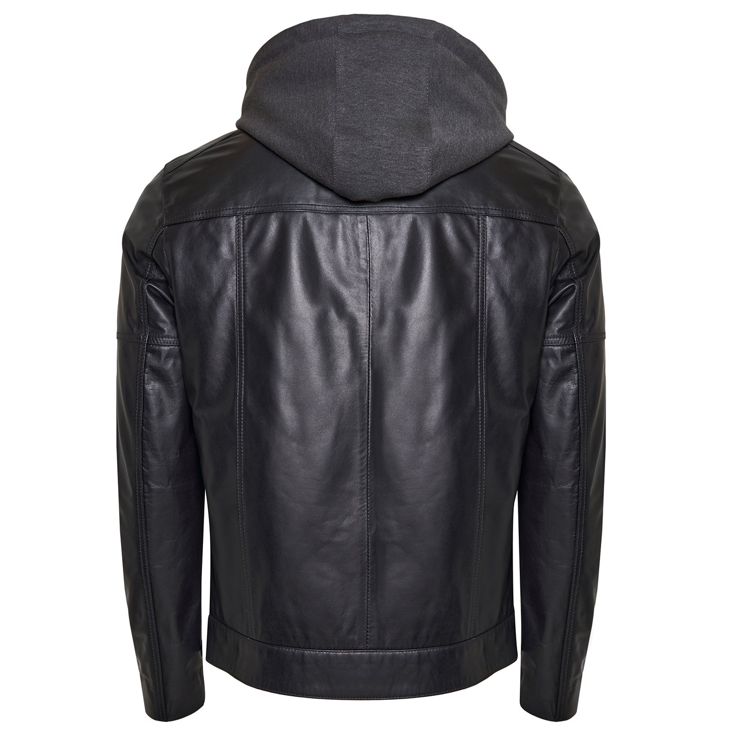 Luigi Siyah Erkek Deri Kapüşonlu Mont