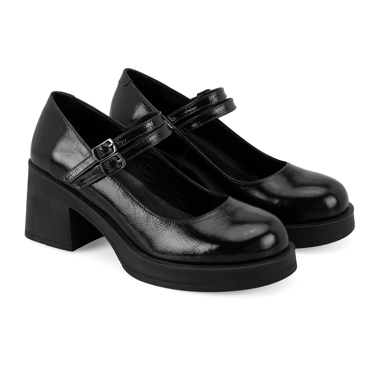 Luisa Siyah Kadın Topuklu Mary Jane Deri Klasik Ayakkabı