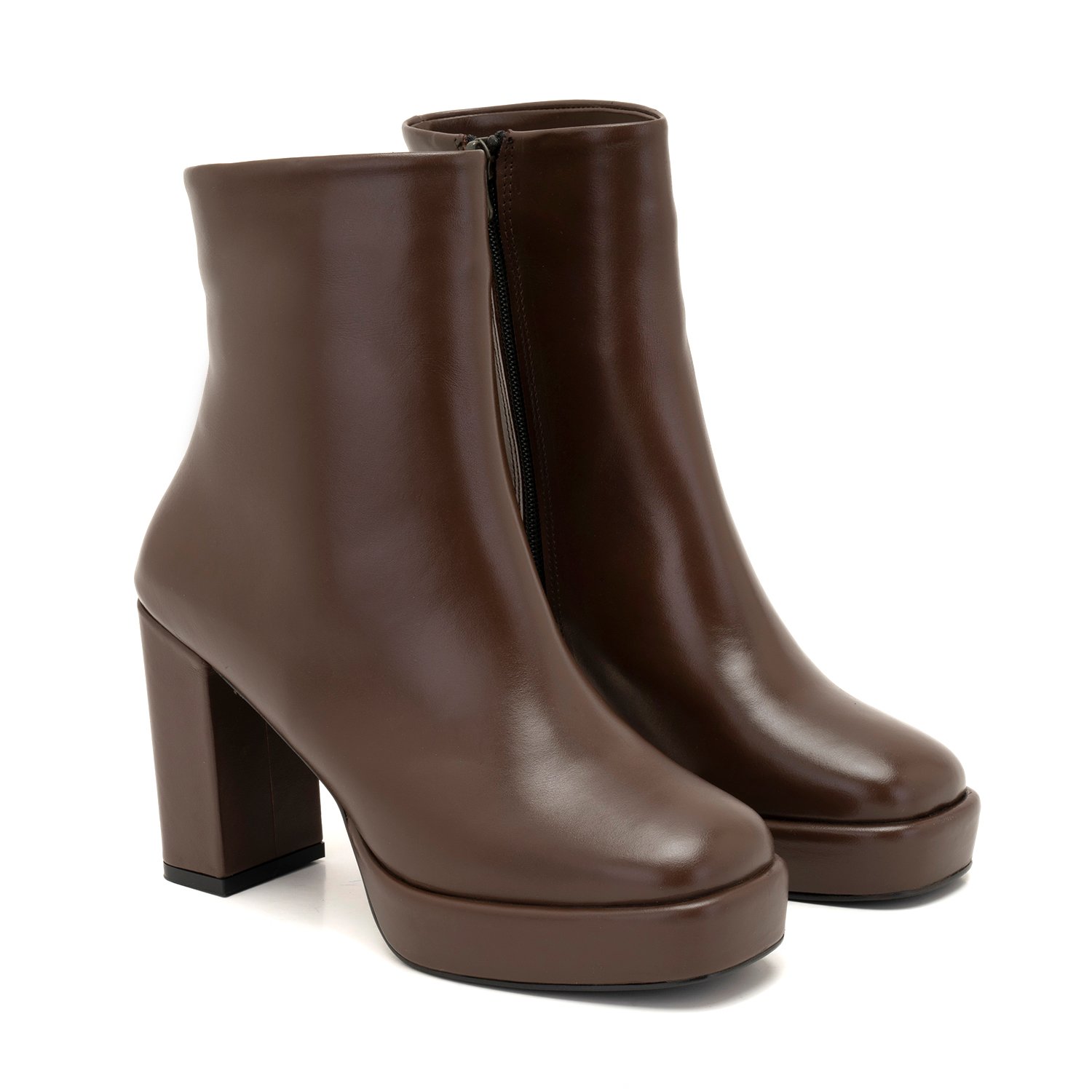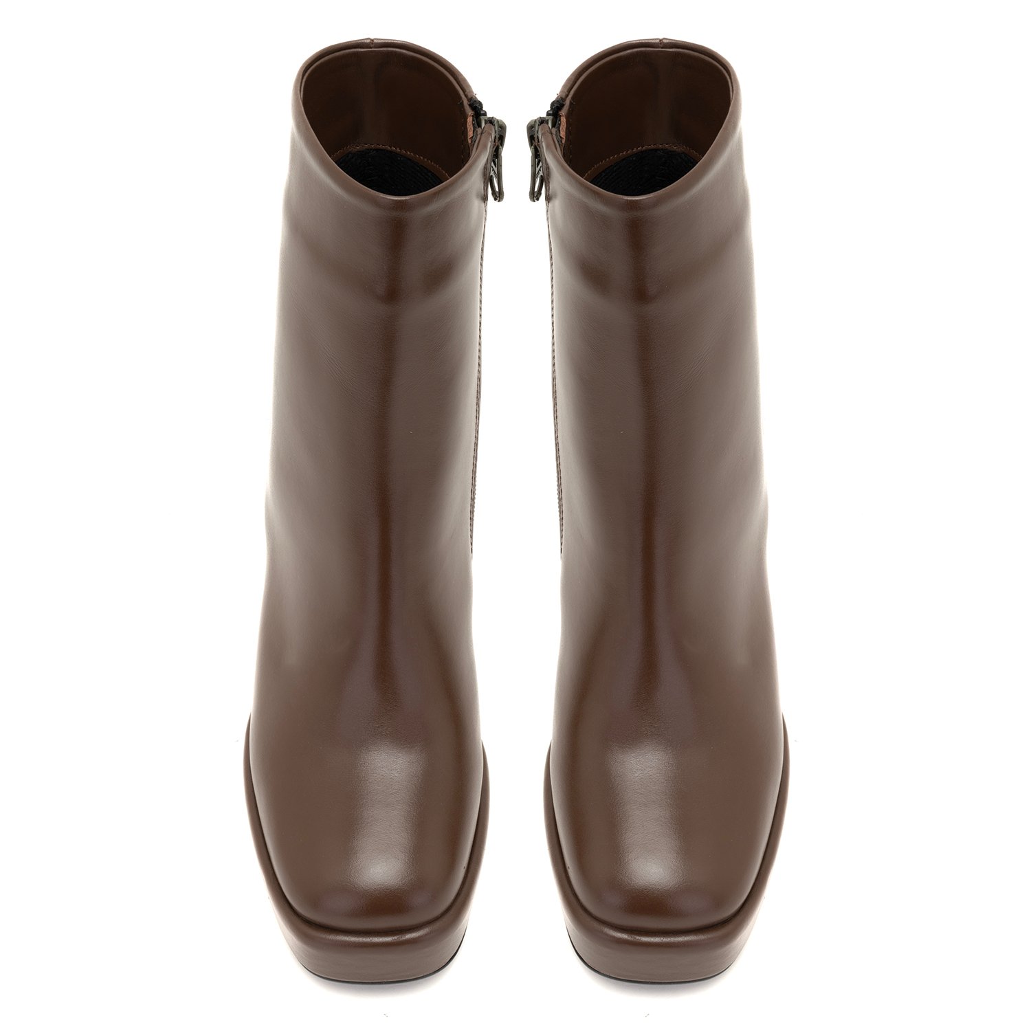Luliye Kahve Kadın Deri Platform Topuklu Bot