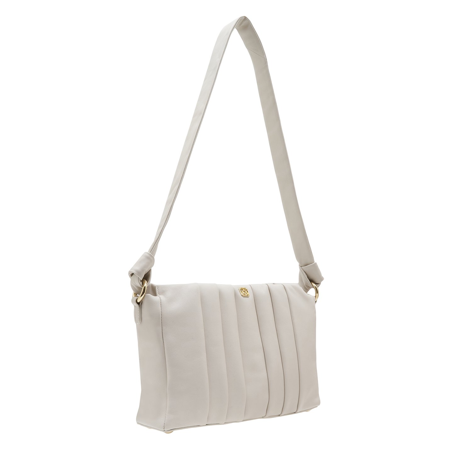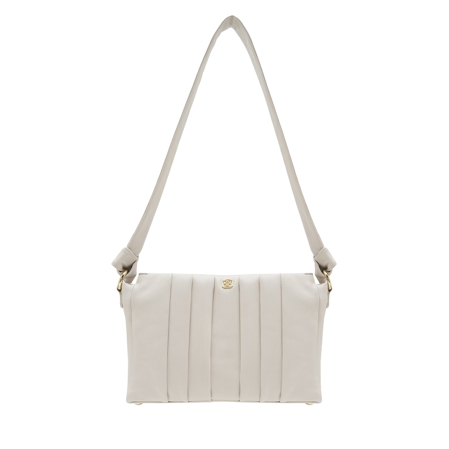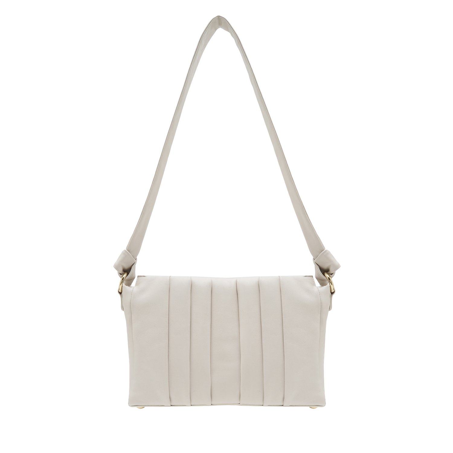Lupin Beyaz Kadın Pilili Deri Omuz Askılı Çanta