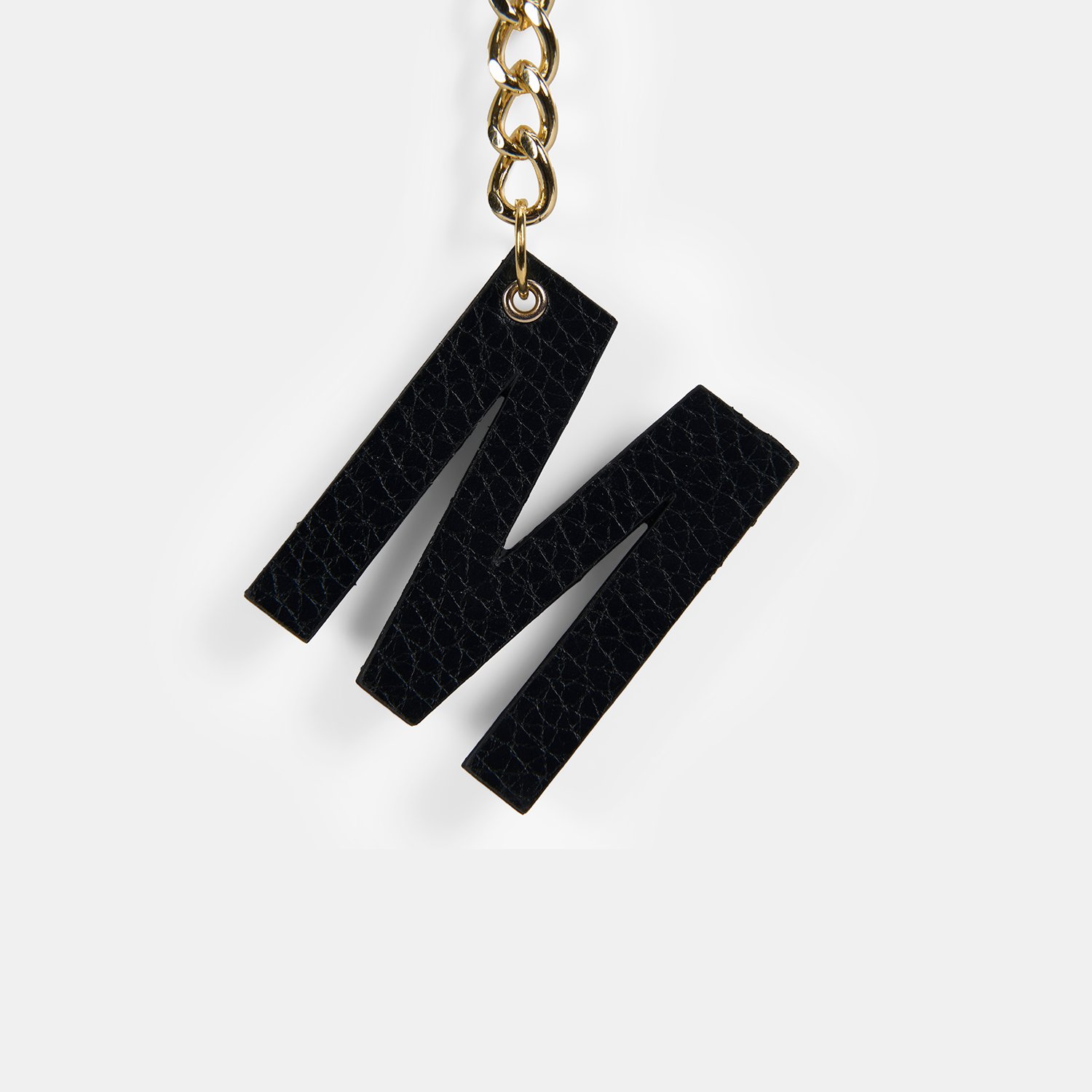 M Harfi Siyah Hakiki Deri Charm Anahtarlık