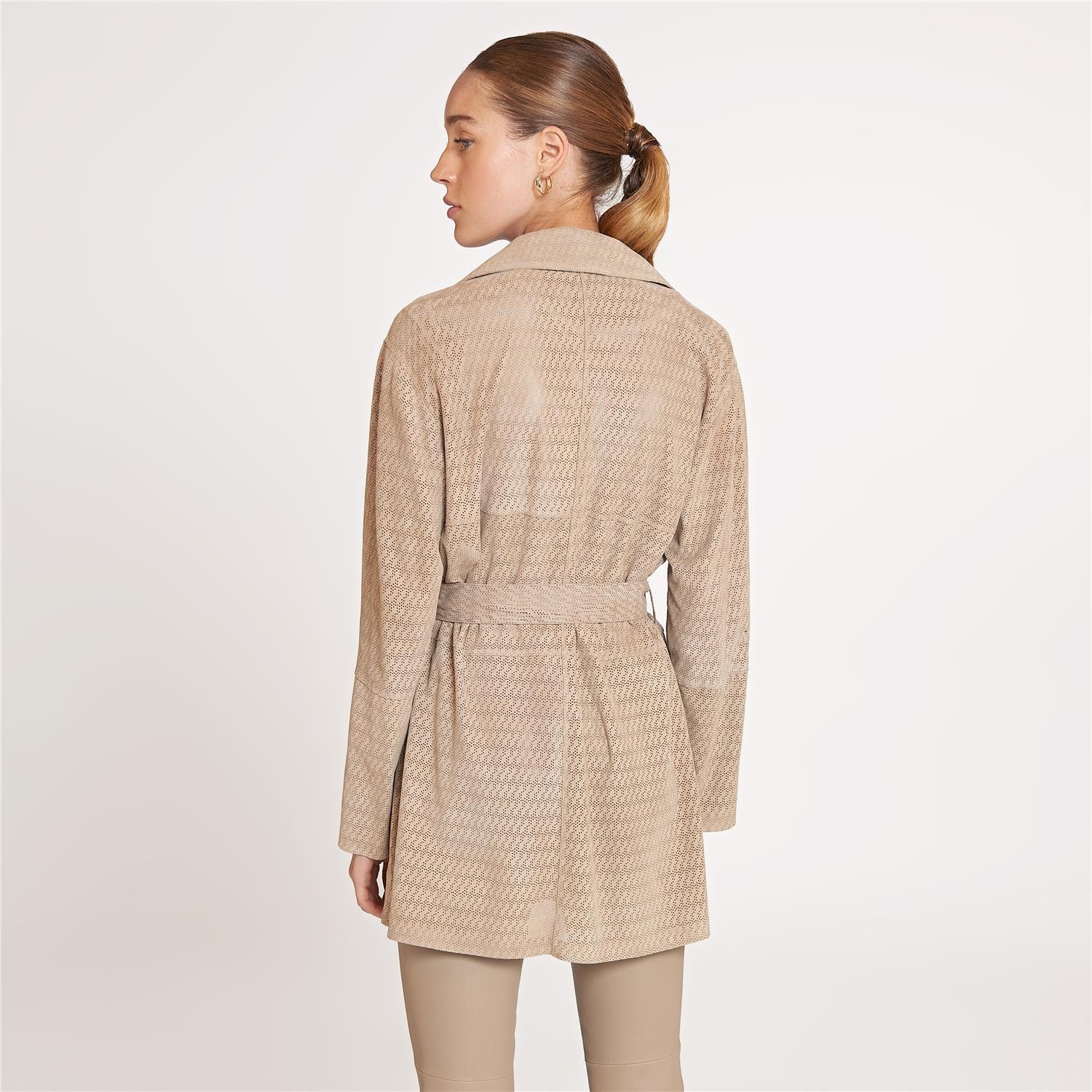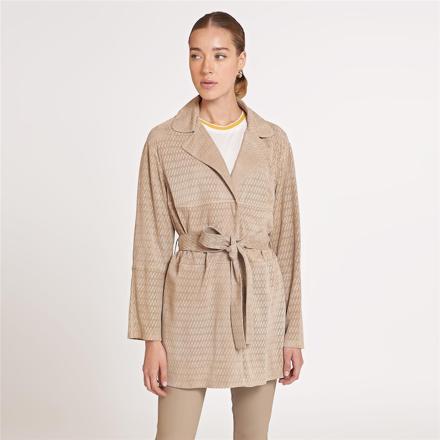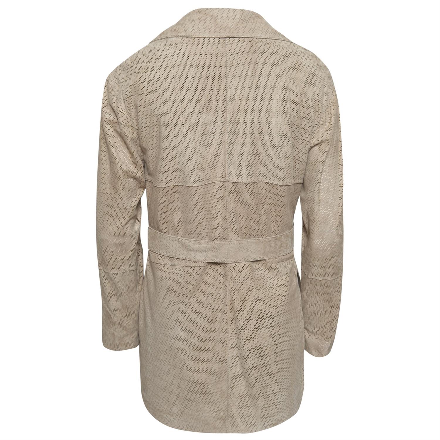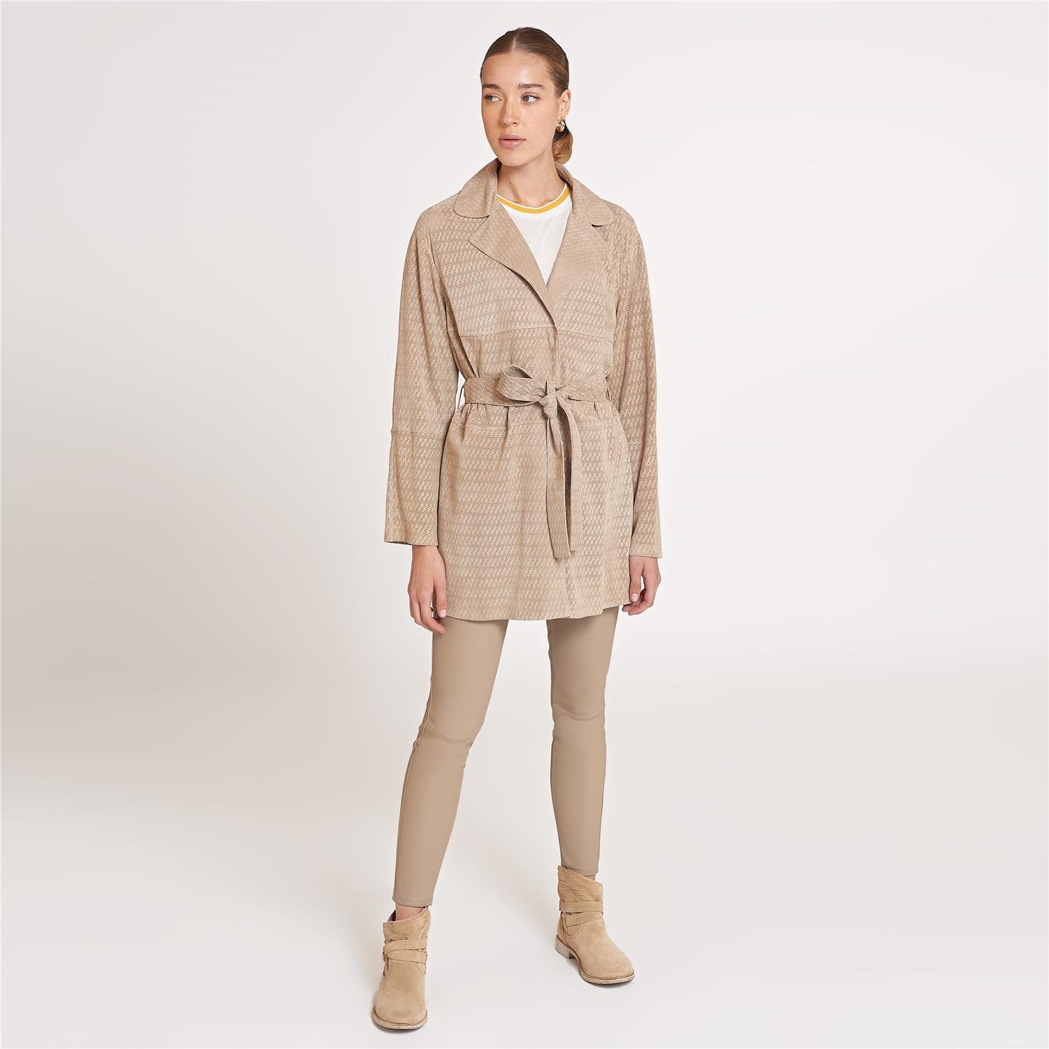 Süet deri üzerine özel olarak perfore çalışması uygulanmıştır.