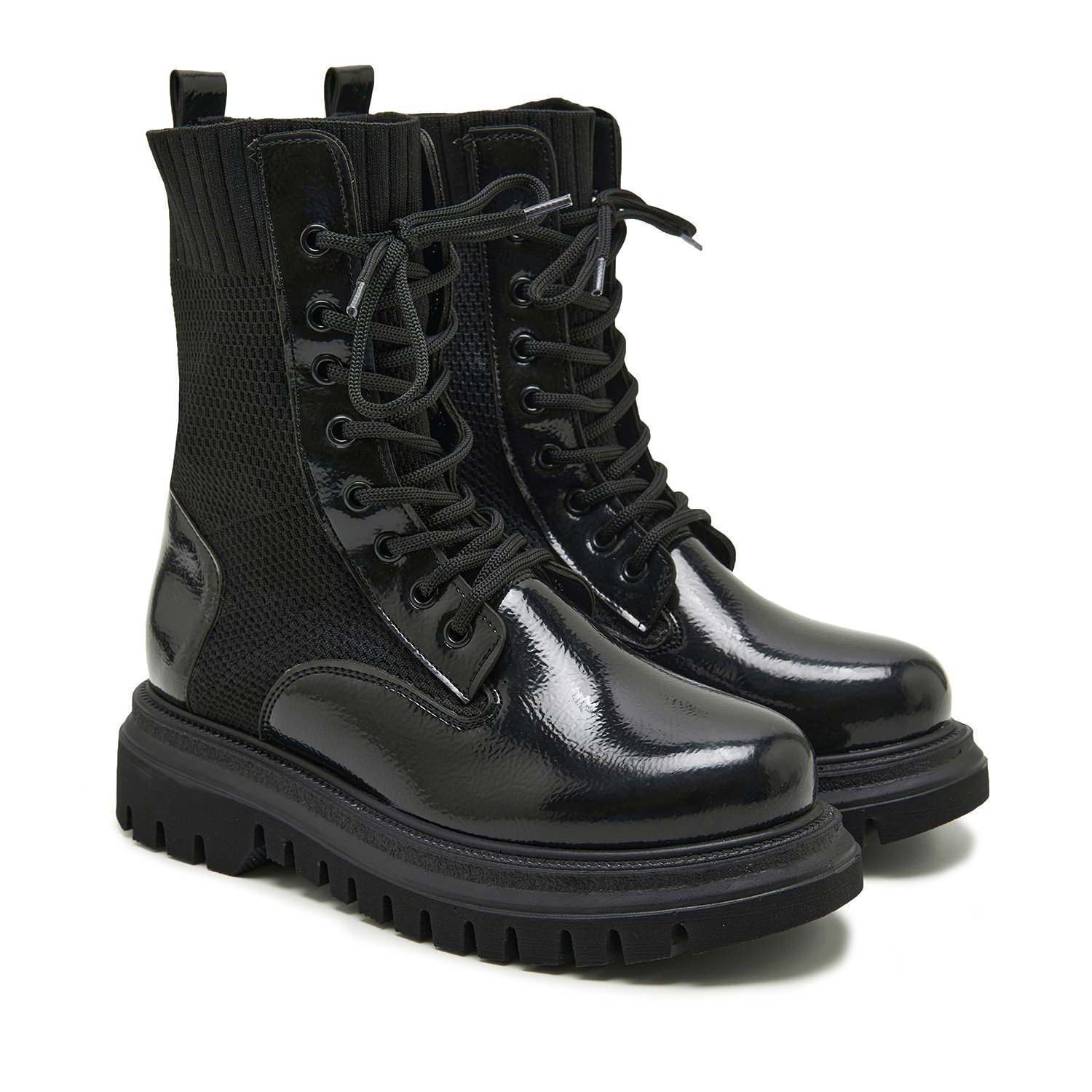 Triko&poliüretan materyalden üretilmiş,bağcıklı ,hafif poliüretan tabanlı kadın bot.