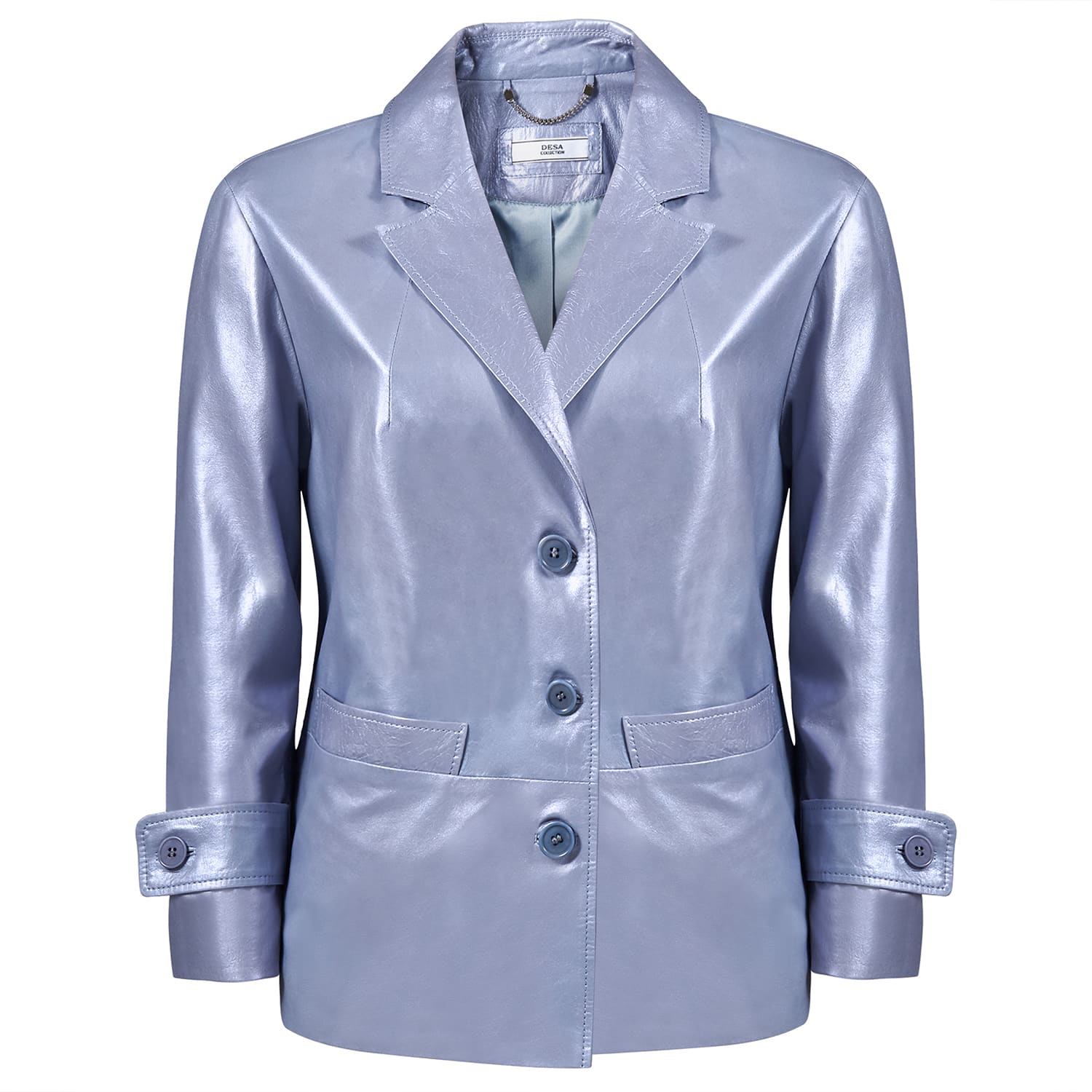 Önden düğme kapamalı yakalı kadın ceket.