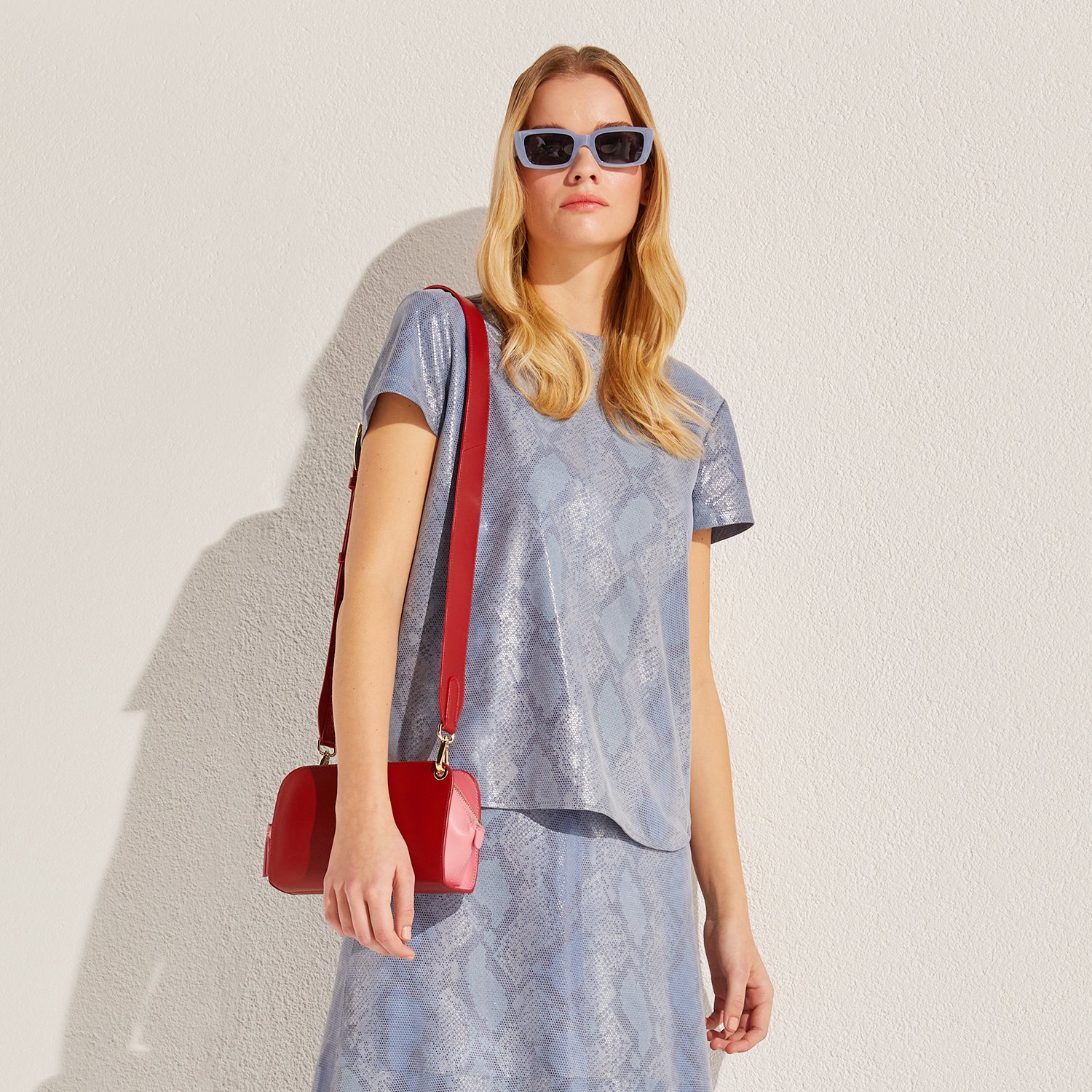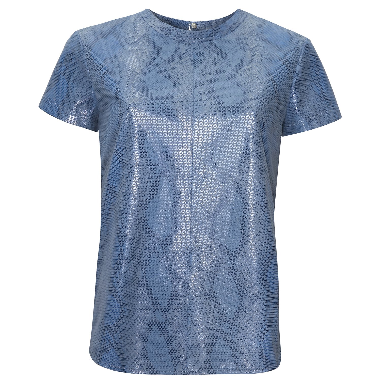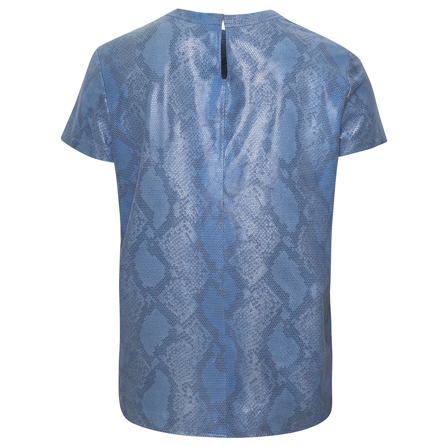 Kadın yuvarlak yakalı piton kağıt baskılı bluz, arkadan düğme kapamalıdır.