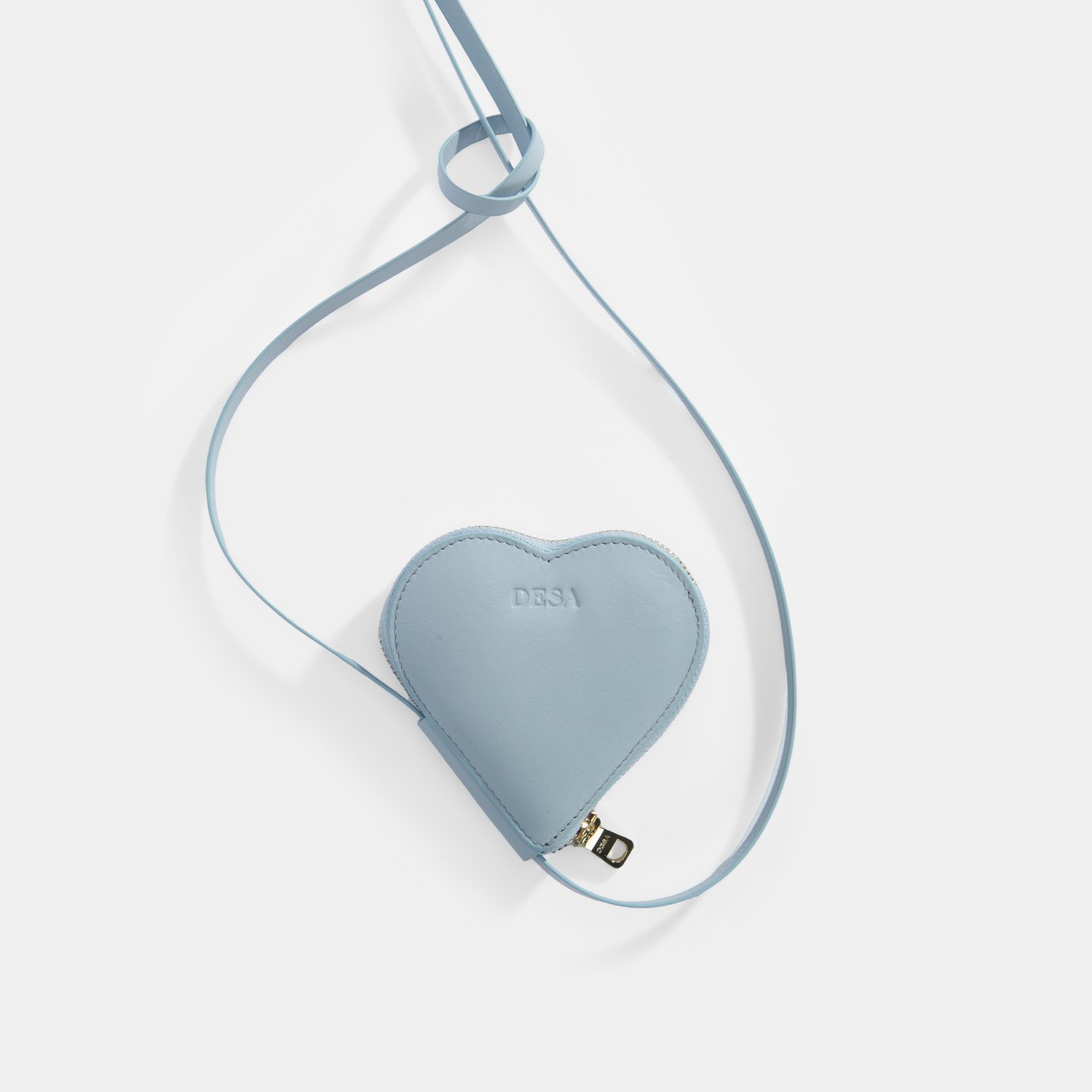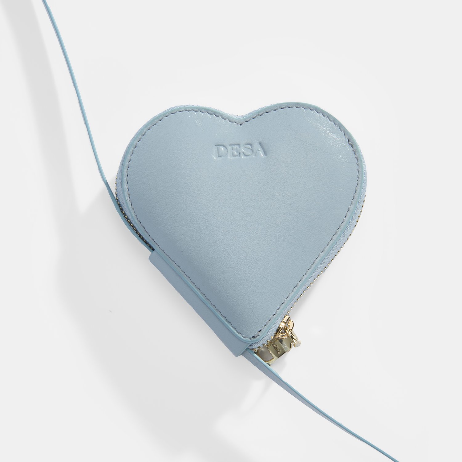 Mavi Kalp Figürlü Mini Askılı Deri Cüzdan