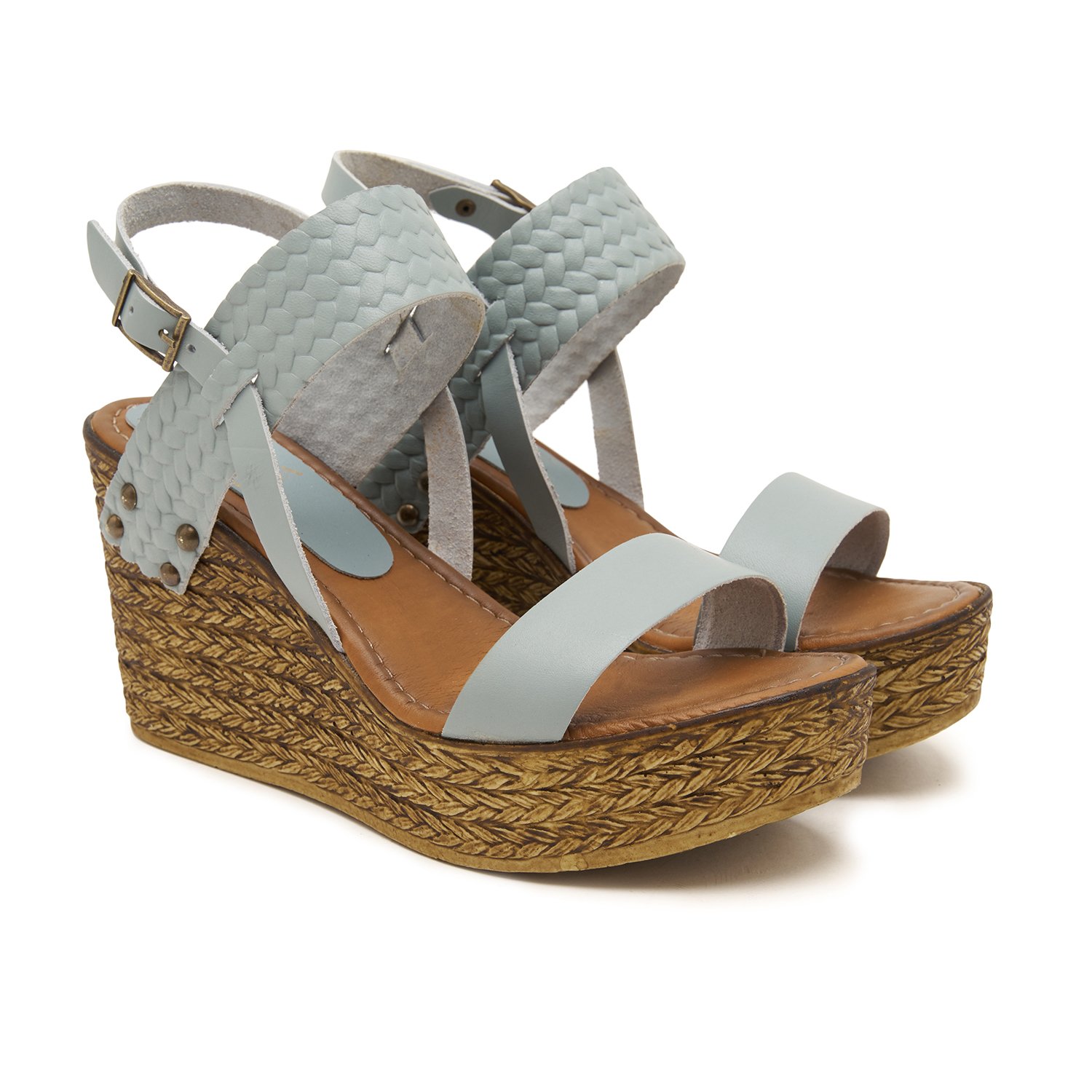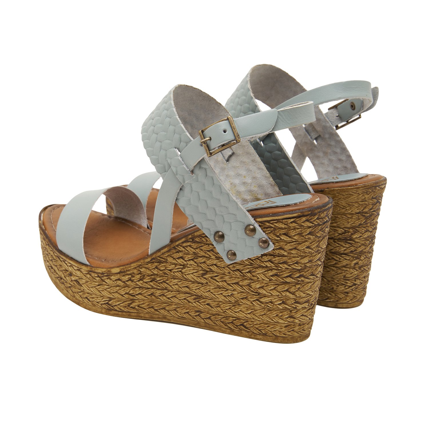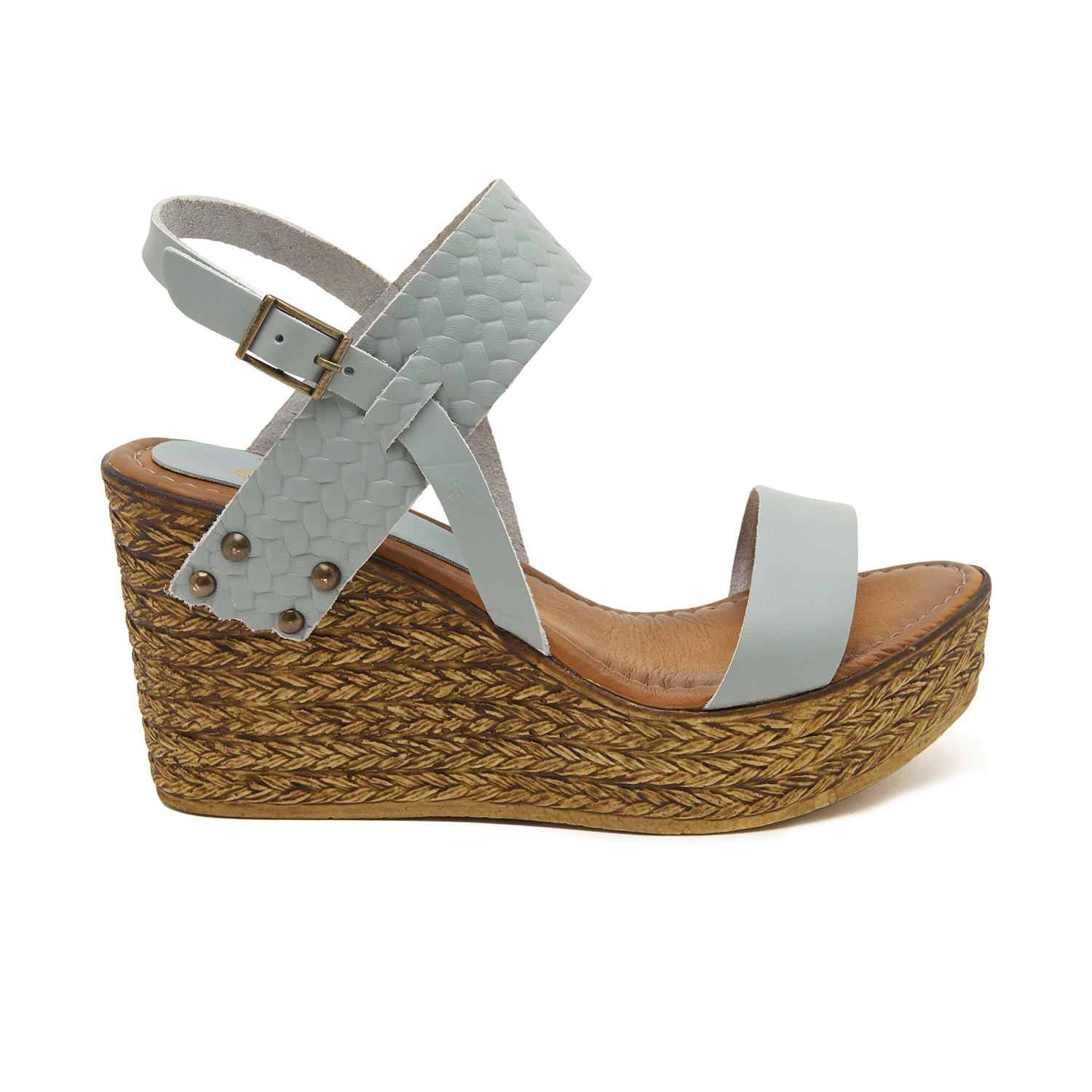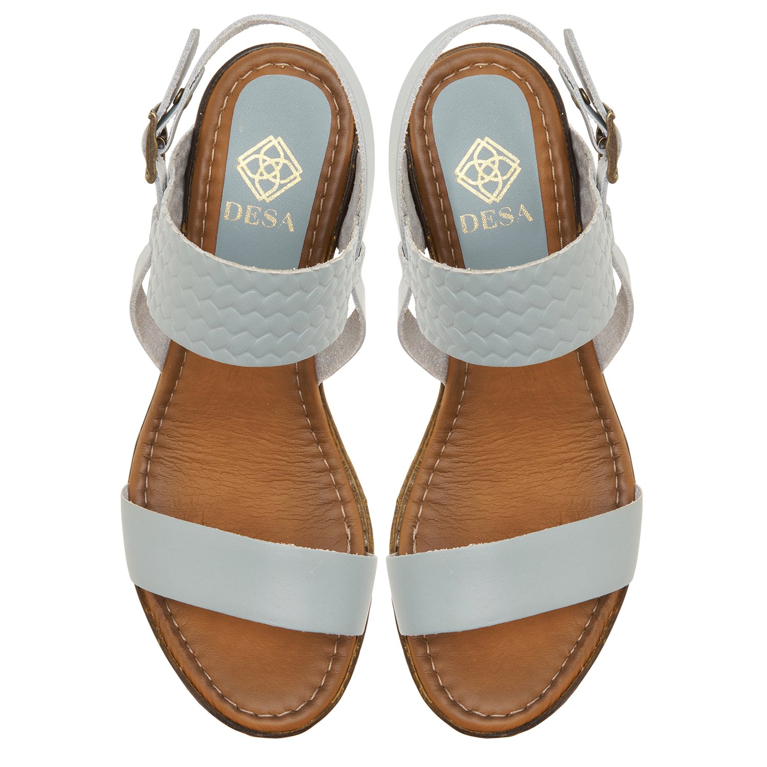 Örgü ile detaylandırılmış, astarsız, deri iç tabanlı, hafif poliüretan tabanlı kadın sandalet.