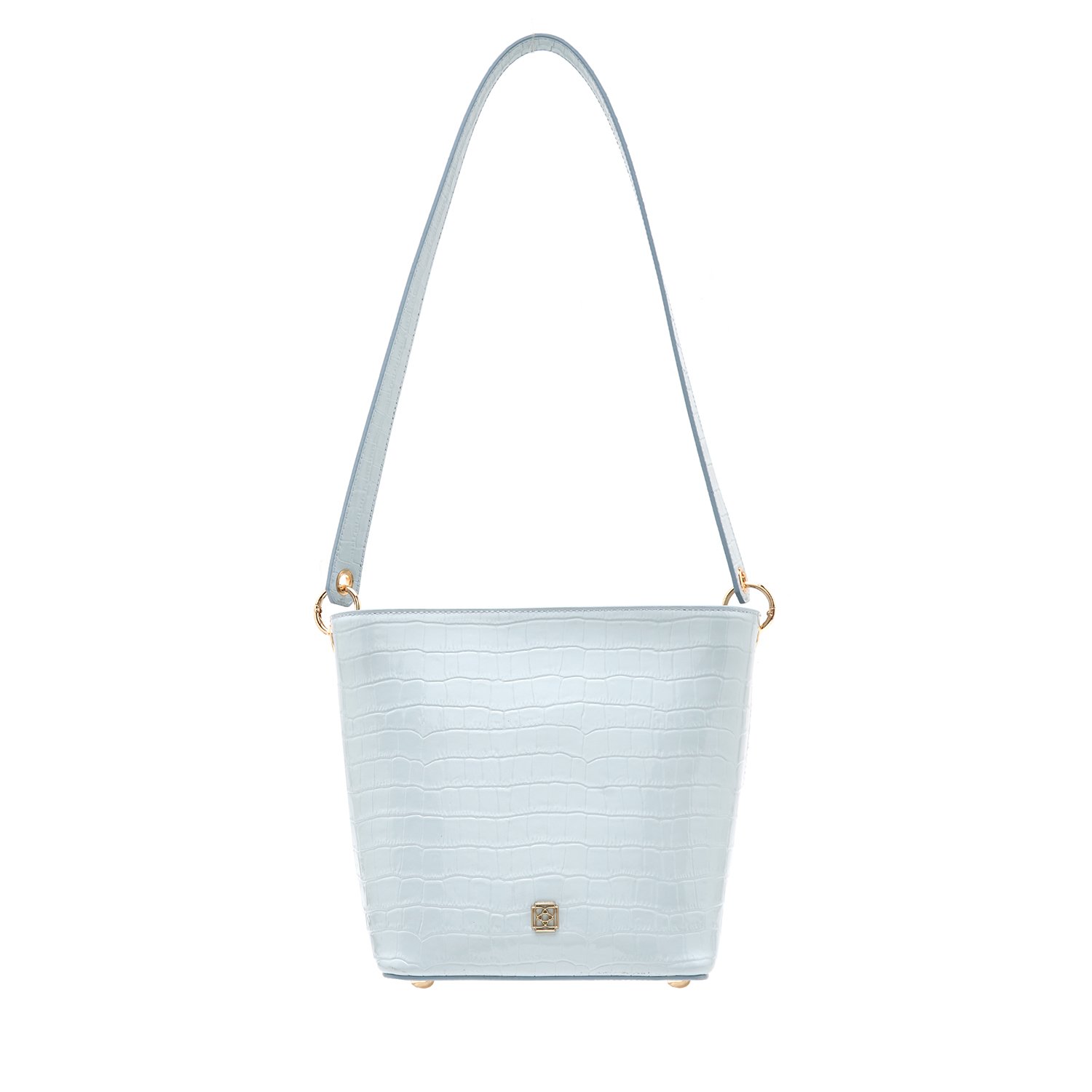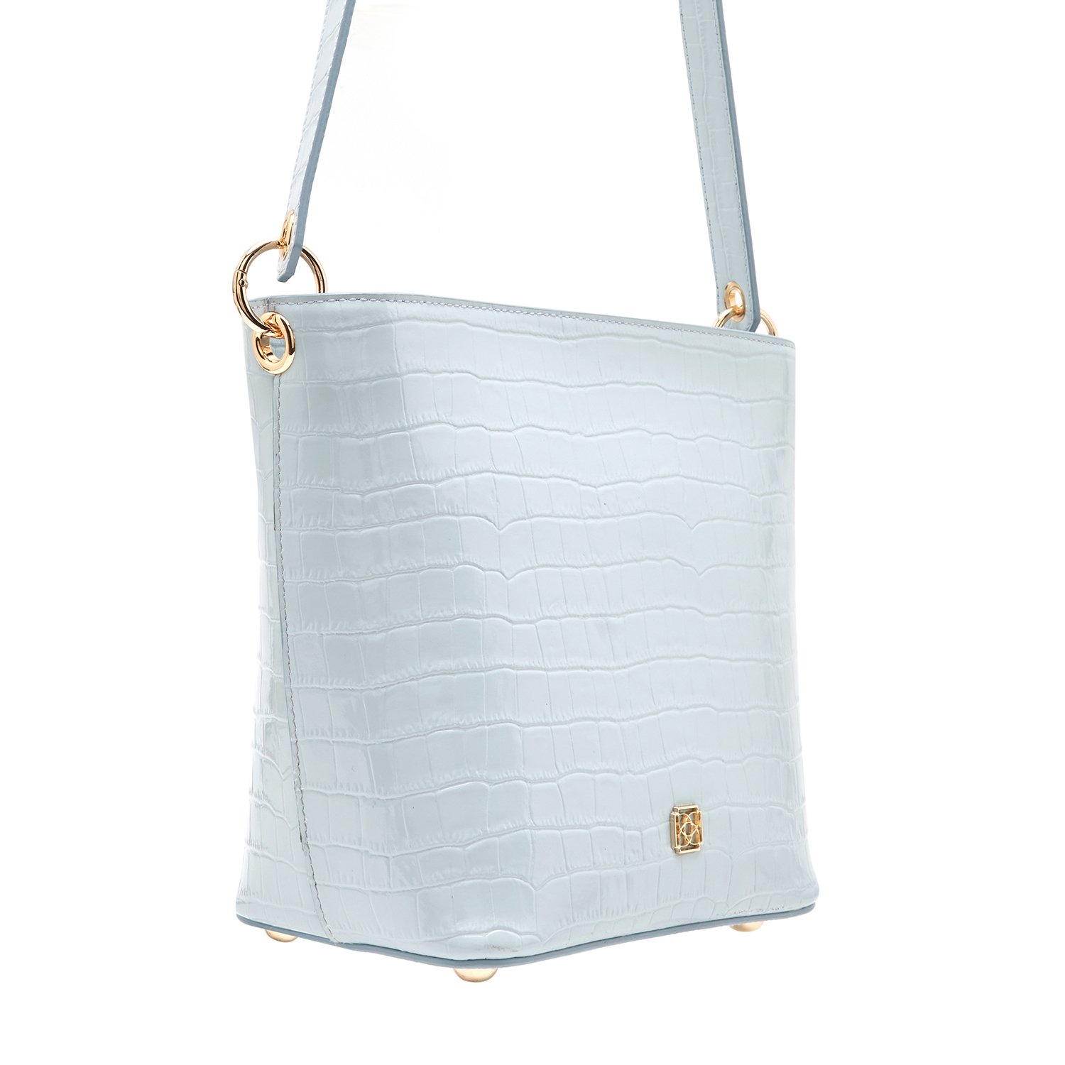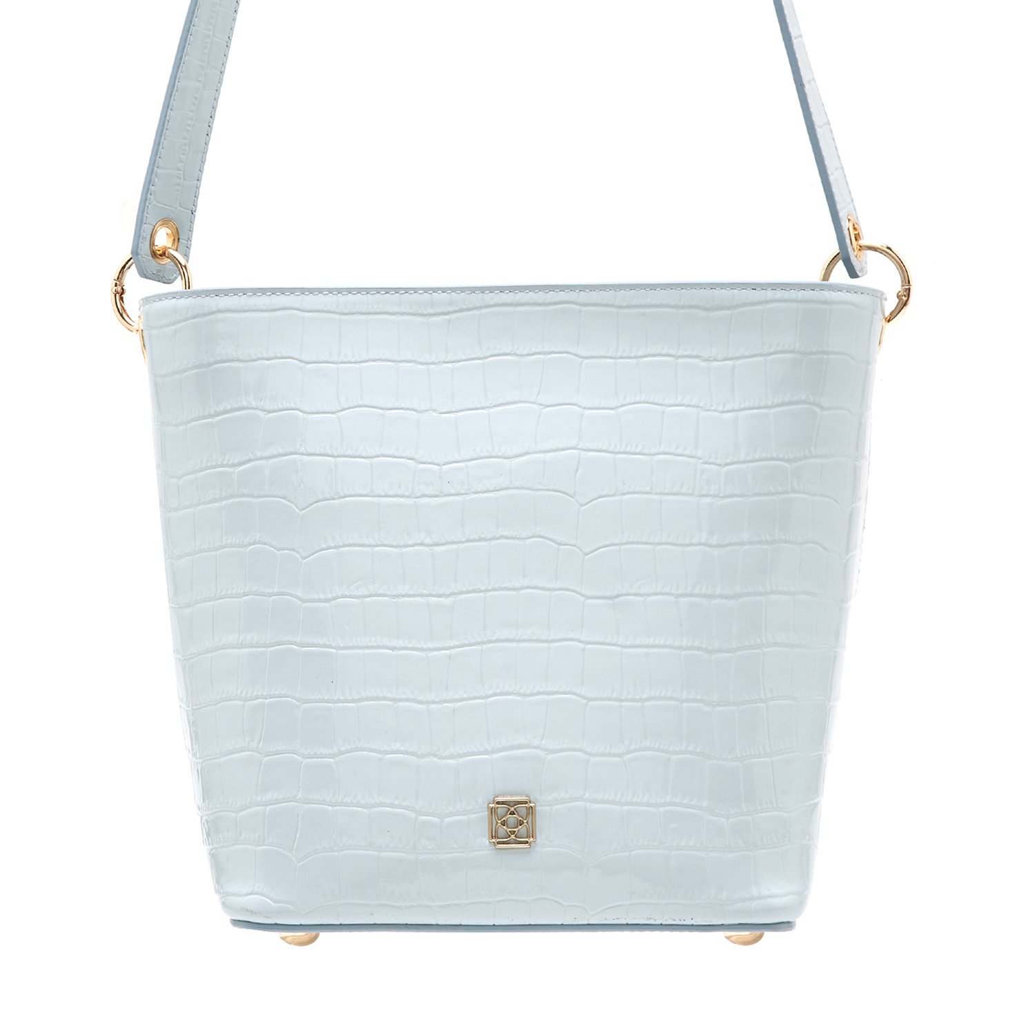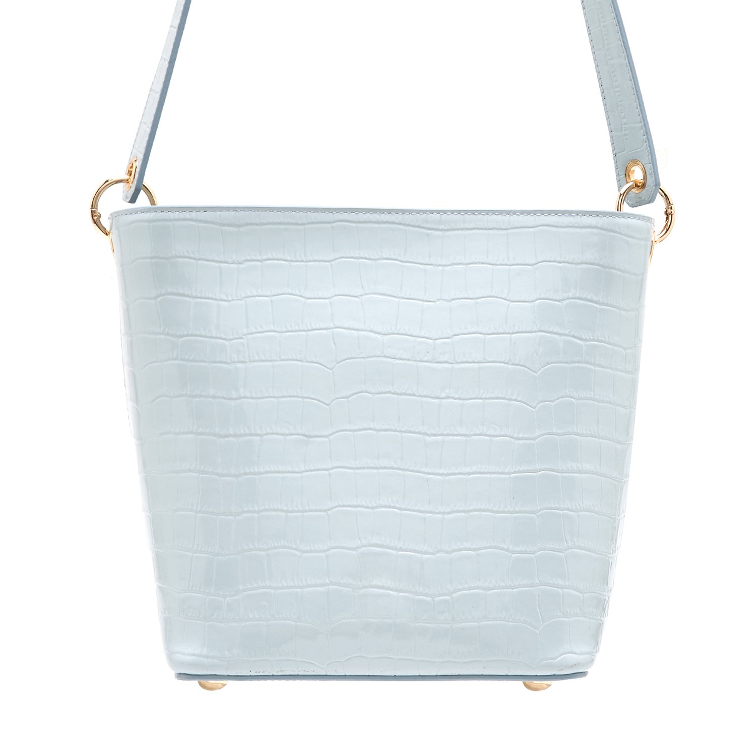 Maximar Mavi Kadın Kroko Baskılı Deri Omuz Çantası