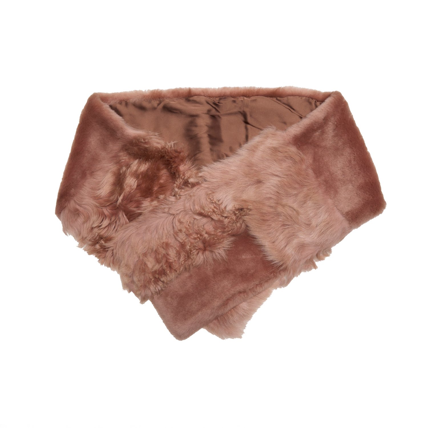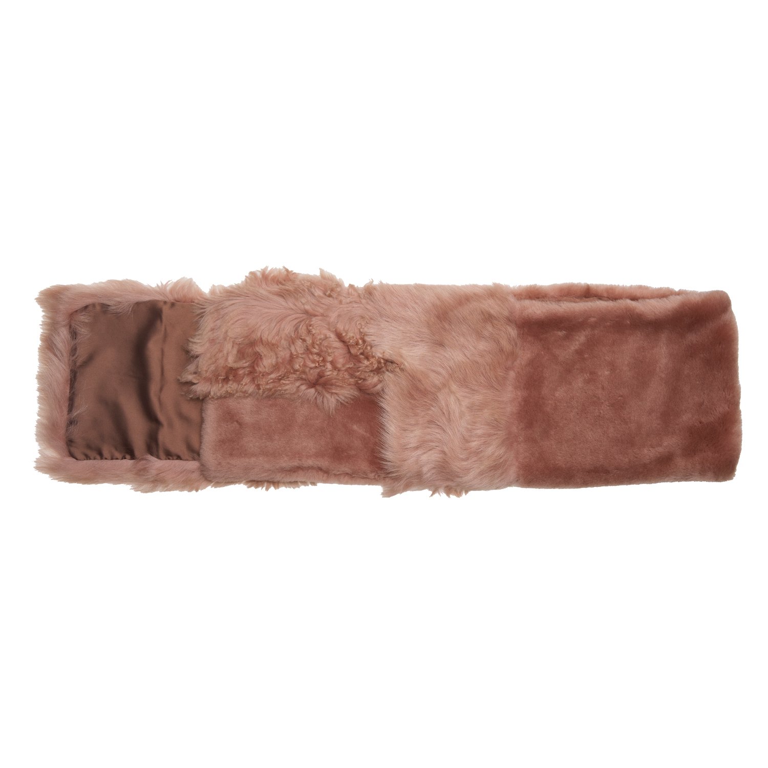 Kadın kürk atkı, ürün üzerine özel olarak patchwork çalışması ile üç farklı tüy ile hareketlilik katılmıştır.