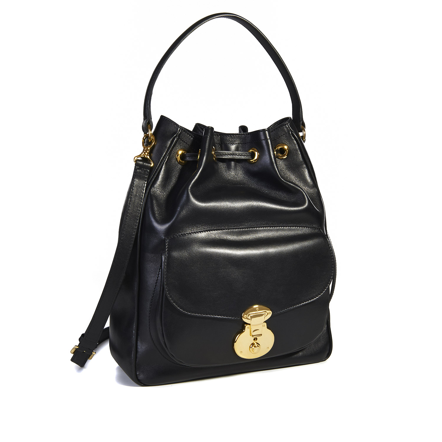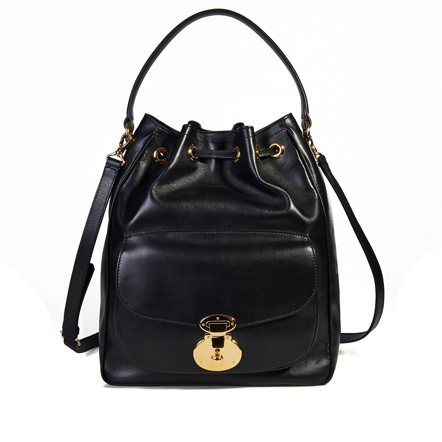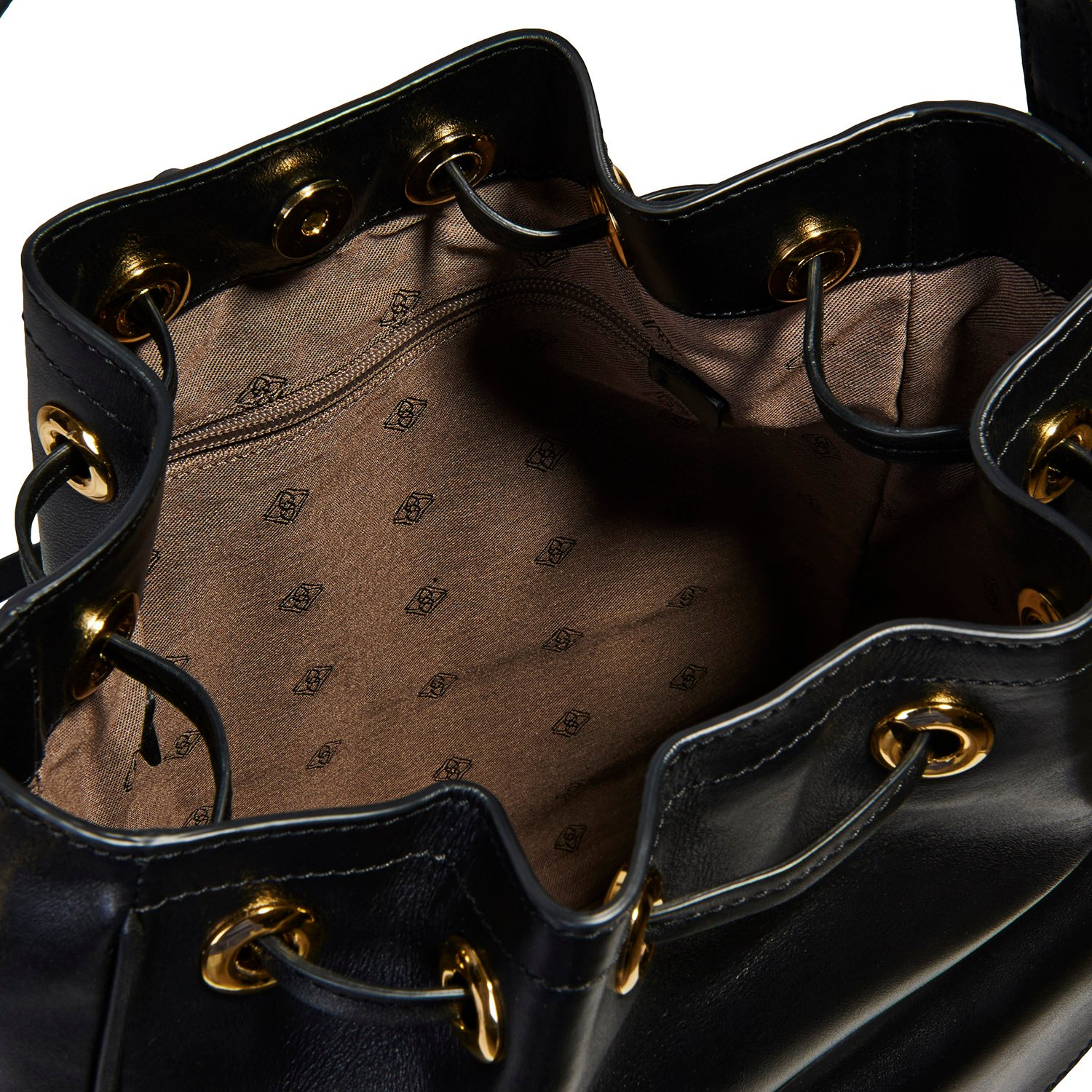Tek saplı omuz çantası ağzı deri biye ile büzdürülerek kapanmaktadır Ön gövdesinde metal kilit ile kapatılan bir cep bulunmaktadır Omuz askısı opsiyonel olarak kullanılmaktadır Desa imzalı astarı içinde fermuarlı cebi ve telefon bölmesi bulunmaktadır