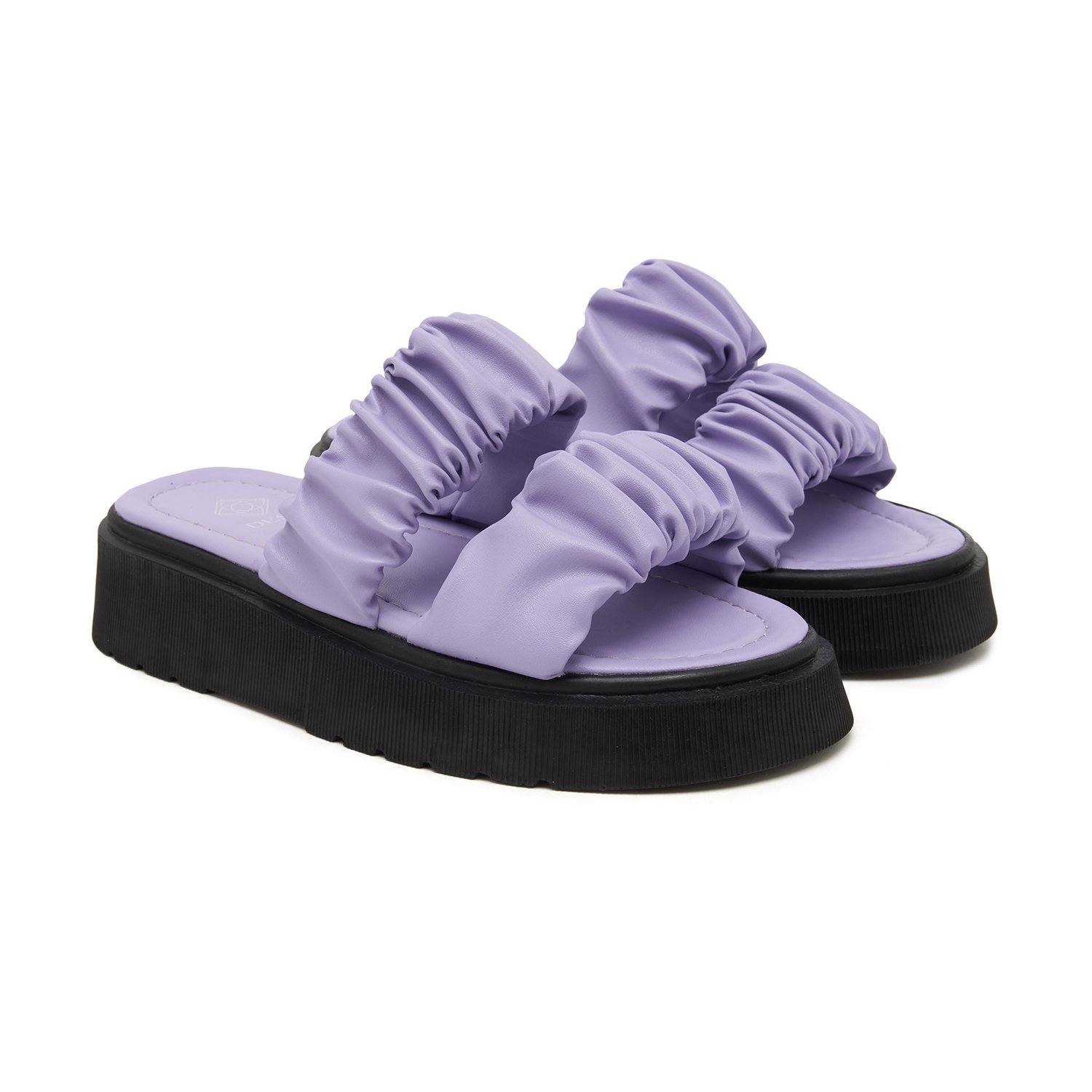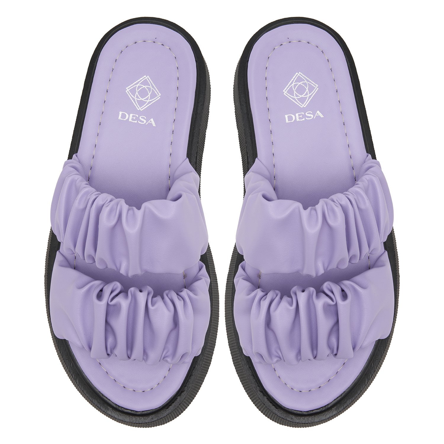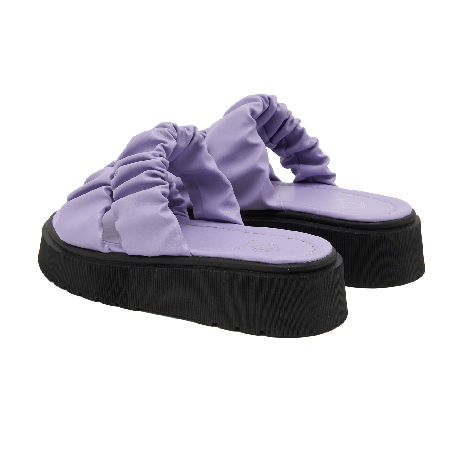 Drapeli bantlar ile detaylandırılmış, esnek ve hafif poliüretan tabanlı kadın sandalet.