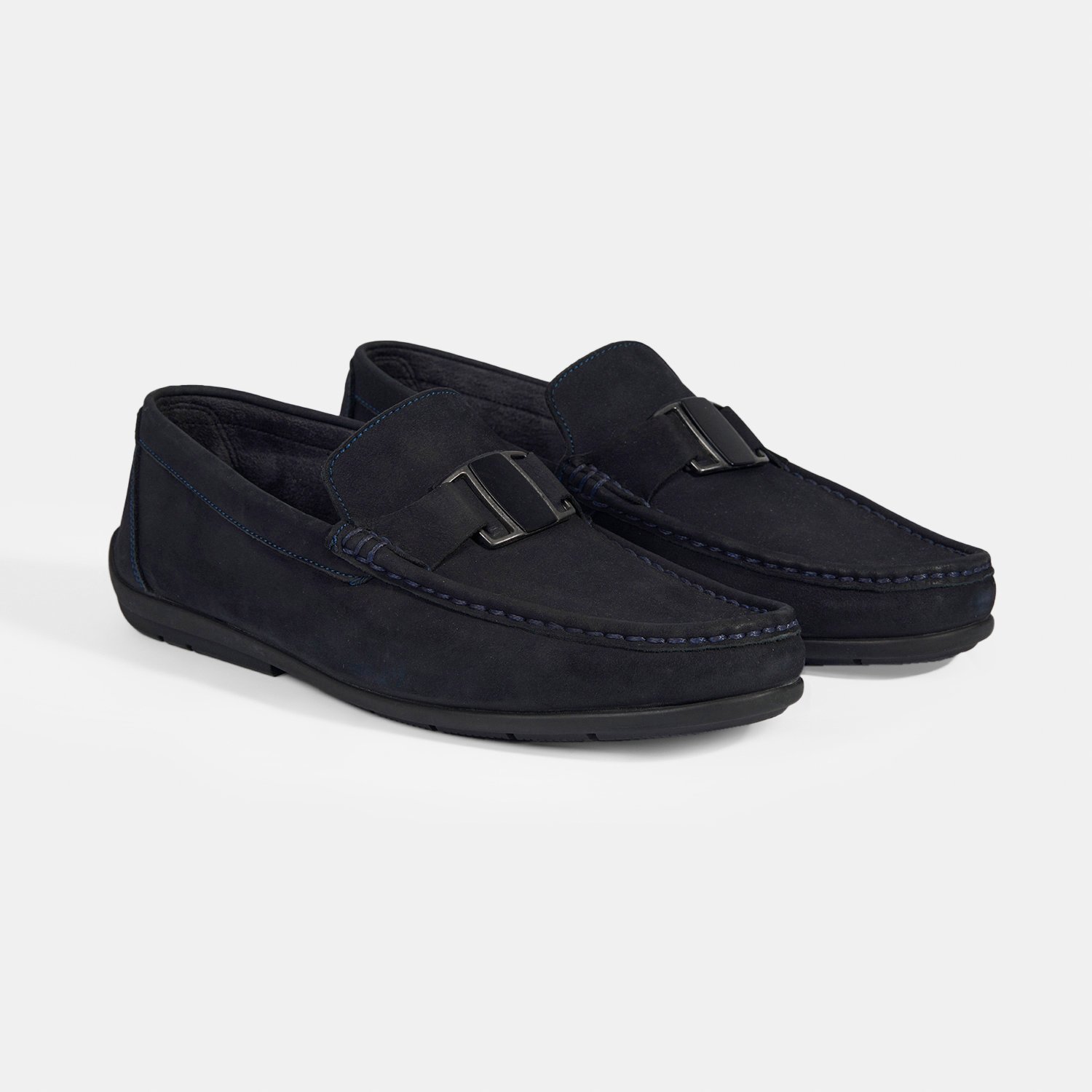 %100 deri, tekstil astar, %100 deri mostra ve kauçuk tabanlı tokalı loafer erkek ayakkabı.