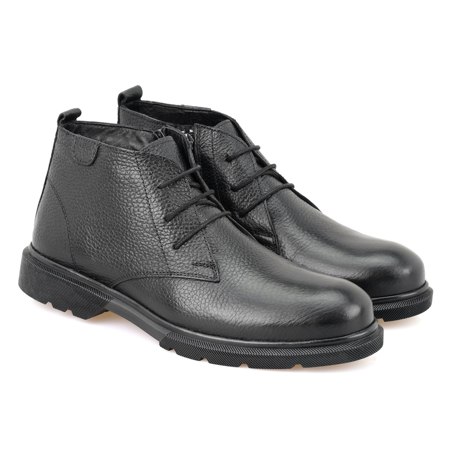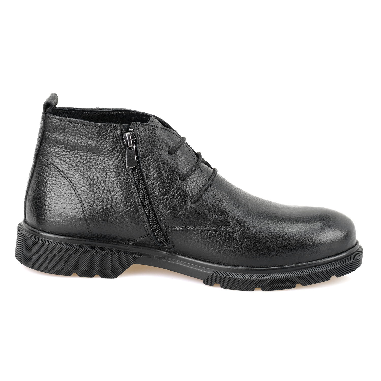 %100 deri, deri iç tabanlı, tekstil astarlı,içten fermuarlı, thermo tabanlı, bağcıklı erkek bot.