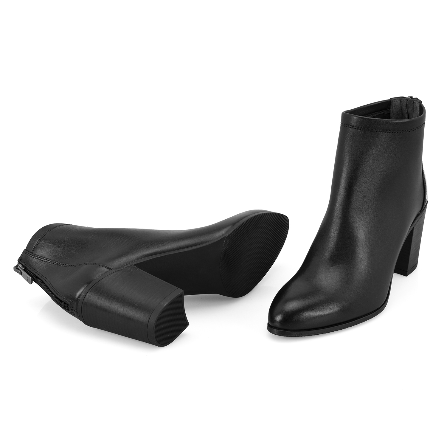 %100 deri, deri iç tabanlı, deri astarlı, arkadan fermuarlı, kauçuk tabanlı, kadın topuklu bot.