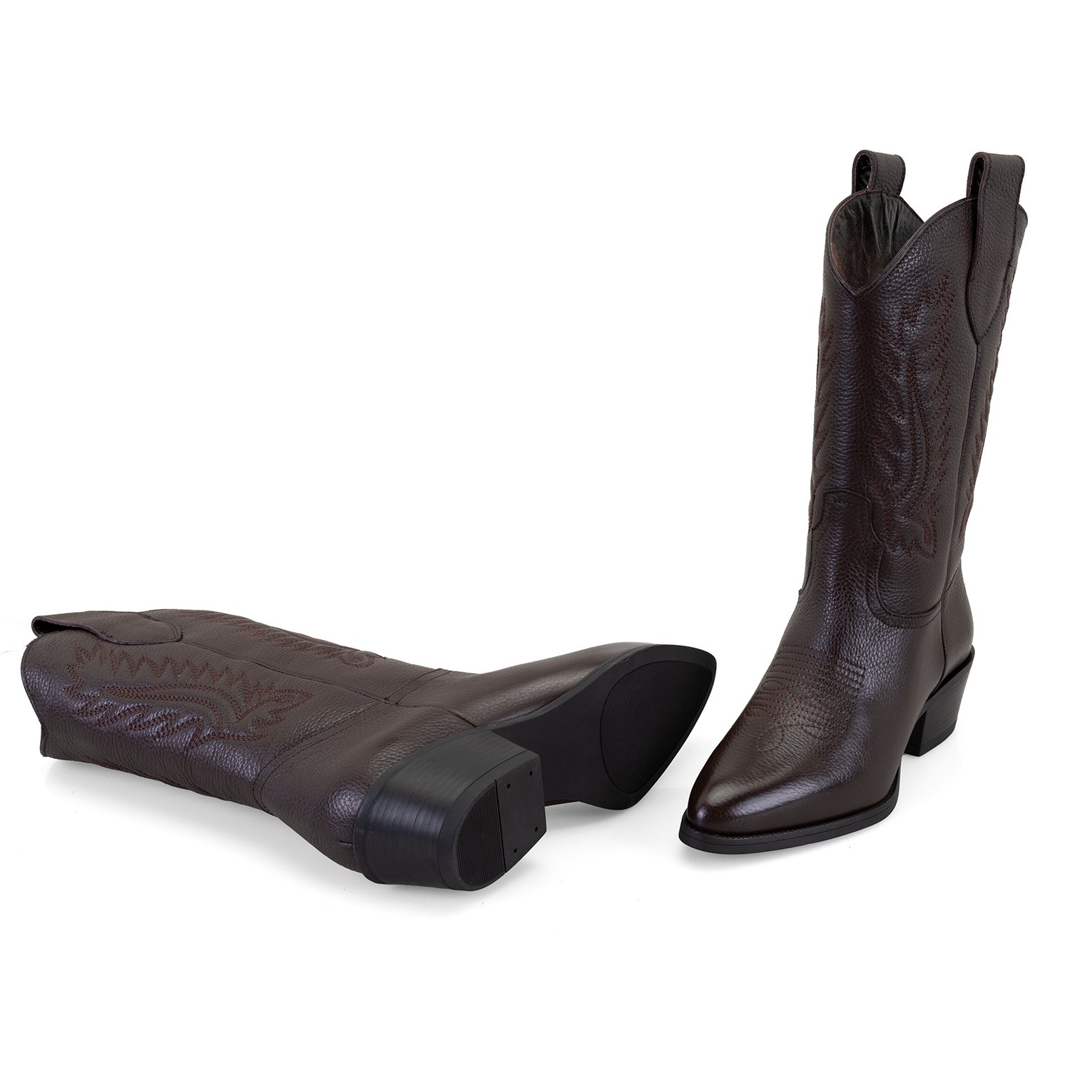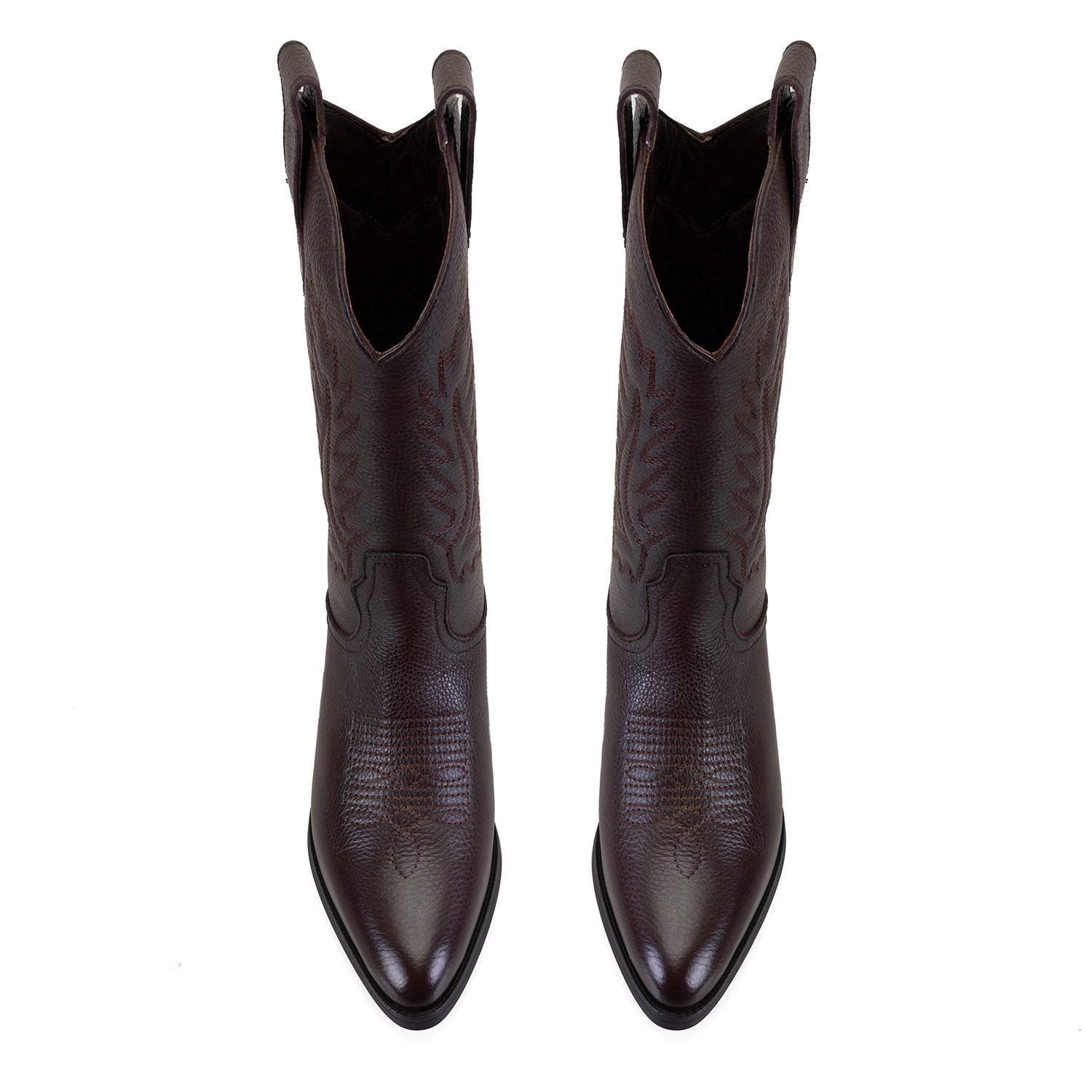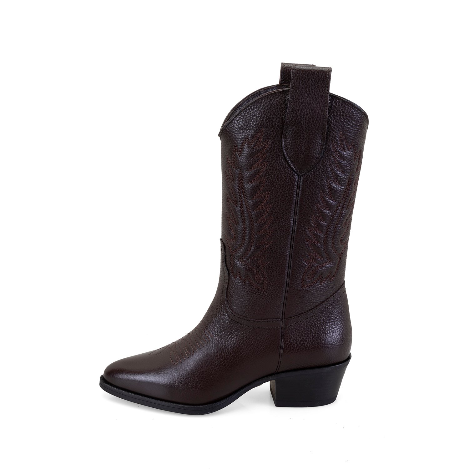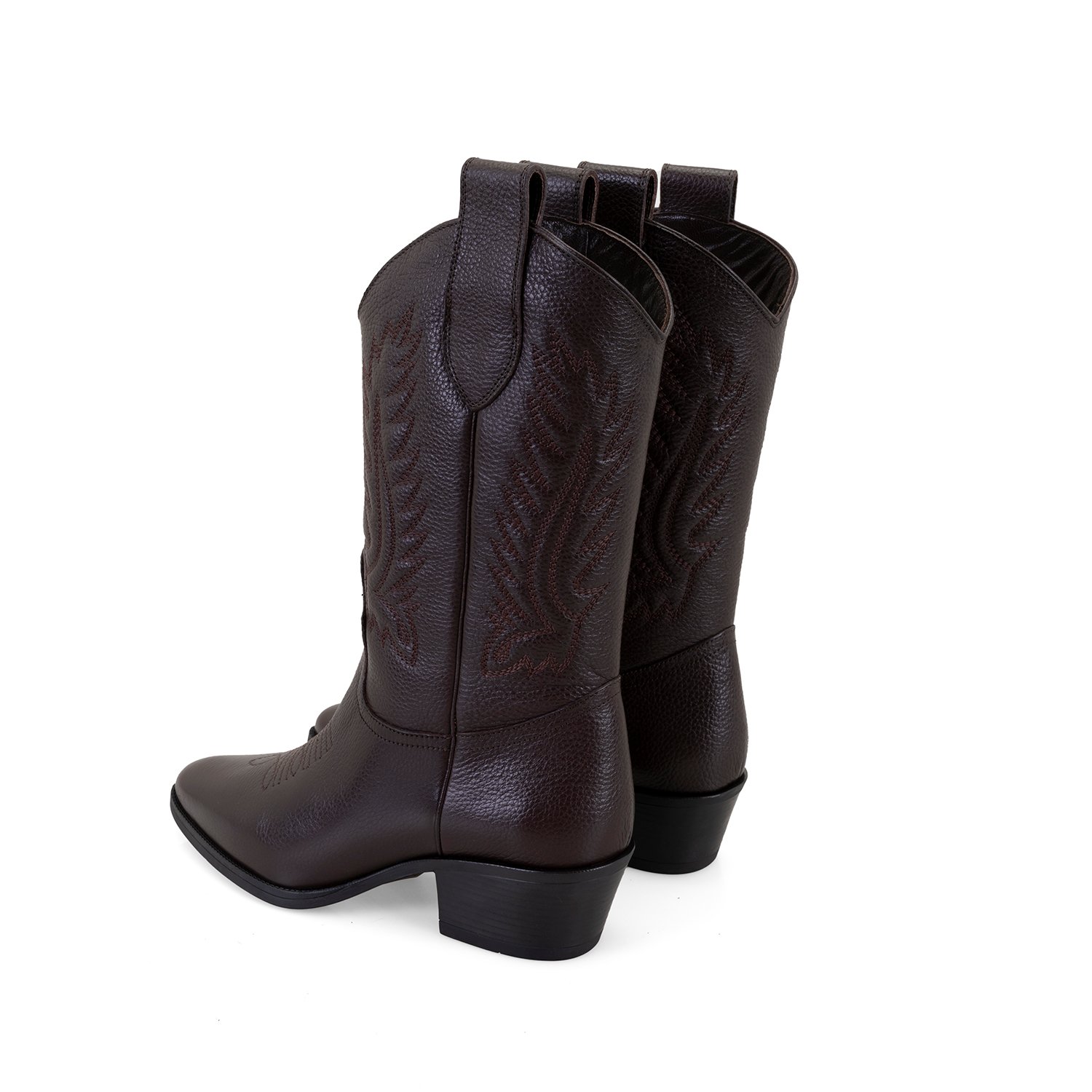 Noa Kahve Kadın Desenli Deri Kovboy Çizmesi