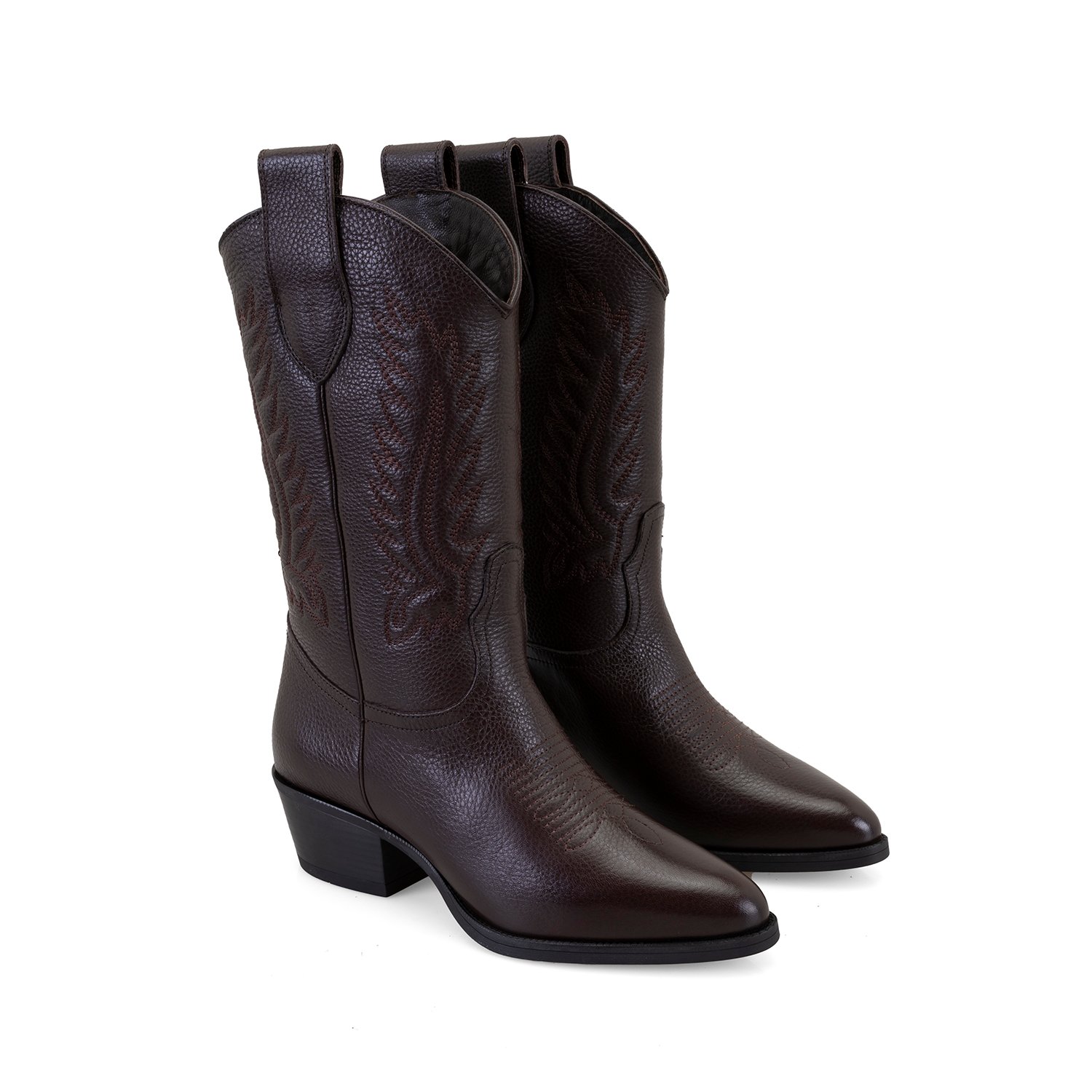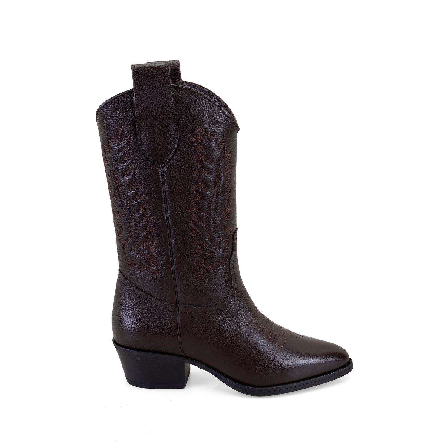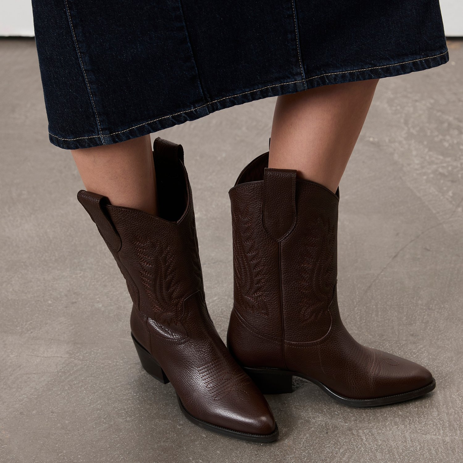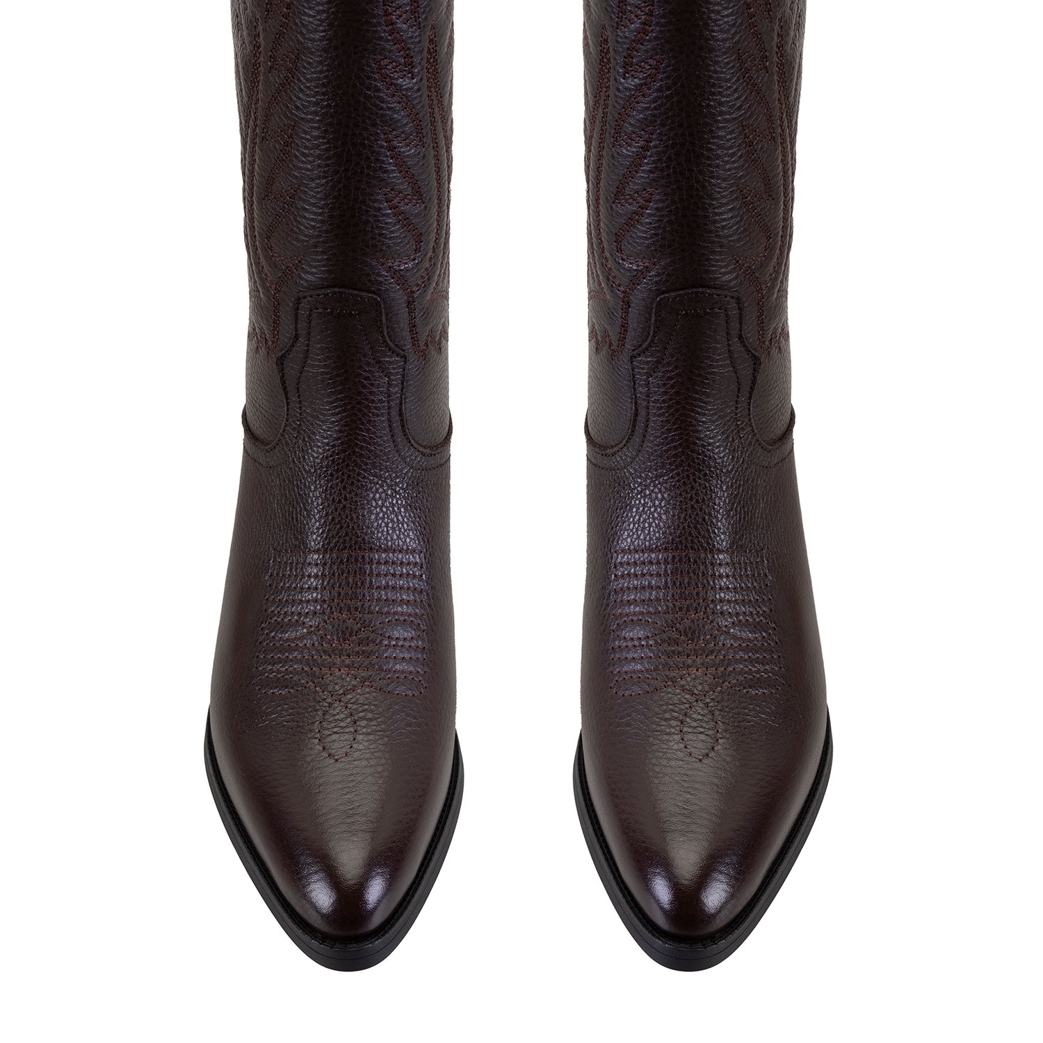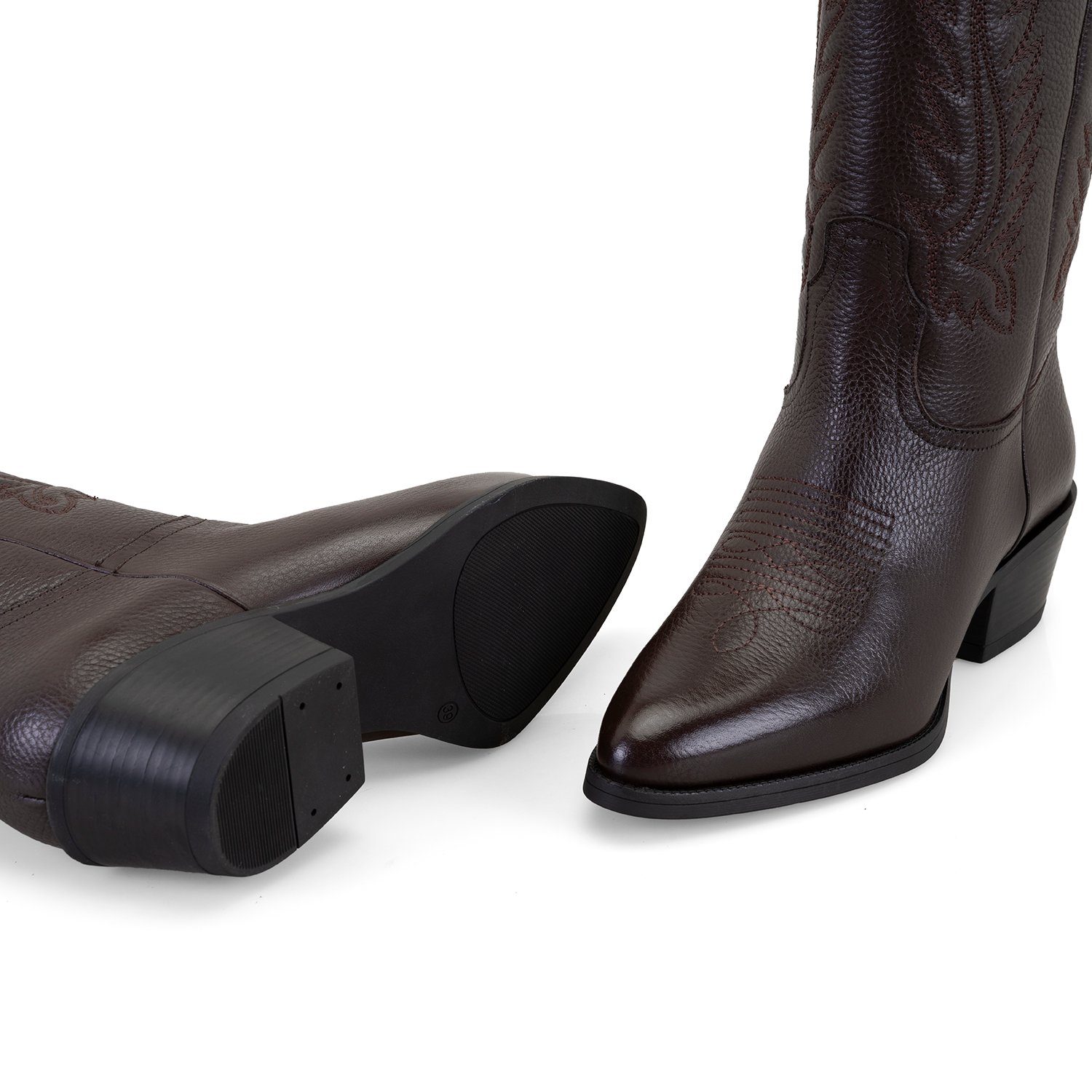 Noa Kahve Kadın Desenli Deri Kovboy Çizmesi