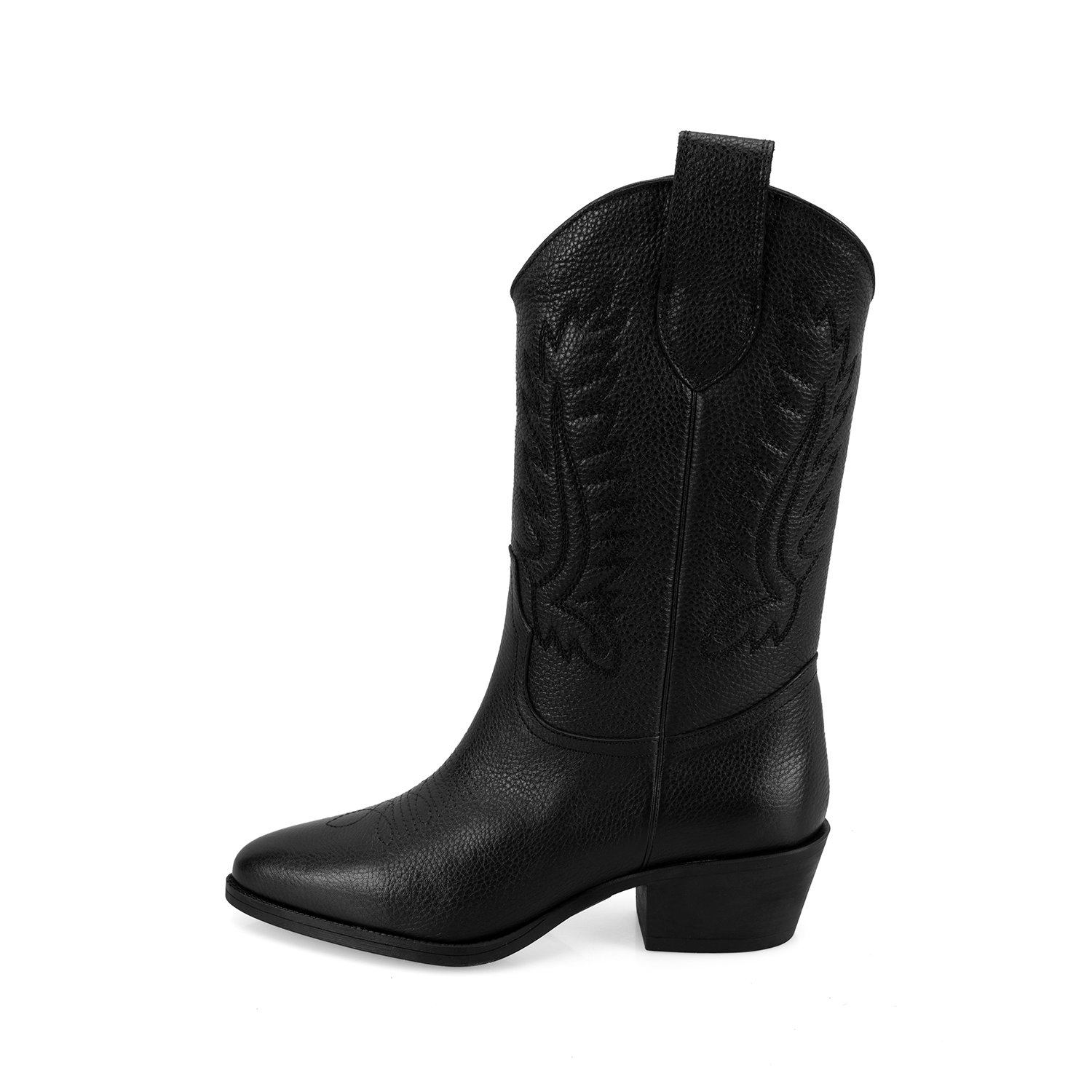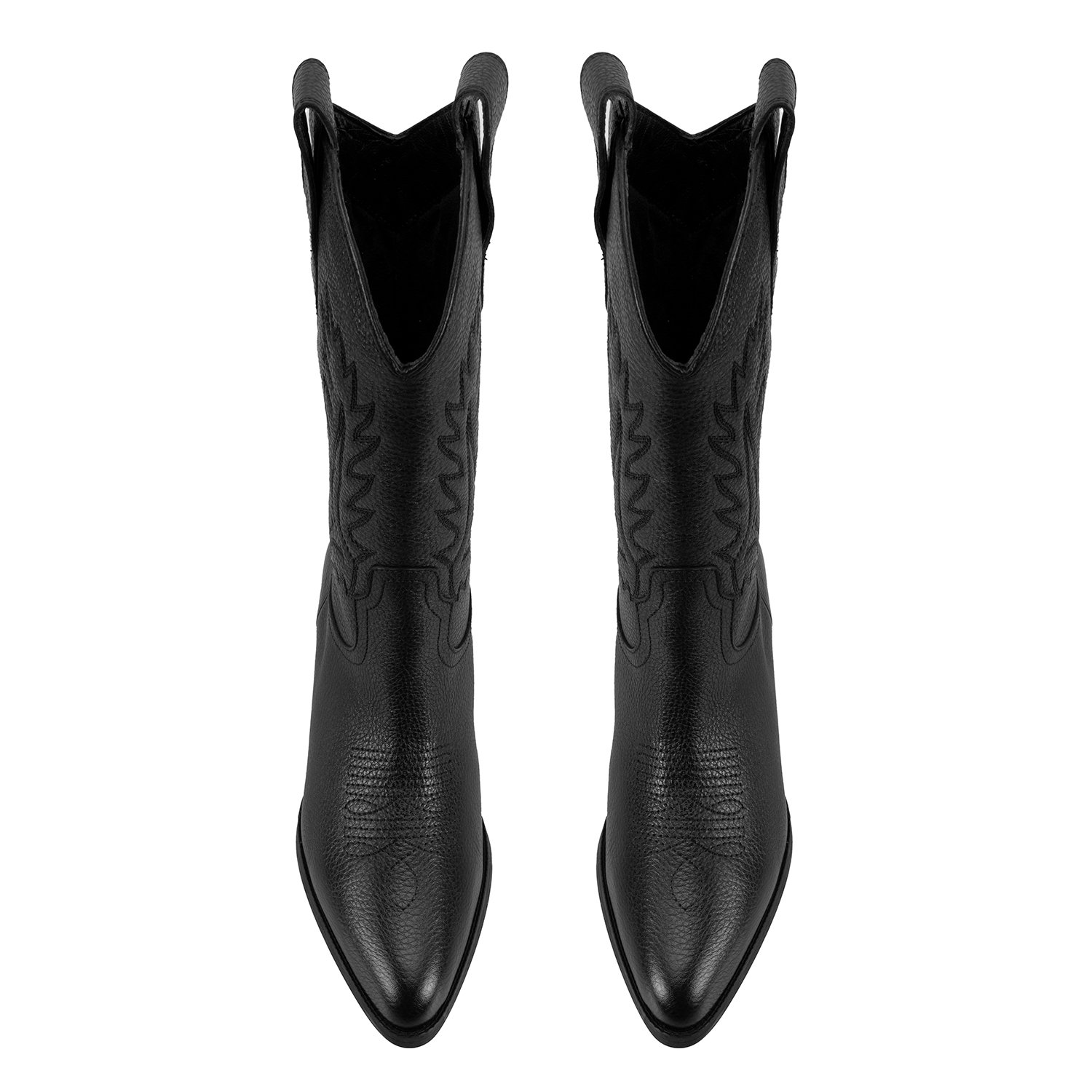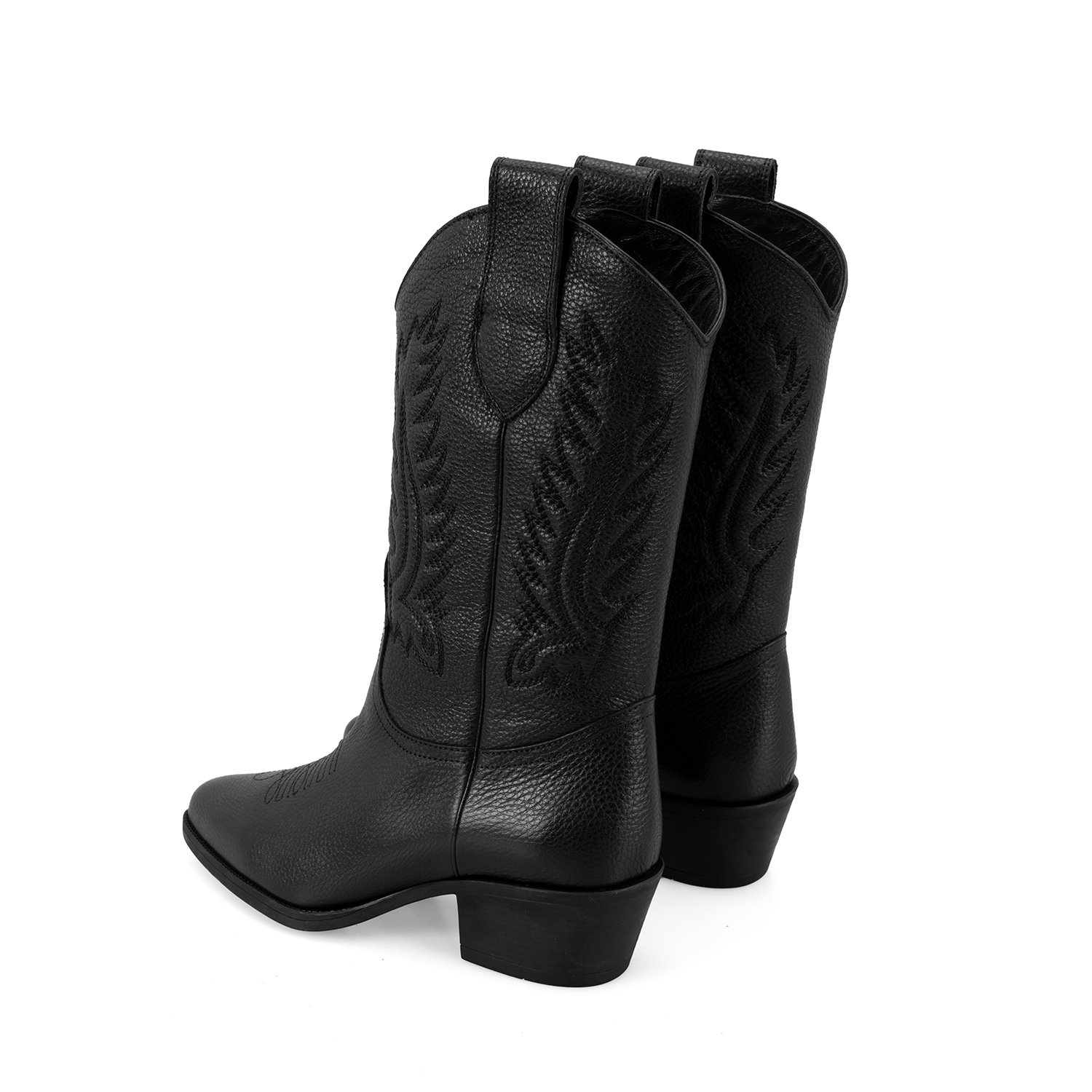 Noa Siyah Kadın Desenli Deri Kovboy Çizmesi