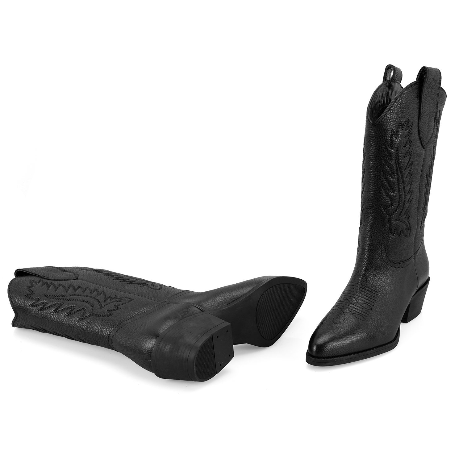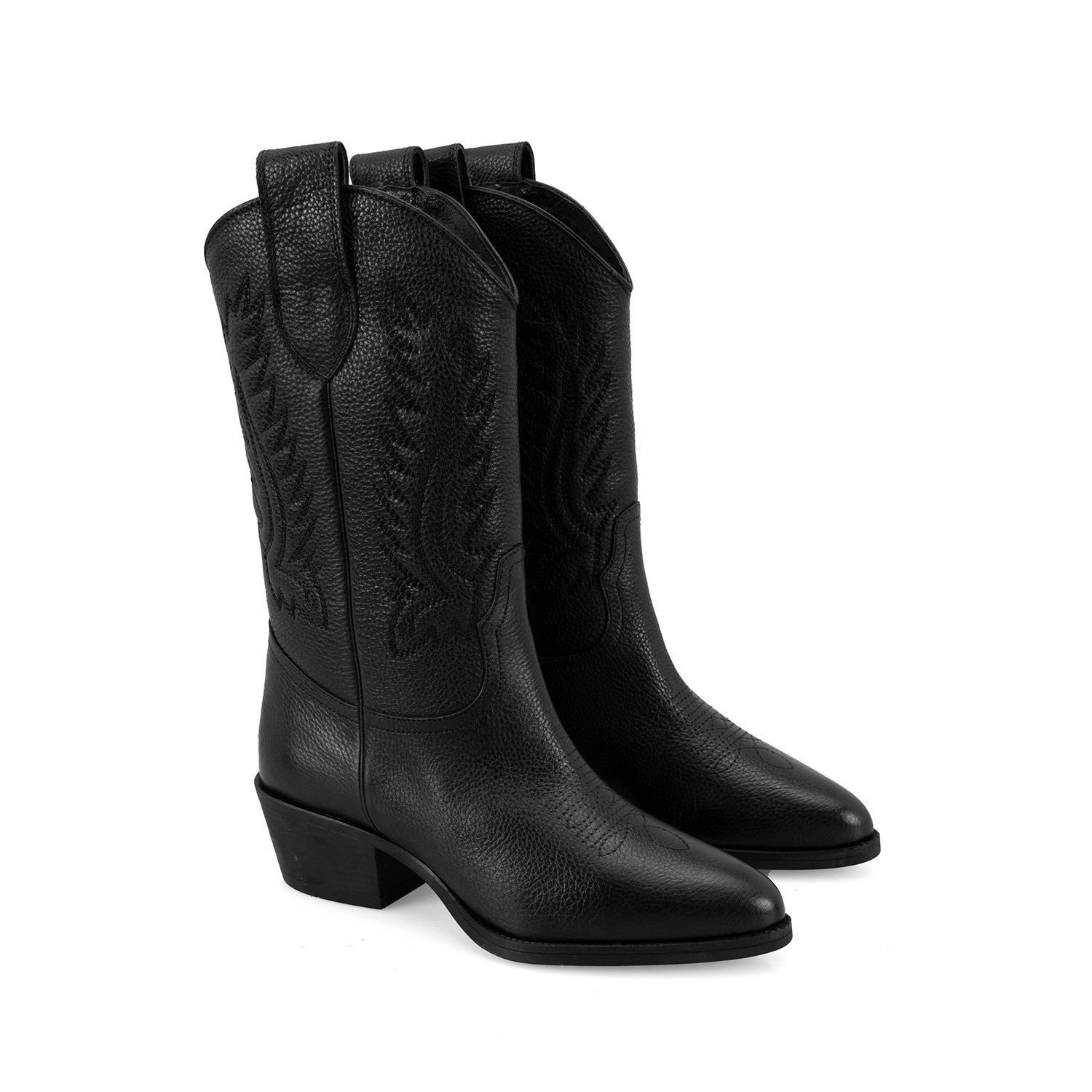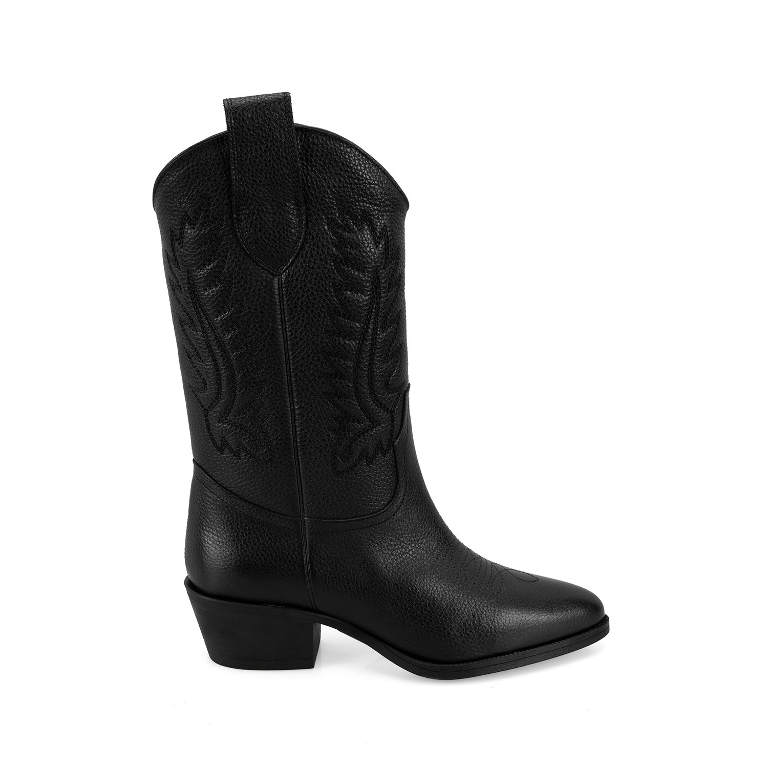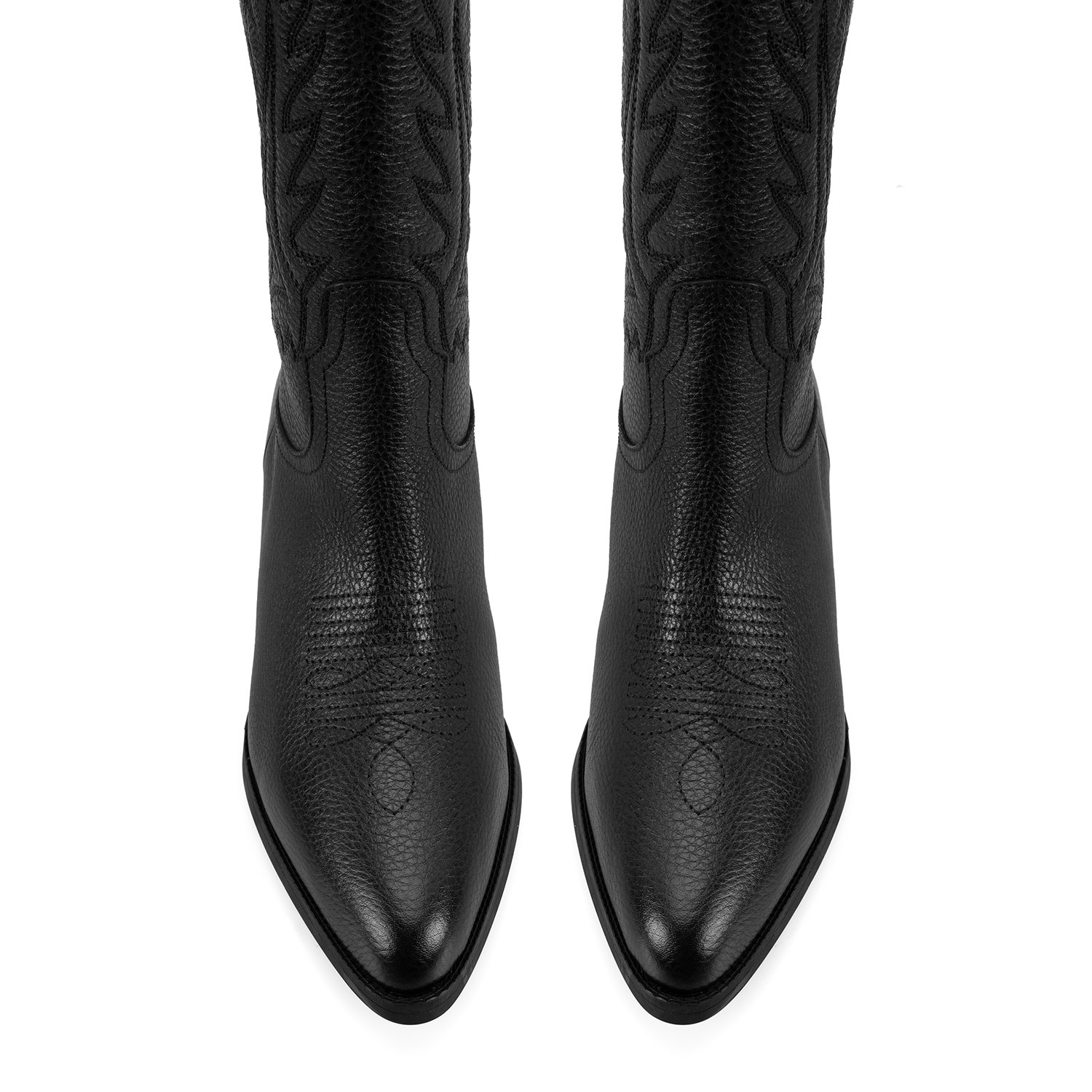 Noa Siyah Kadın Desenli Deri Kovboy Çizmesi