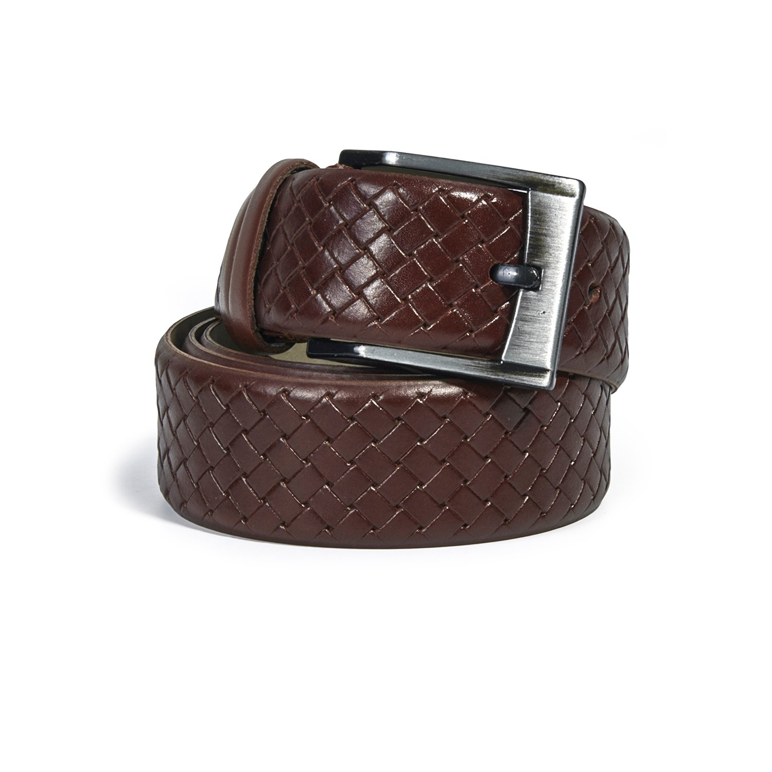 Kahve Örgü Desenli Erkek Deri Kemer