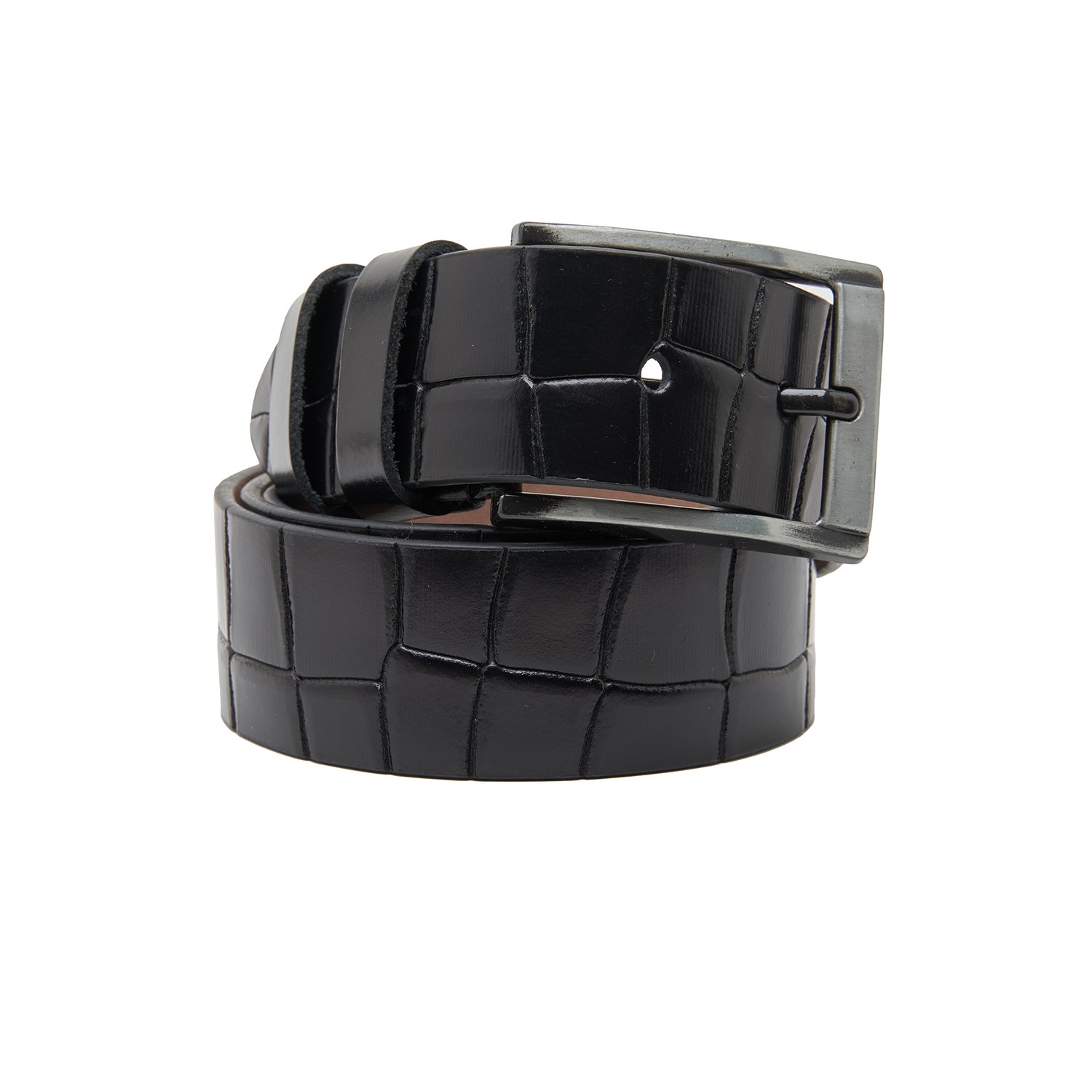 Erkek Kroko Baskılı Deri Siyah Kemer
