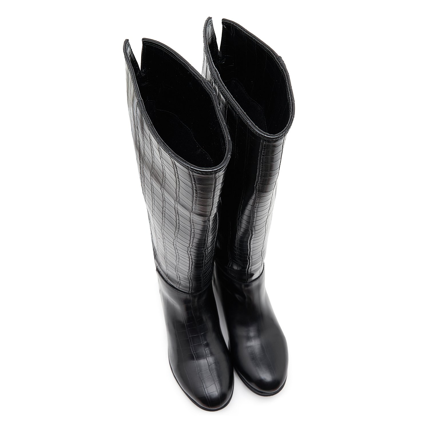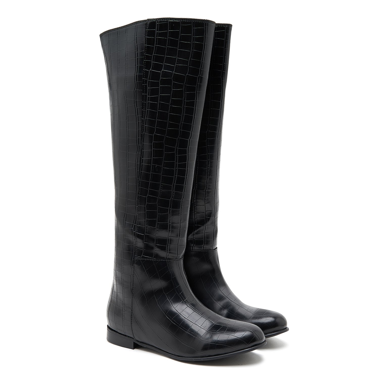 Ole Siyah Kadın Kroko Baskılı Çizme