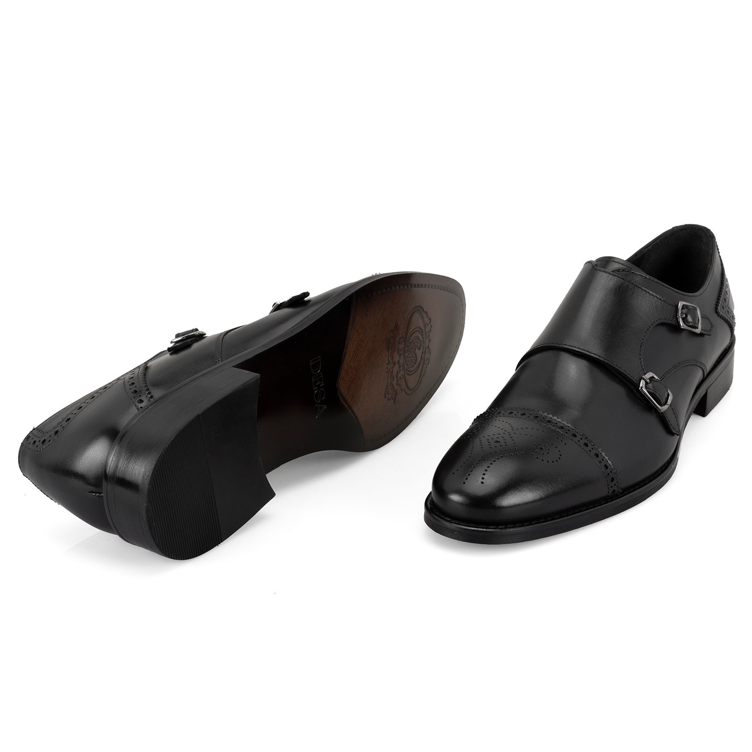 %100 deri, deri iç tabanlı, deri astarlı, neolit tabanlı, çift metal toka detaylı erkek klasik ayakkabı.