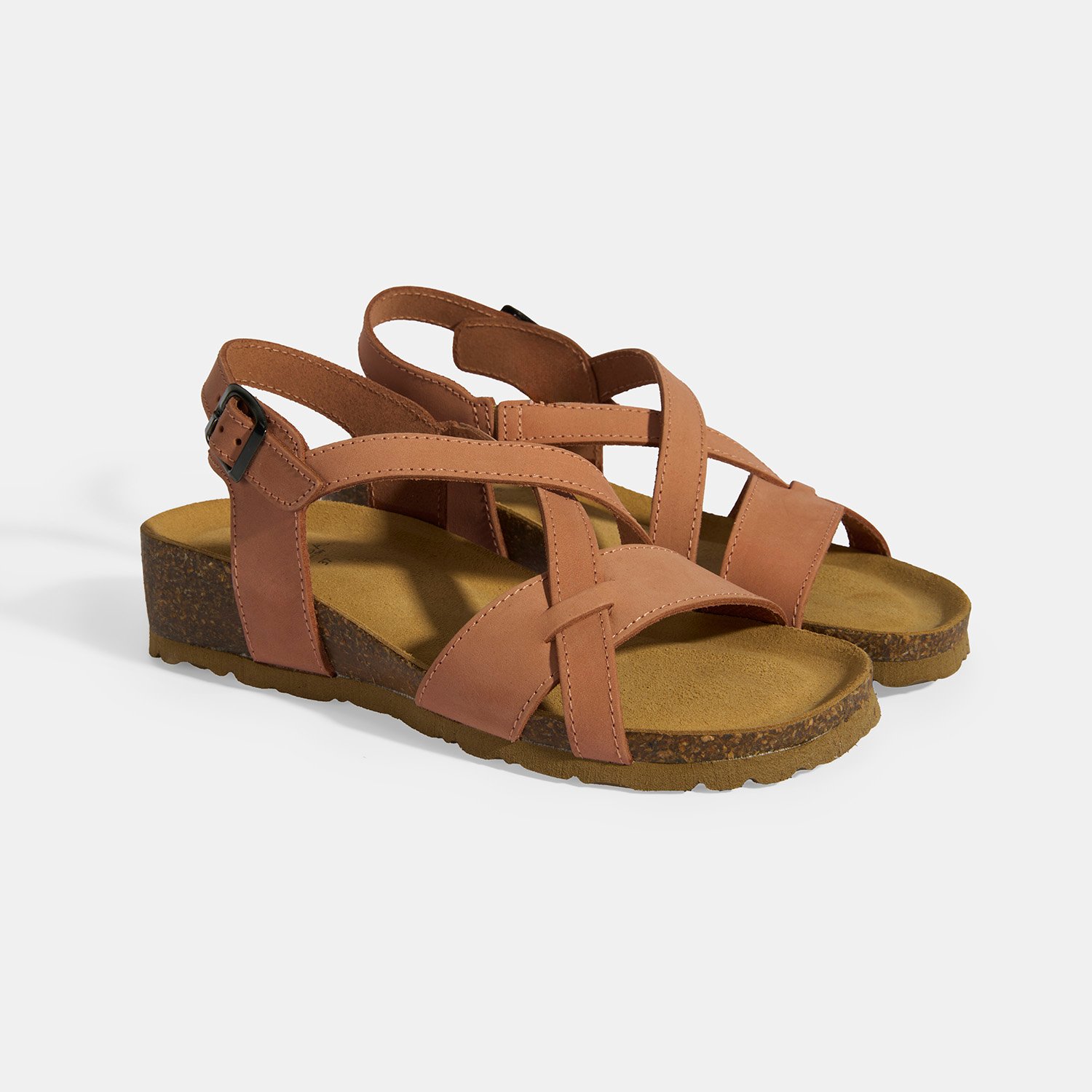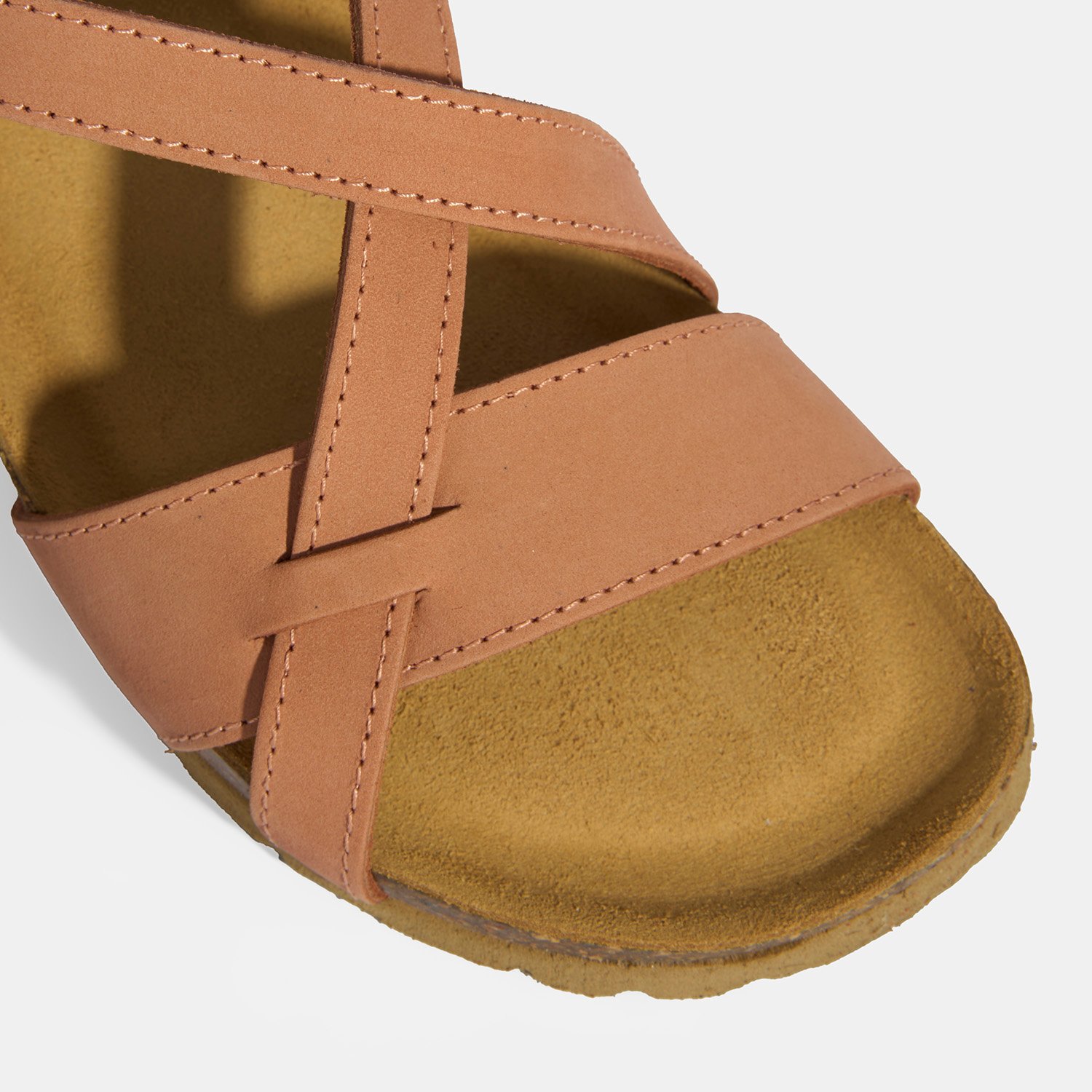 %100 nubuk deri, deri iç tabanlı, deri astarlı, ayaralanabilir metal tokalı, eva tabanlı, kadın sandalet.
