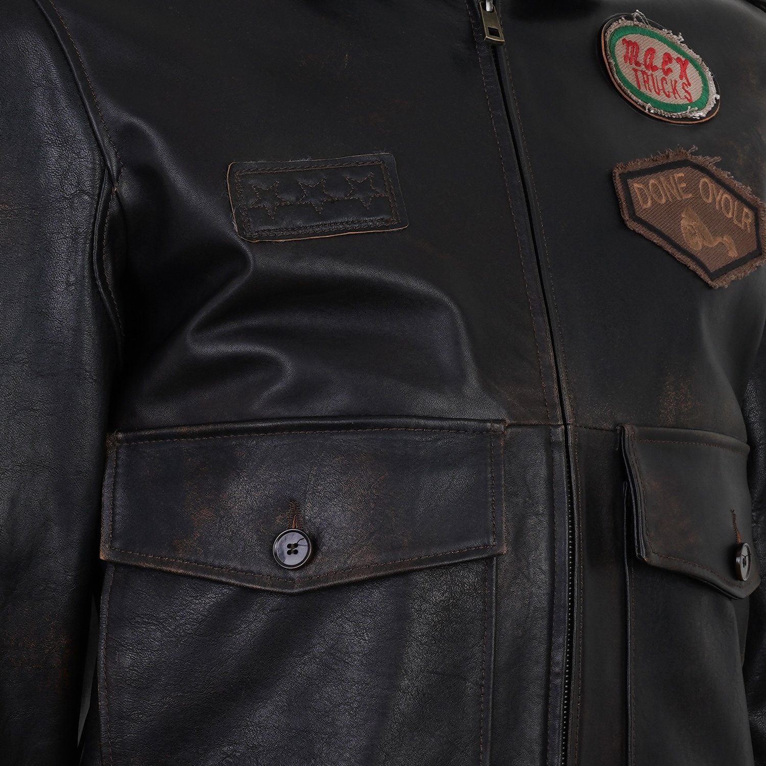 Piero Koyu Kahve Erkek Vintage Deri Biker Ceket