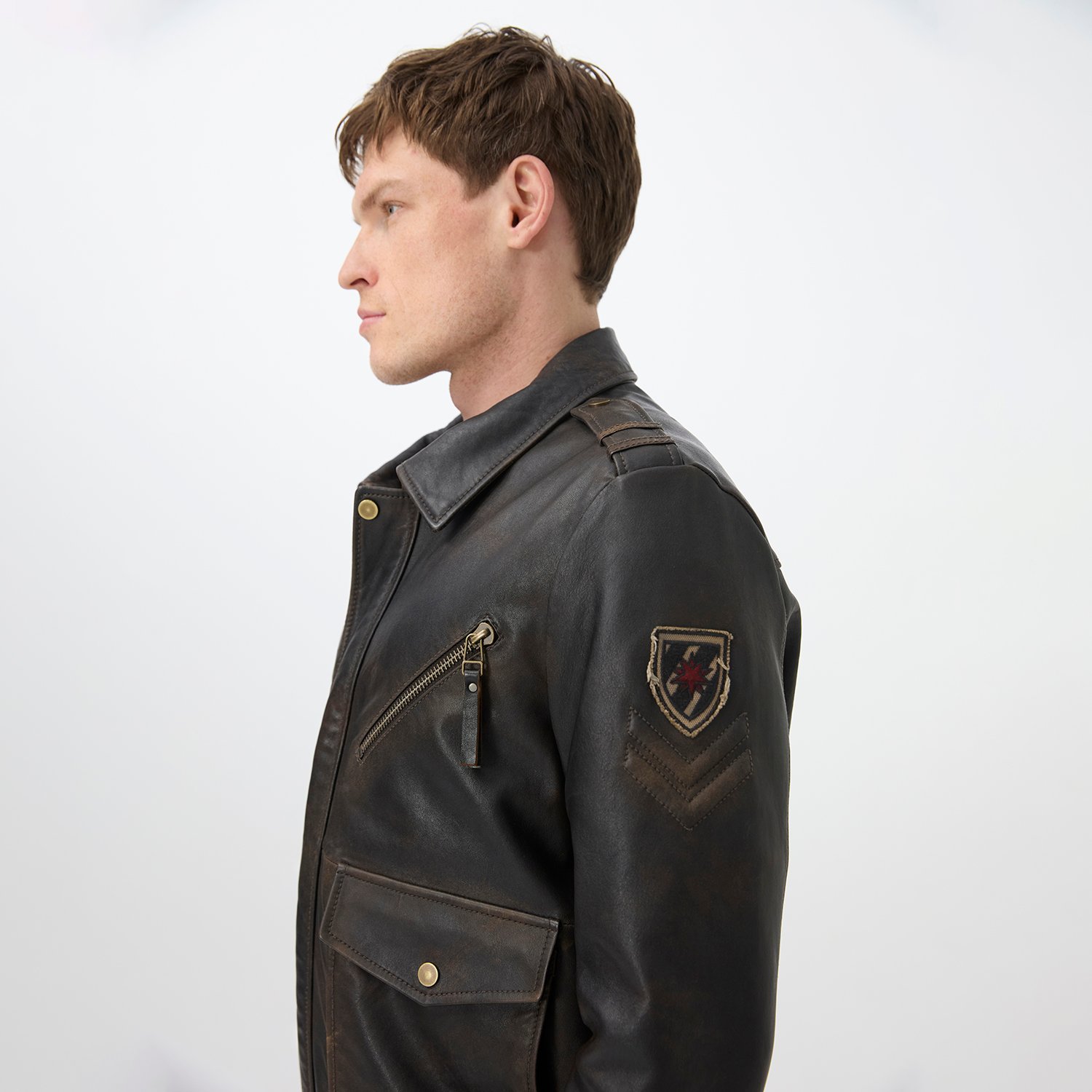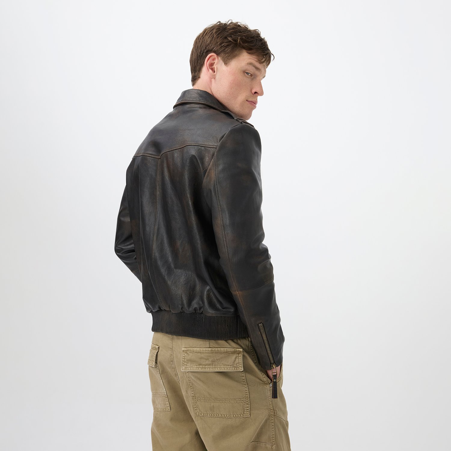 Erkek gömlek yakalı vintage deri ceket.