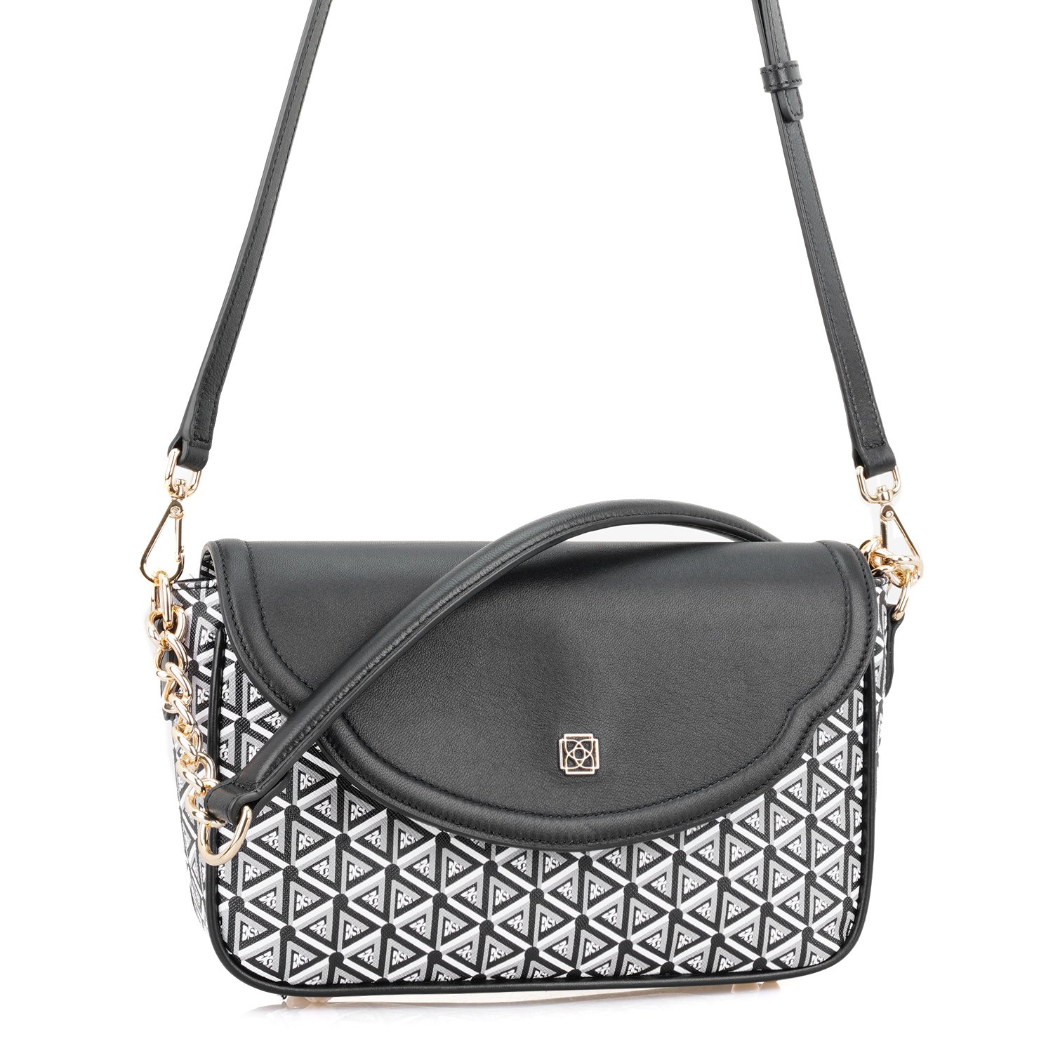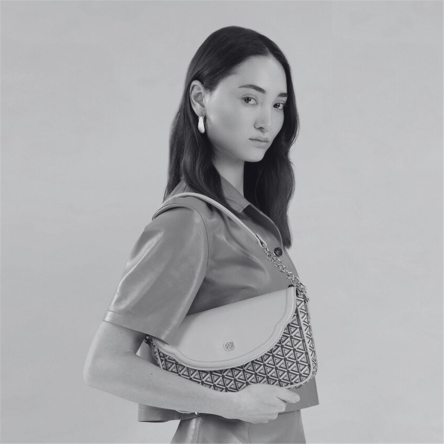 Monogram desa baskılı omuz çantasıdır.