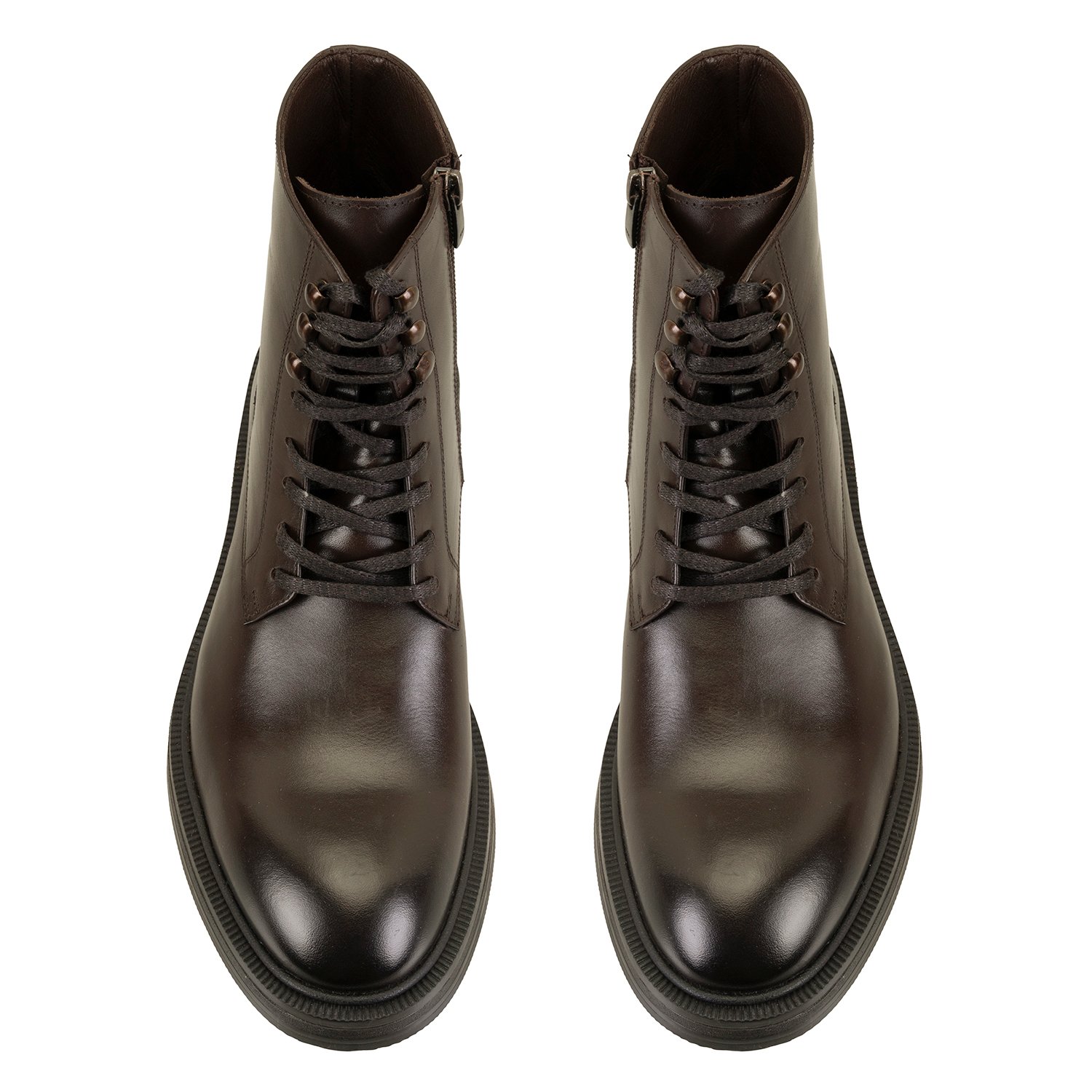 %100 deri, deri iç tabanlı, deri astarlı, eva tabanlı, zımba detaylı, bağcıklı erkek bot.