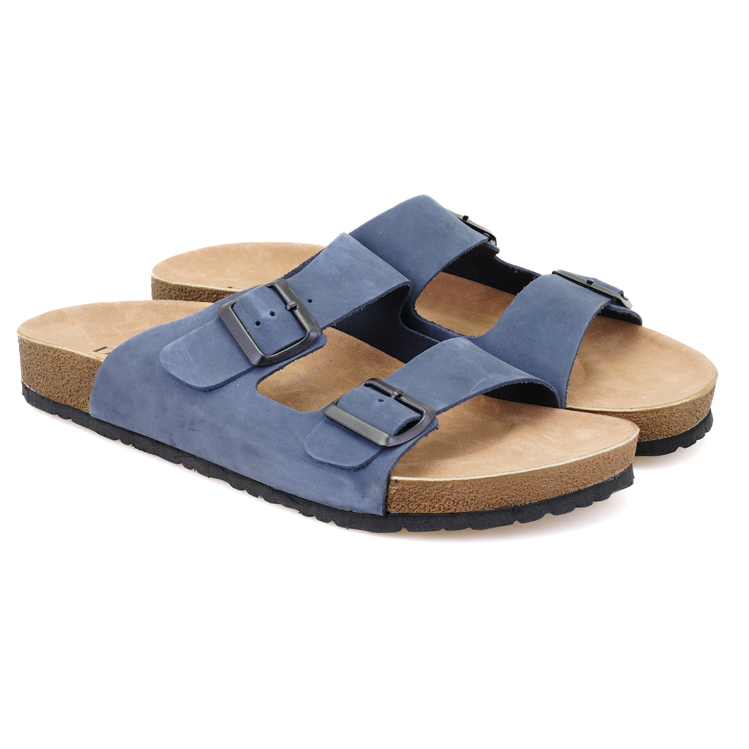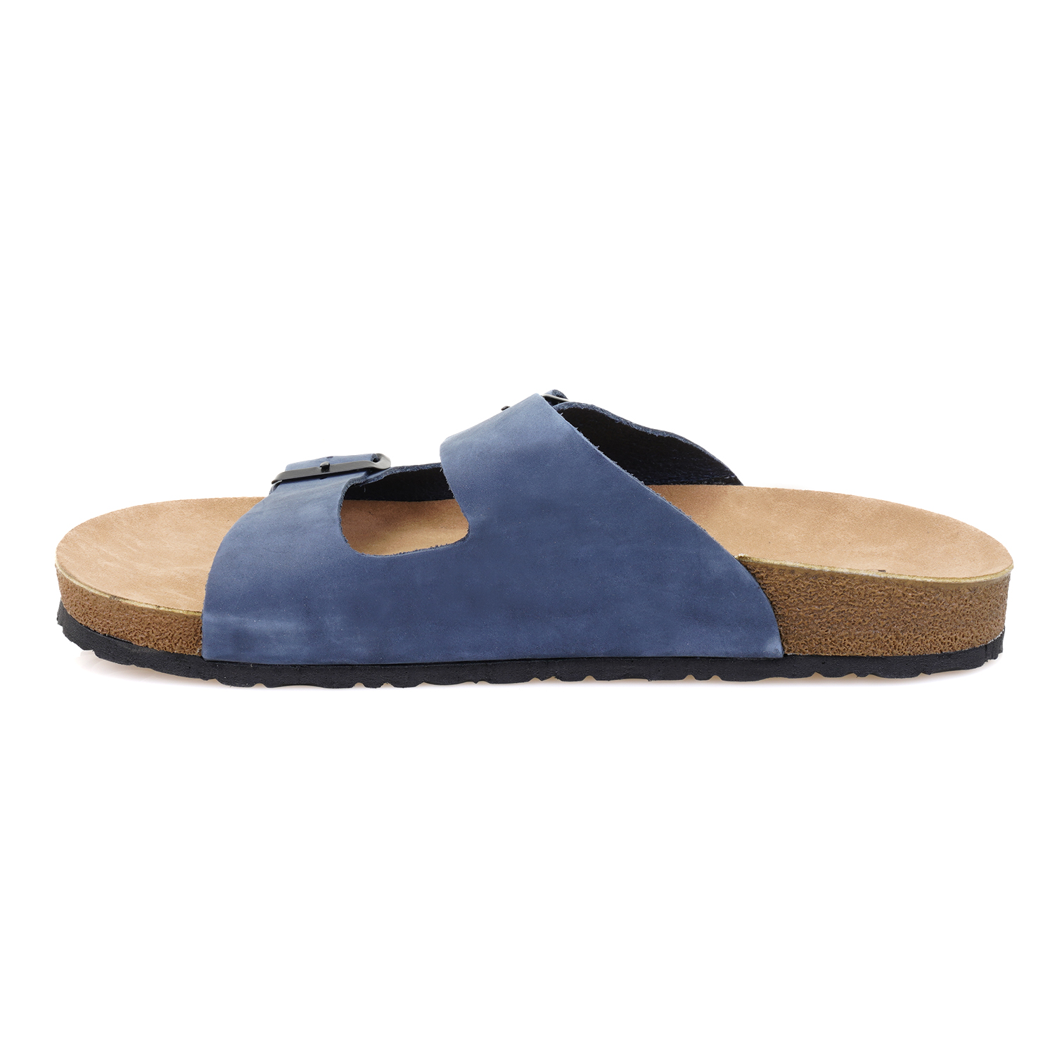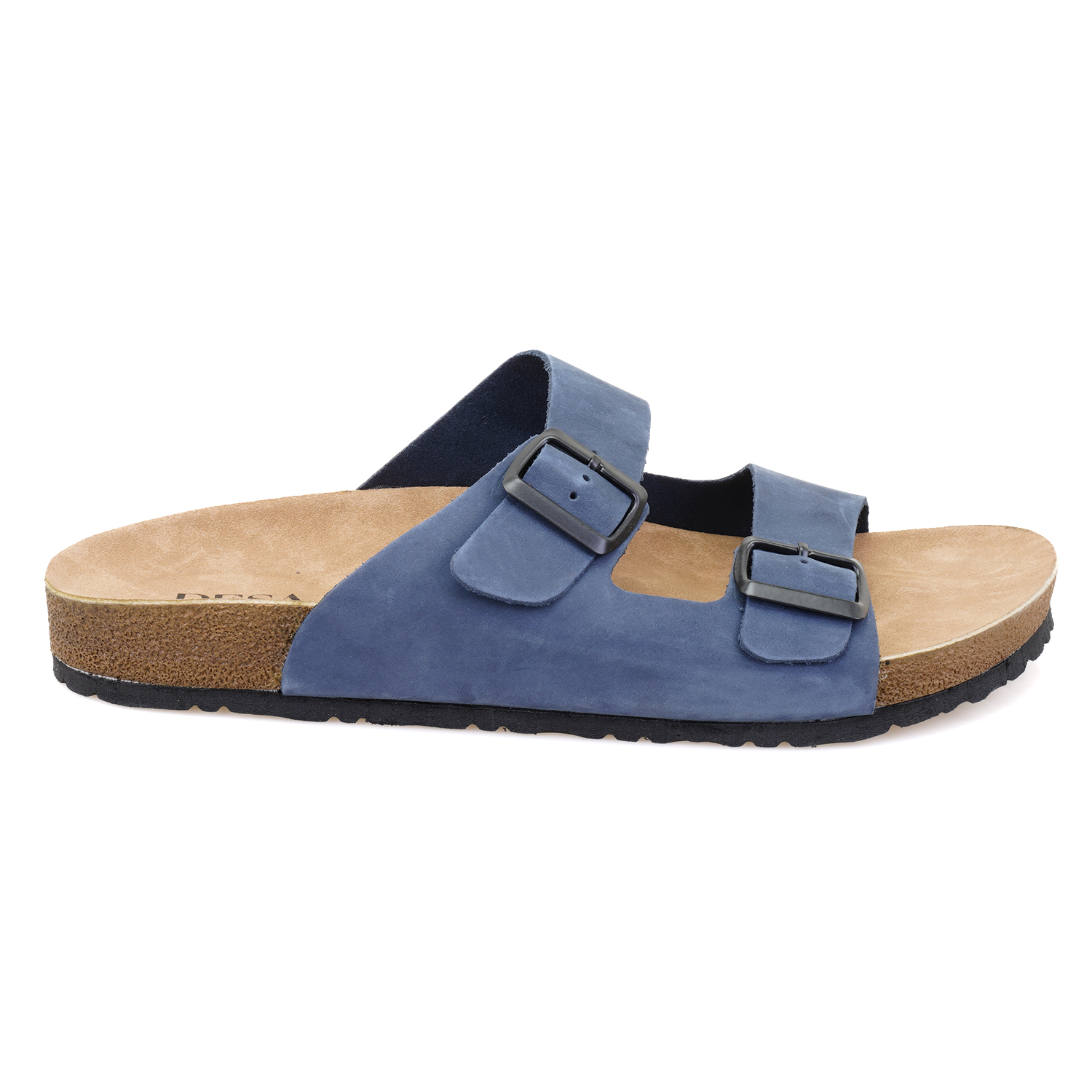 Nubuk deri,ayarlanabilir metal aksesuarlı, esnek hafif pu iç tabanlı,ultra hafif eva tabanlı erkek terlik.