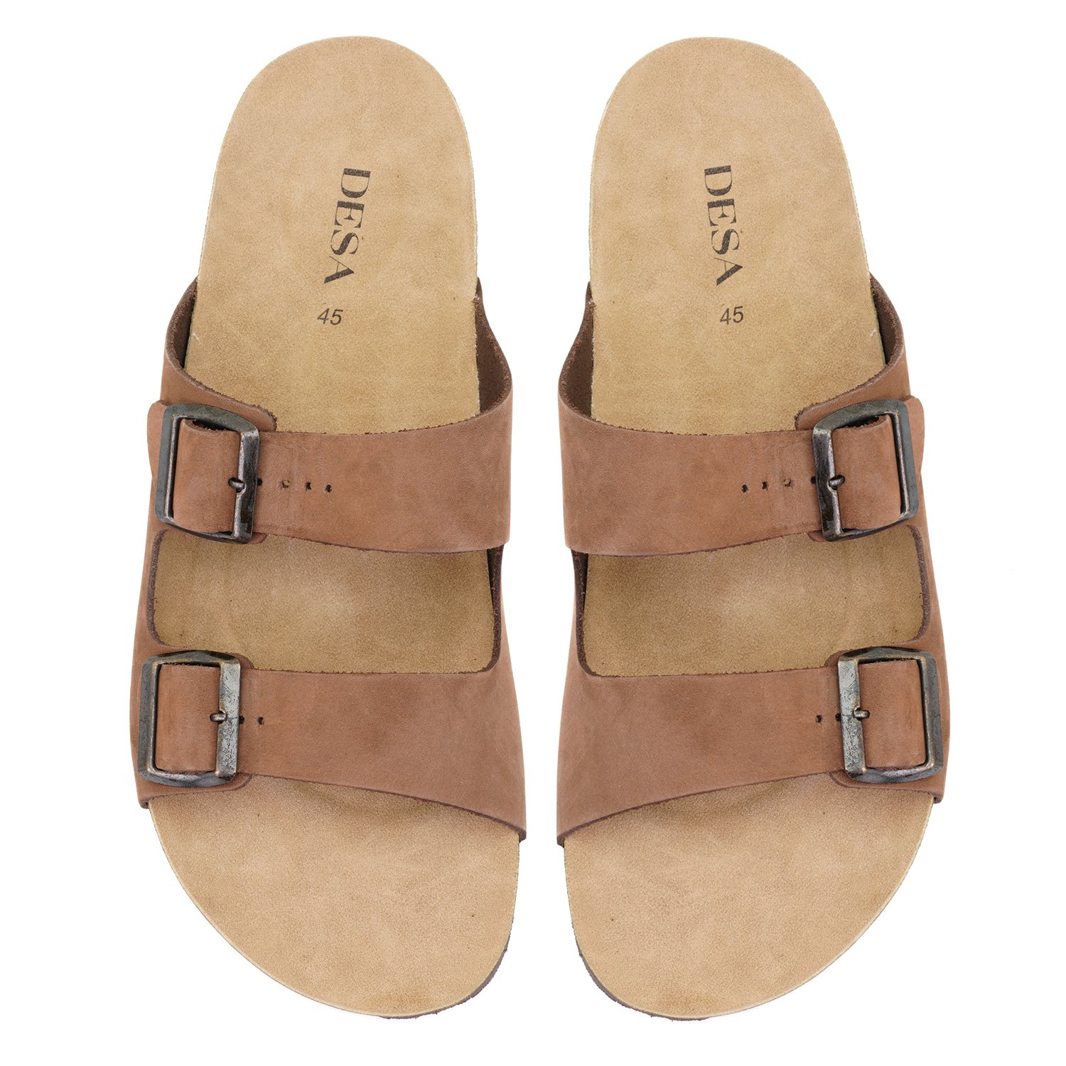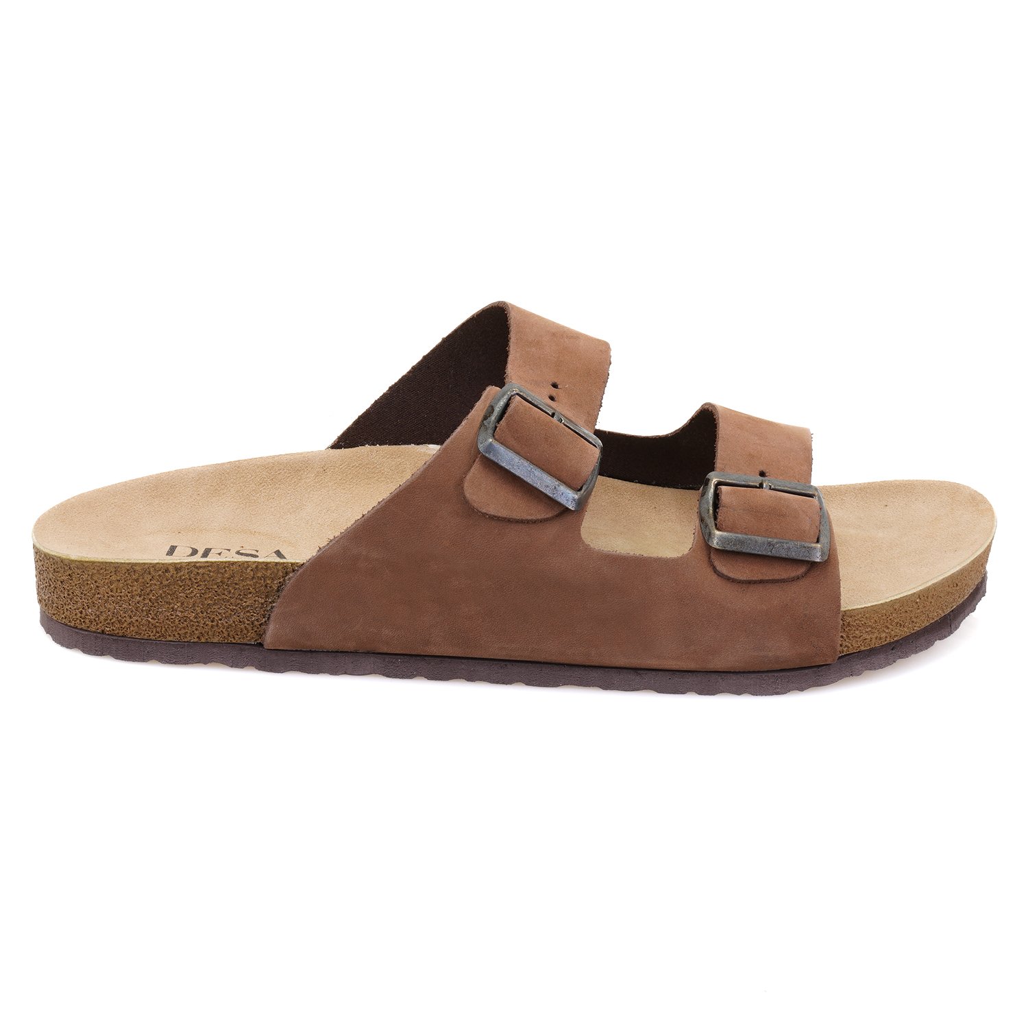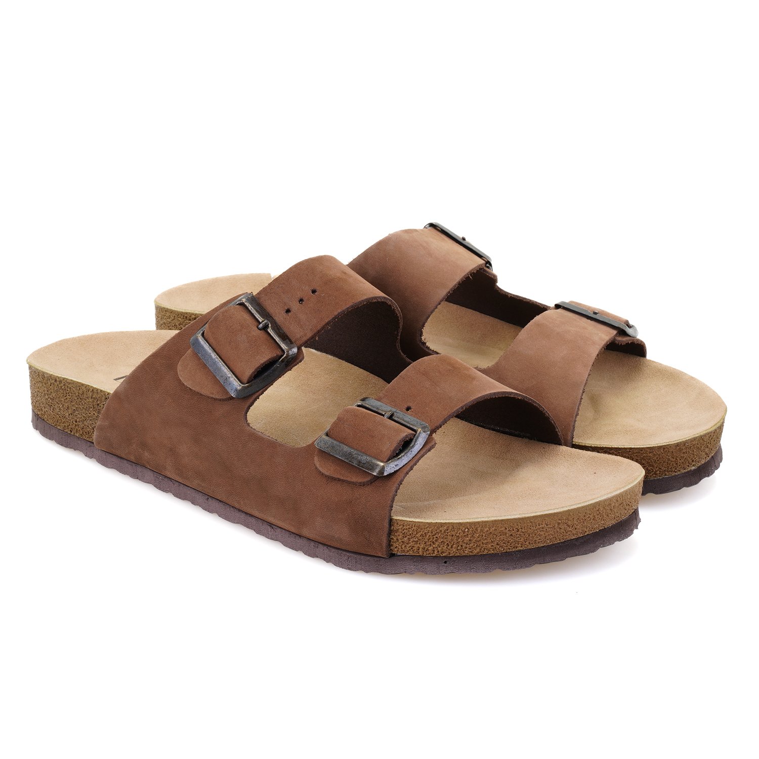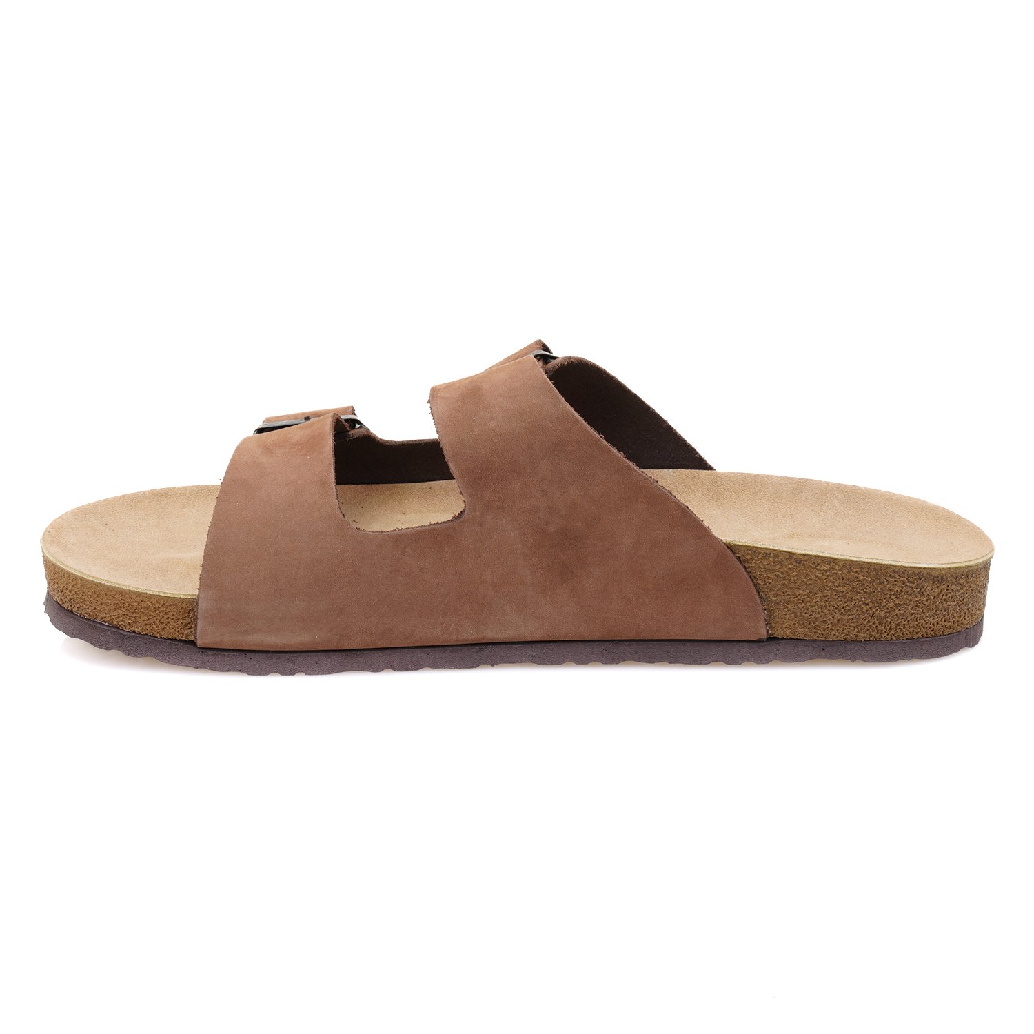 Nubuk deri,ayarlanabilir metal aksesuarlı, esnek hafif pu iç tabanlı,ultra hafif eva tabanlı erkek terlik.