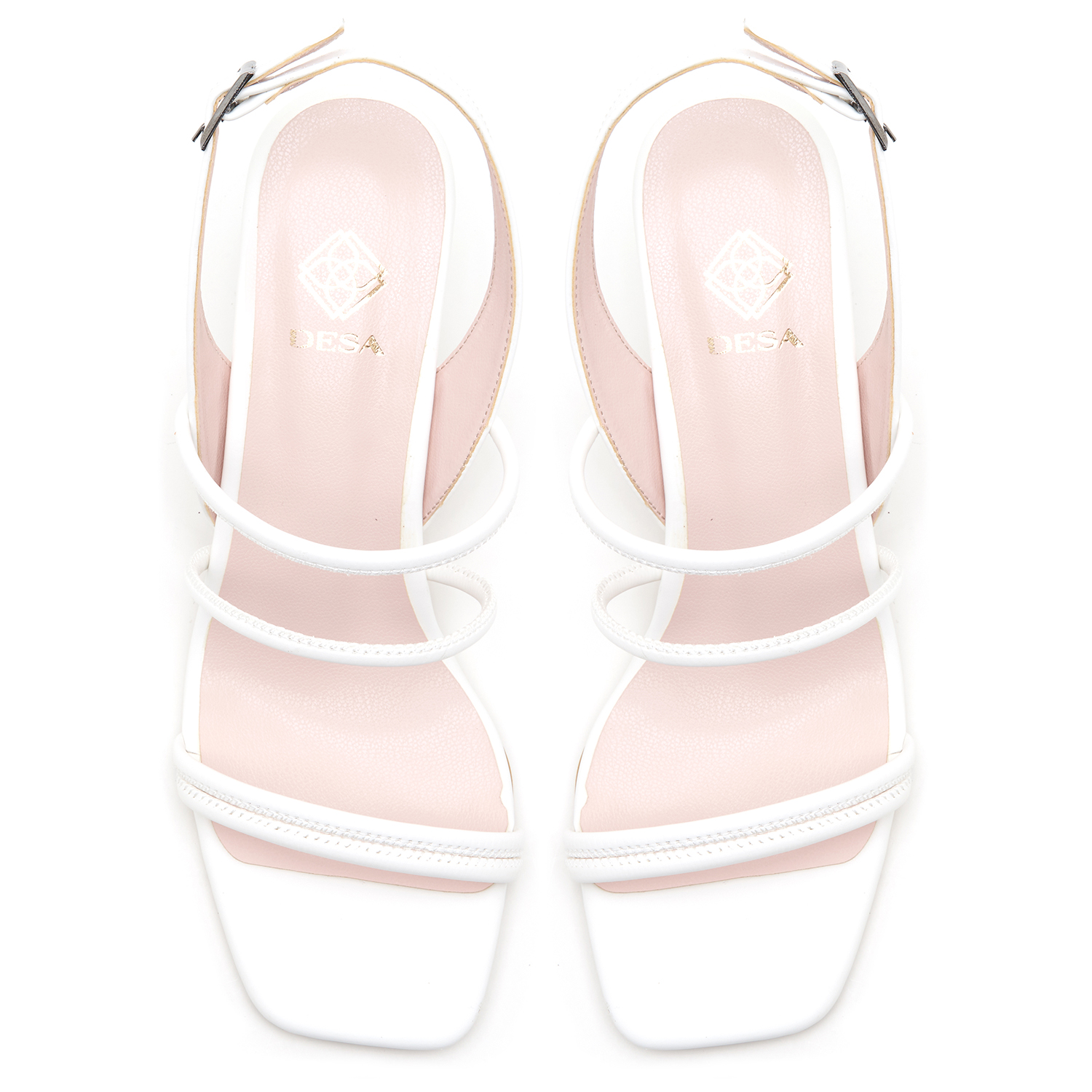 İnce biyelerden oluşan ,ayarlanabilir metal aksesuarlı,neolit tabanlı ,pu materyalden üretilmiş, kadın sandalet.