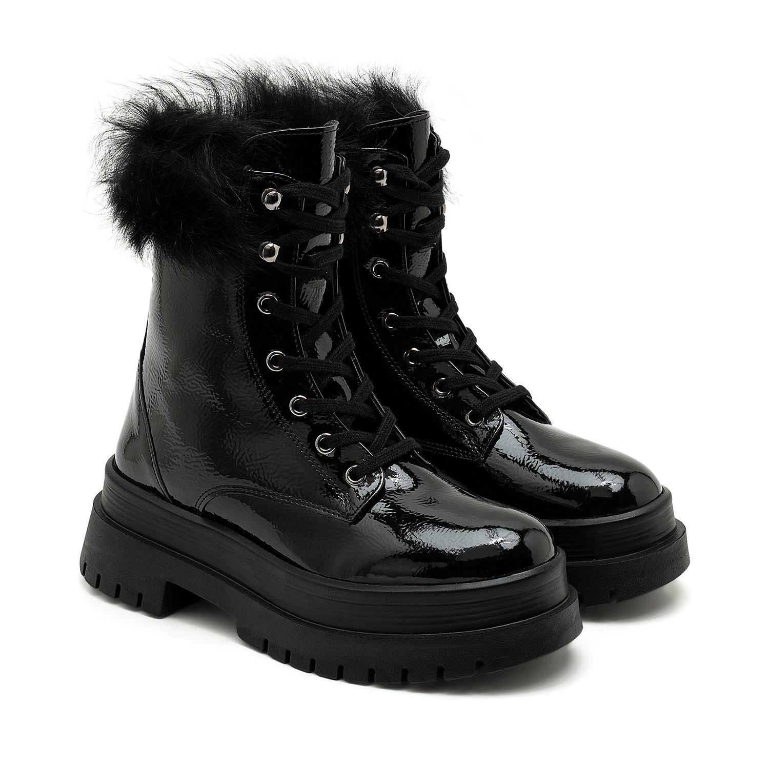 Pu materyalden üretilmiştir, tekstil iç astarlı, tekstil iç tabanlı, deri kürk detaylı, thermo tabanlı,içten fermuarlı bağcıklı kadın bot.
