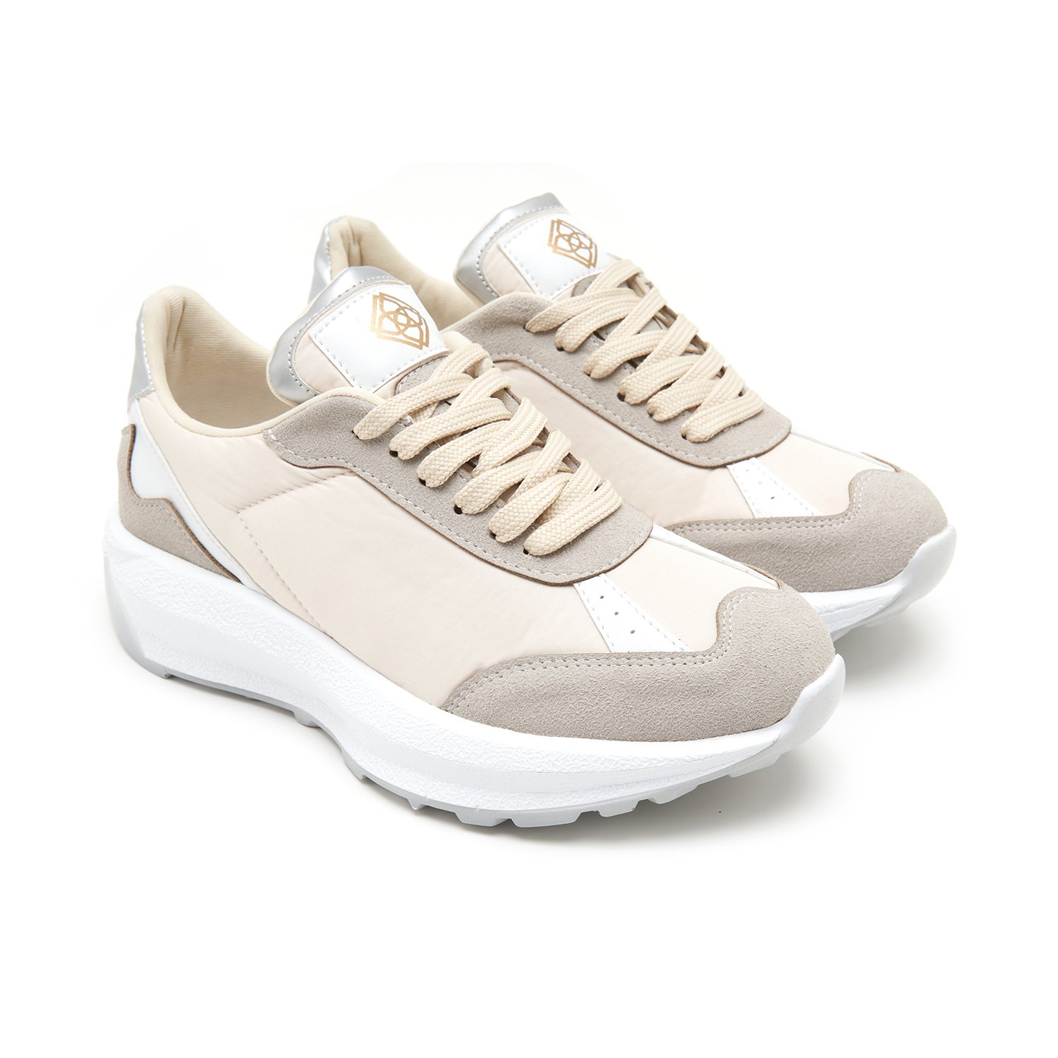 Bağcıklı, metalik deri detaylı, dayanıklı termo tabanlı ,pu ve tekstil materyalden üretilmiş kadın spor ayakkabı.