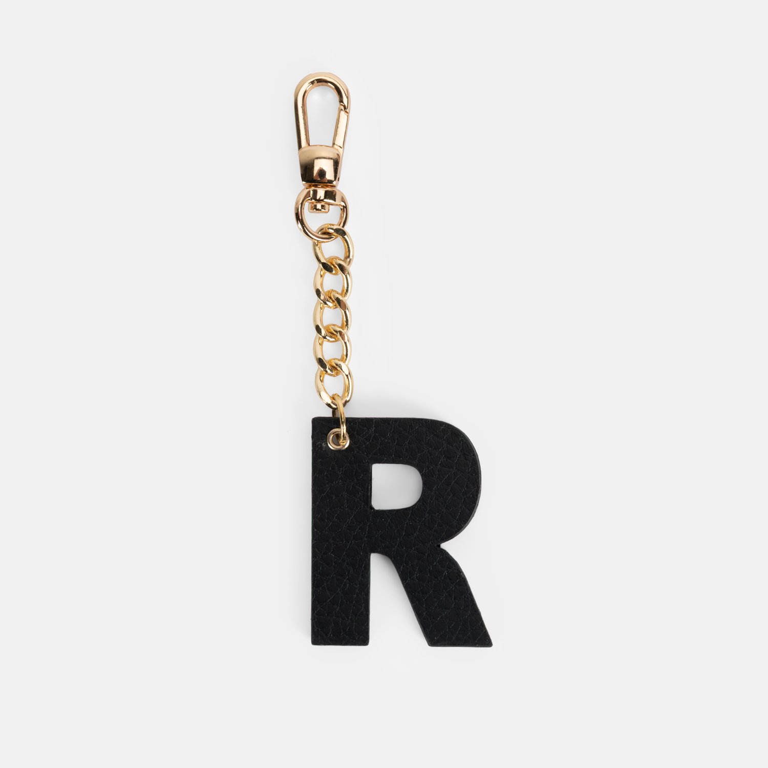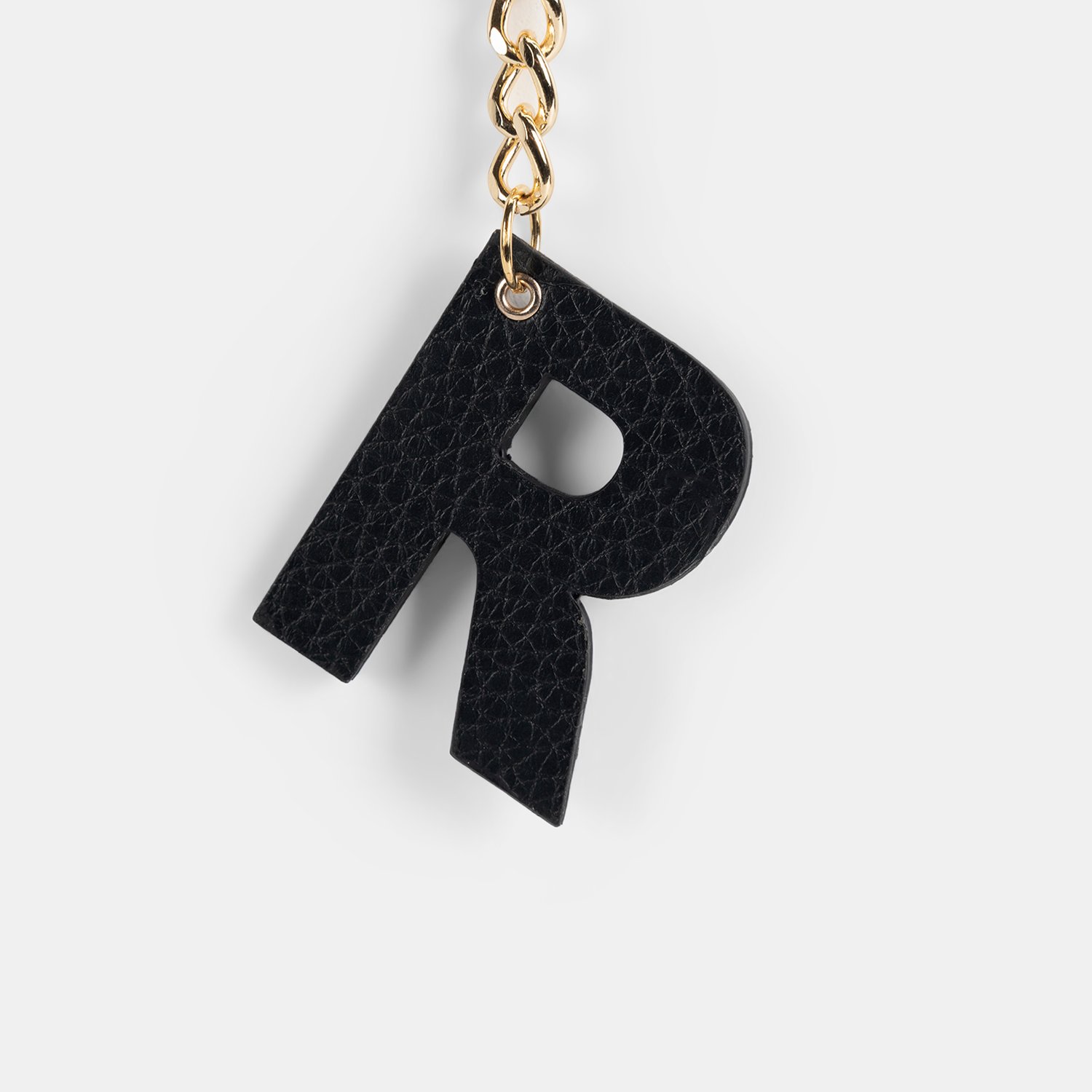 R Harfi Hakiki Deri Siyah Anahtarlık