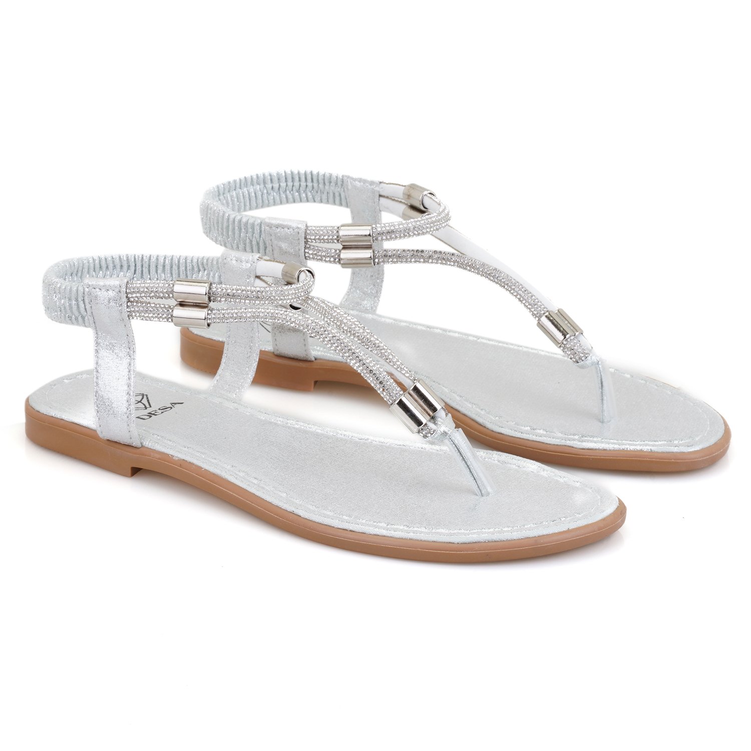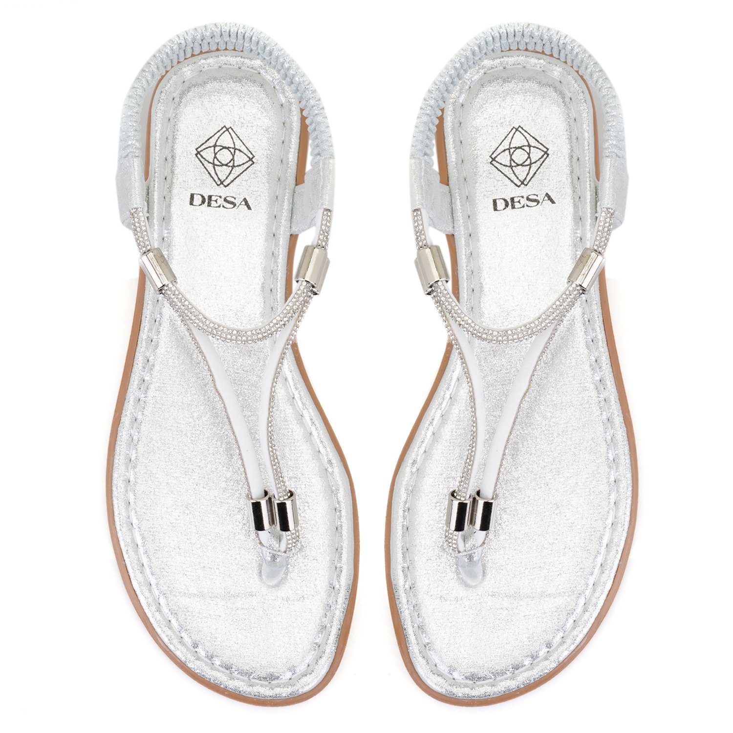 Regan Beyaz Kadın Parlak Taş Detaylı Parmak Arası Sandalet