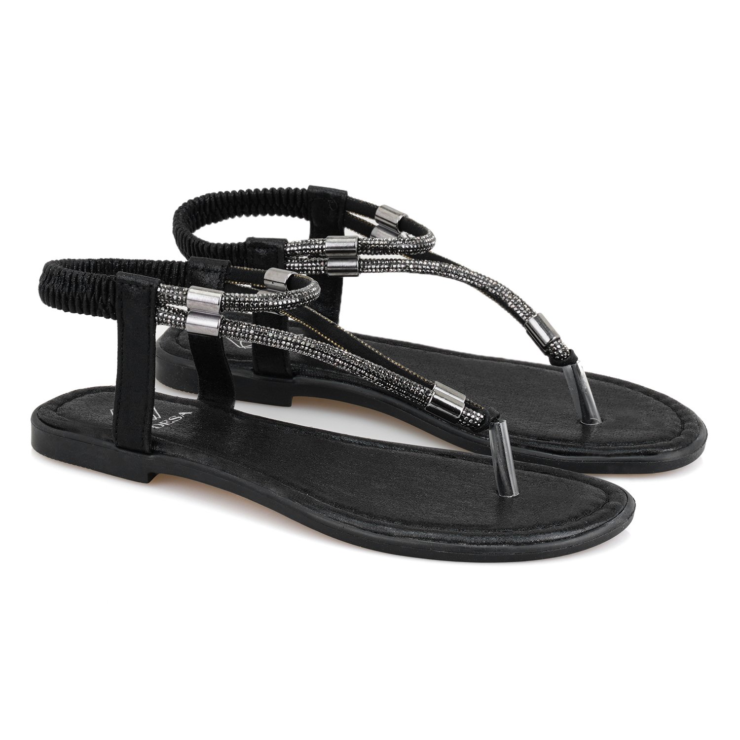 Regan Siyah Kadın Parlak Taş Detaylı Parmak Arası Sandalet