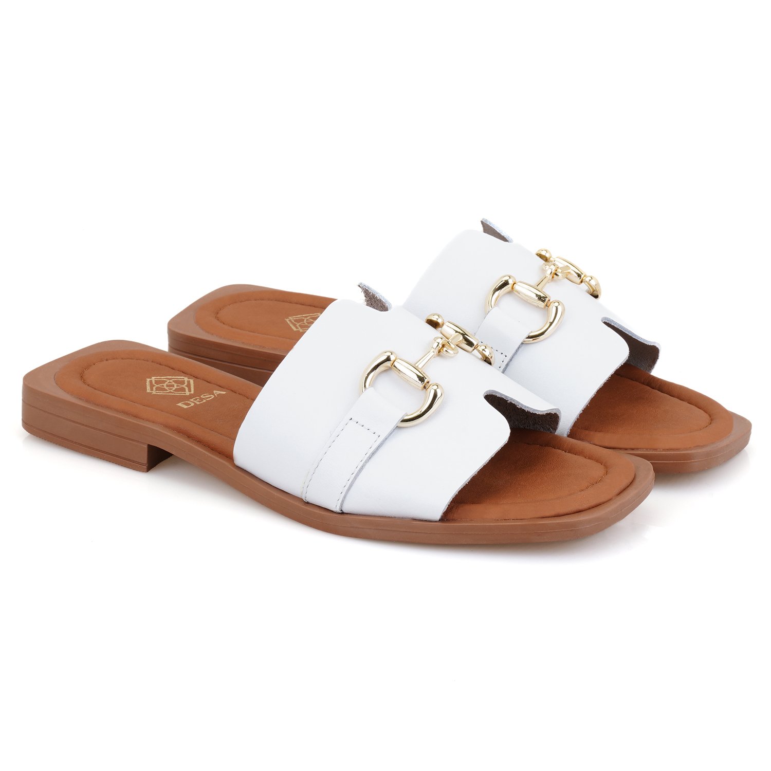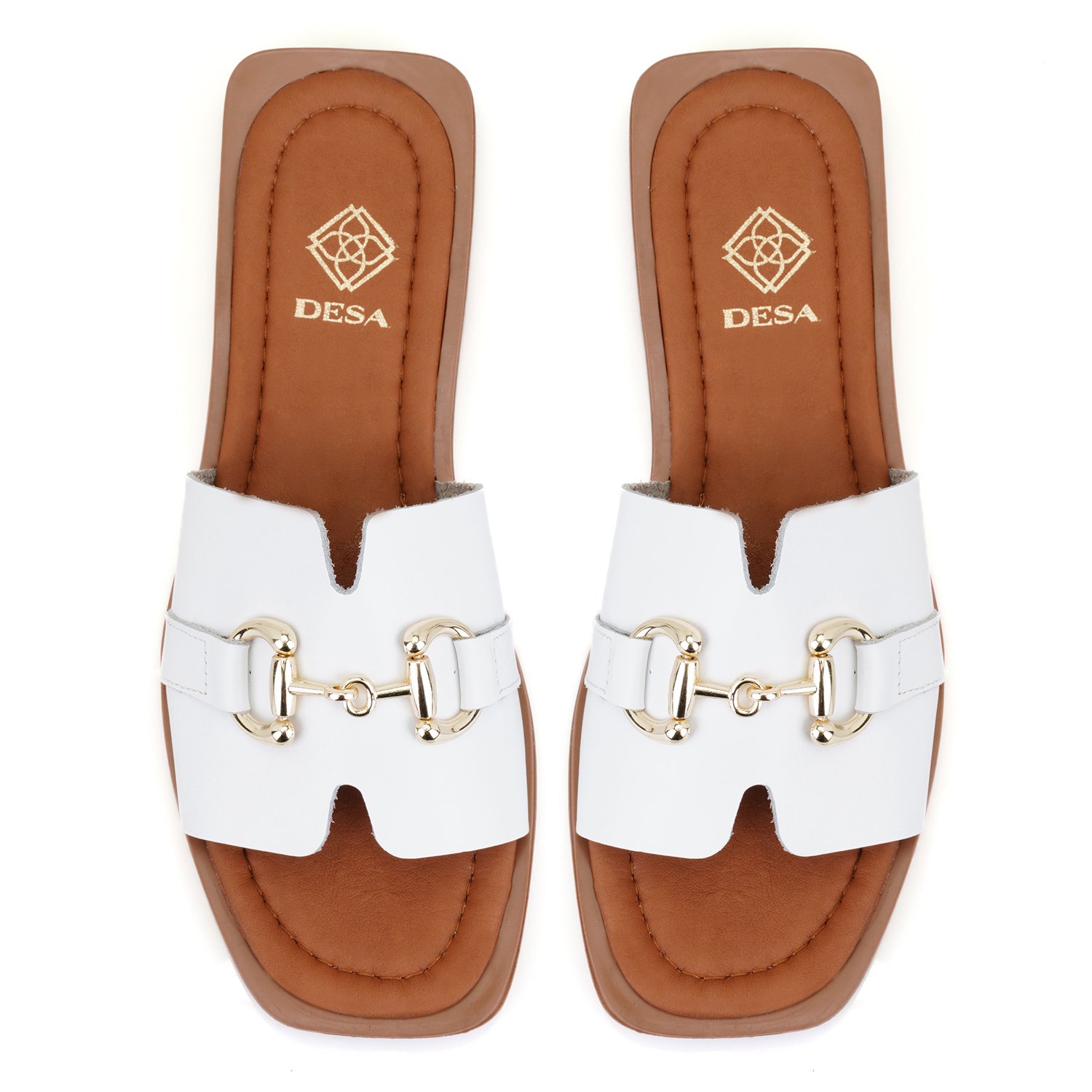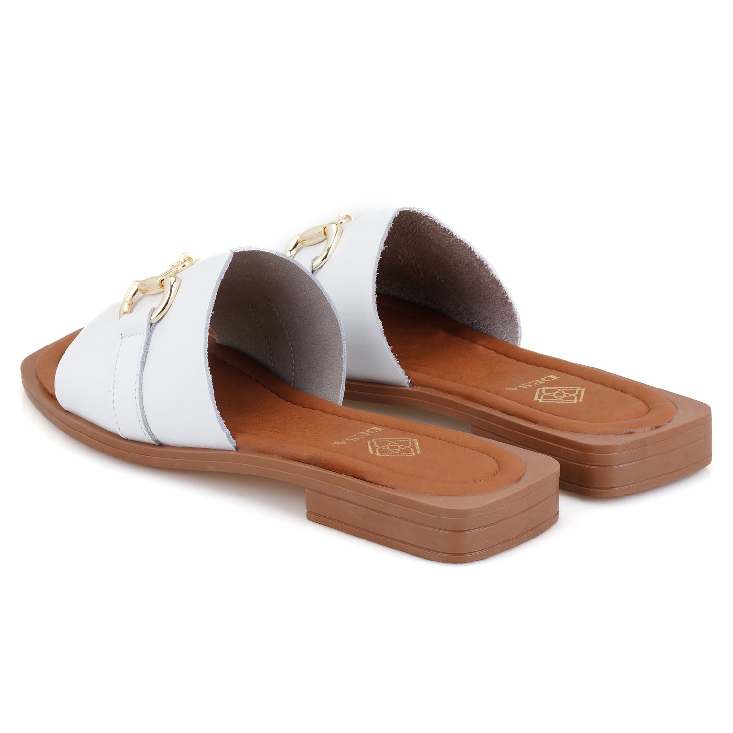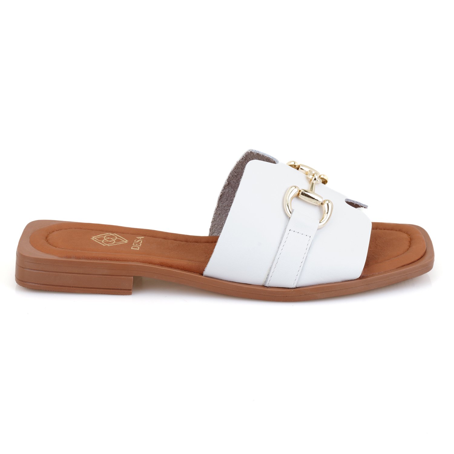 Riana Beyaz Kadın Toka Aksesuarlı Deri Terlik