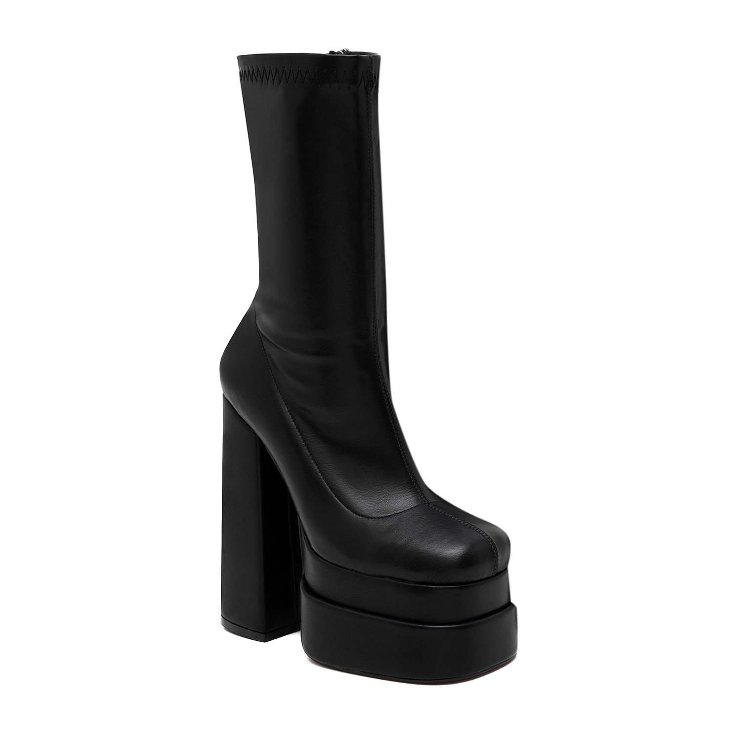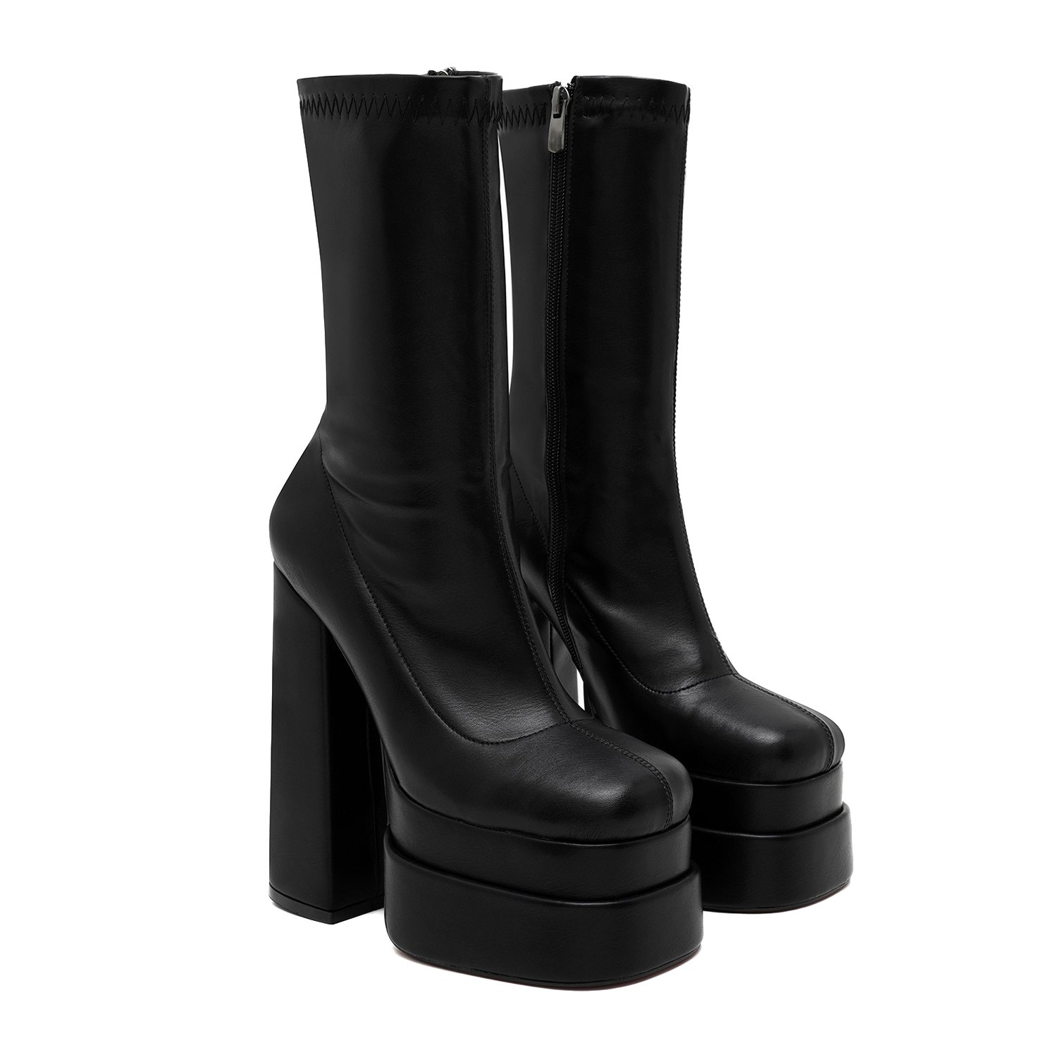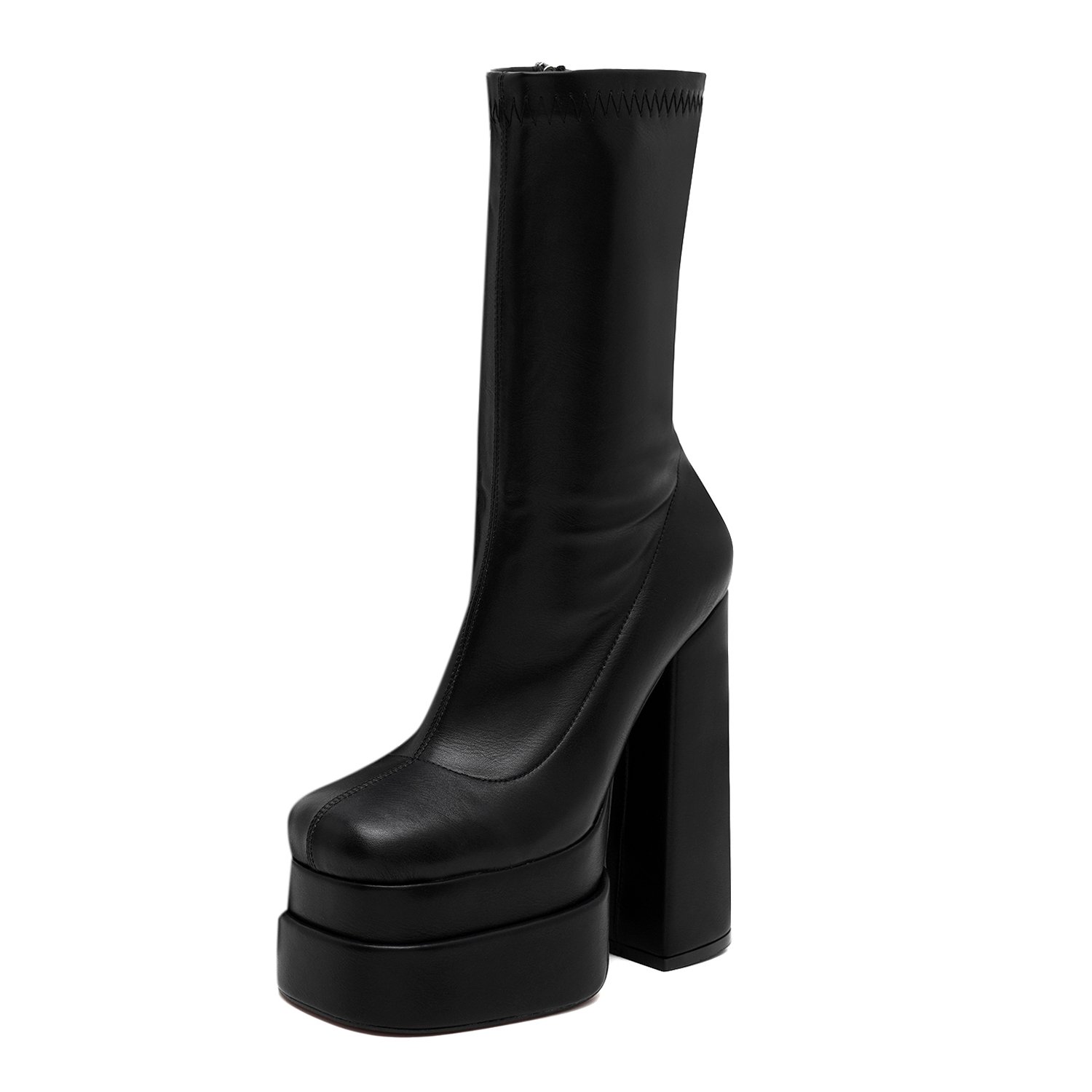 Pu iç tabanlı, pu astarlı, neolit tabanlı, stretch detaylı, platform topuklu kadın bot.