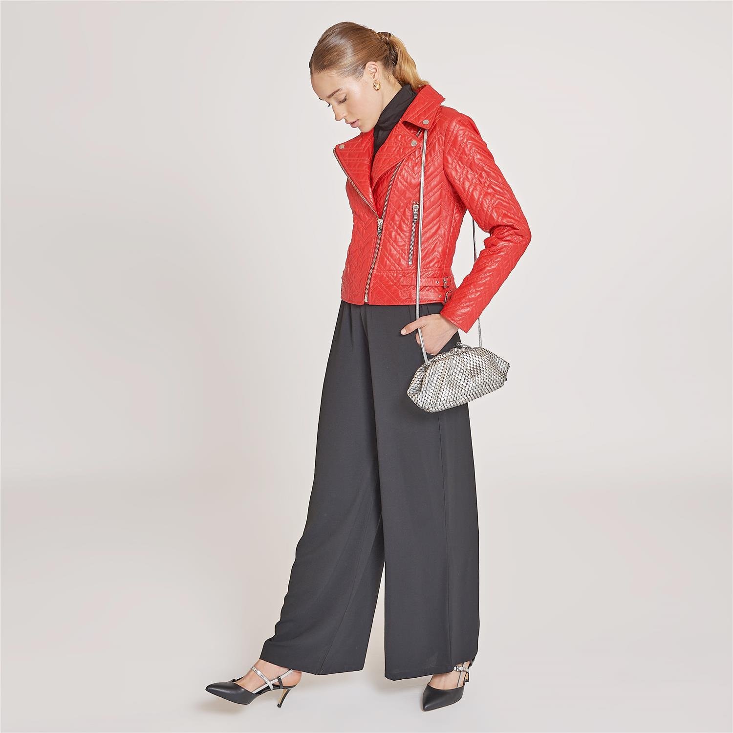 Dikiş detayı bulunan, yandan fermuar kapamalıdır.