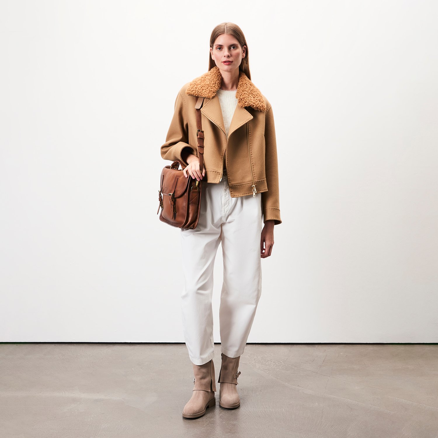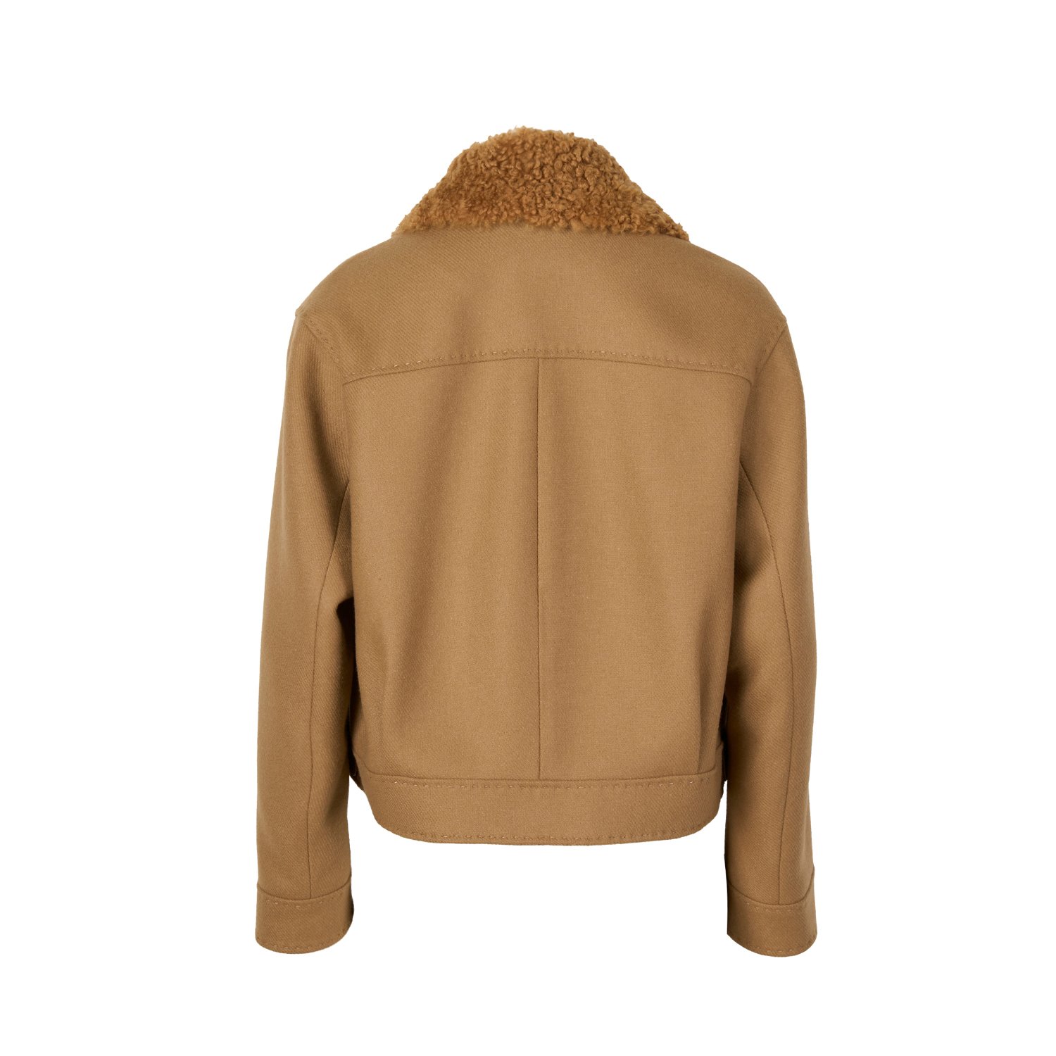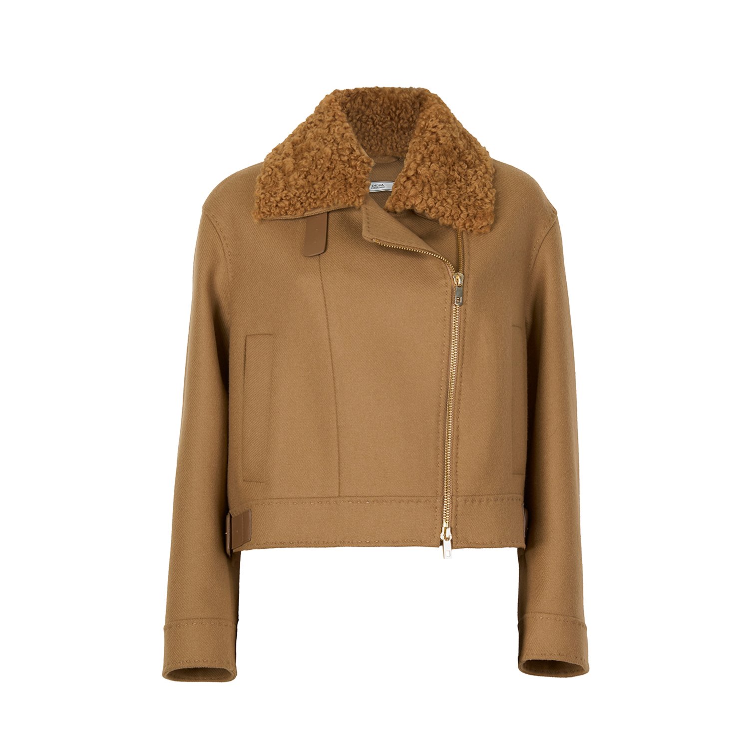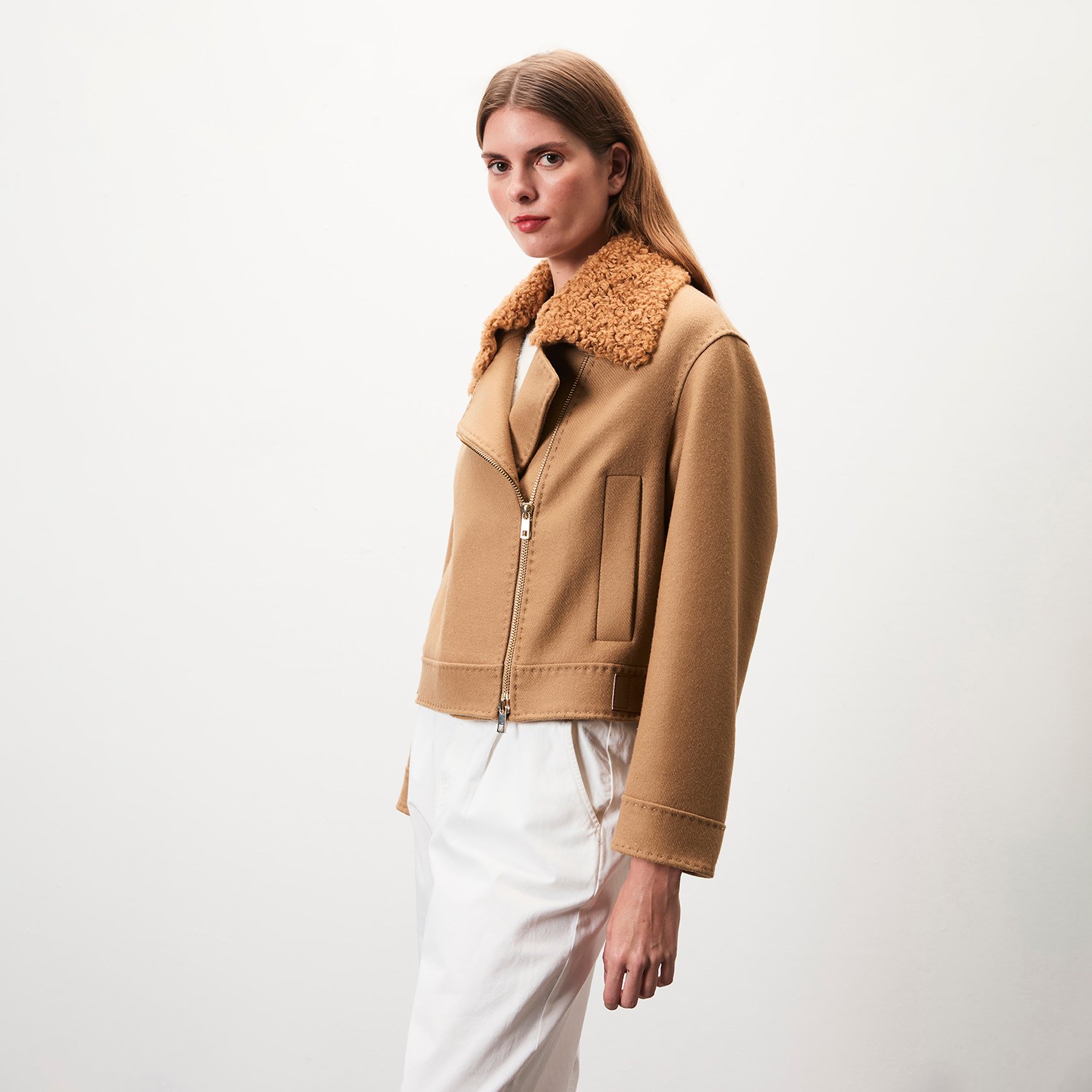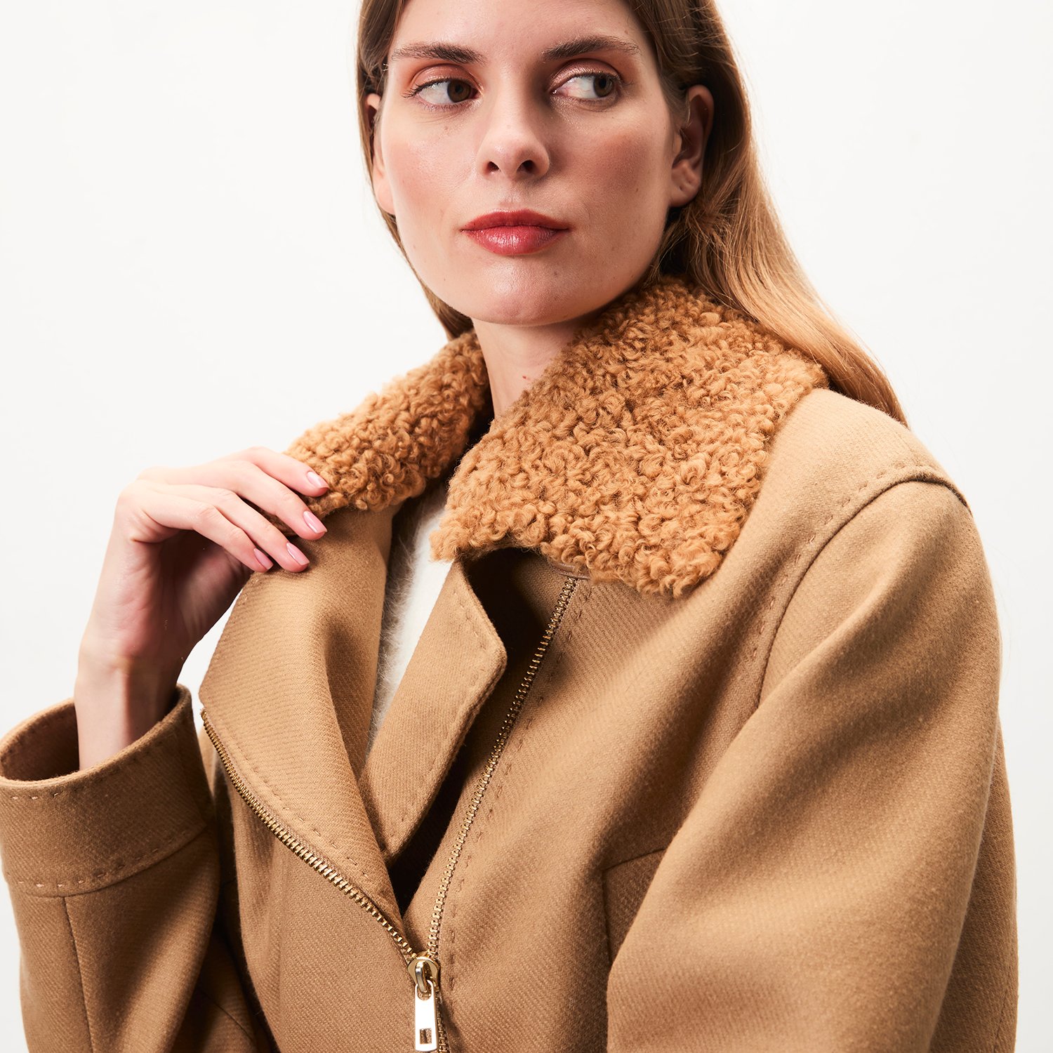 Rigella Kahve Yakası Kürklü Kadın Biker Ceket