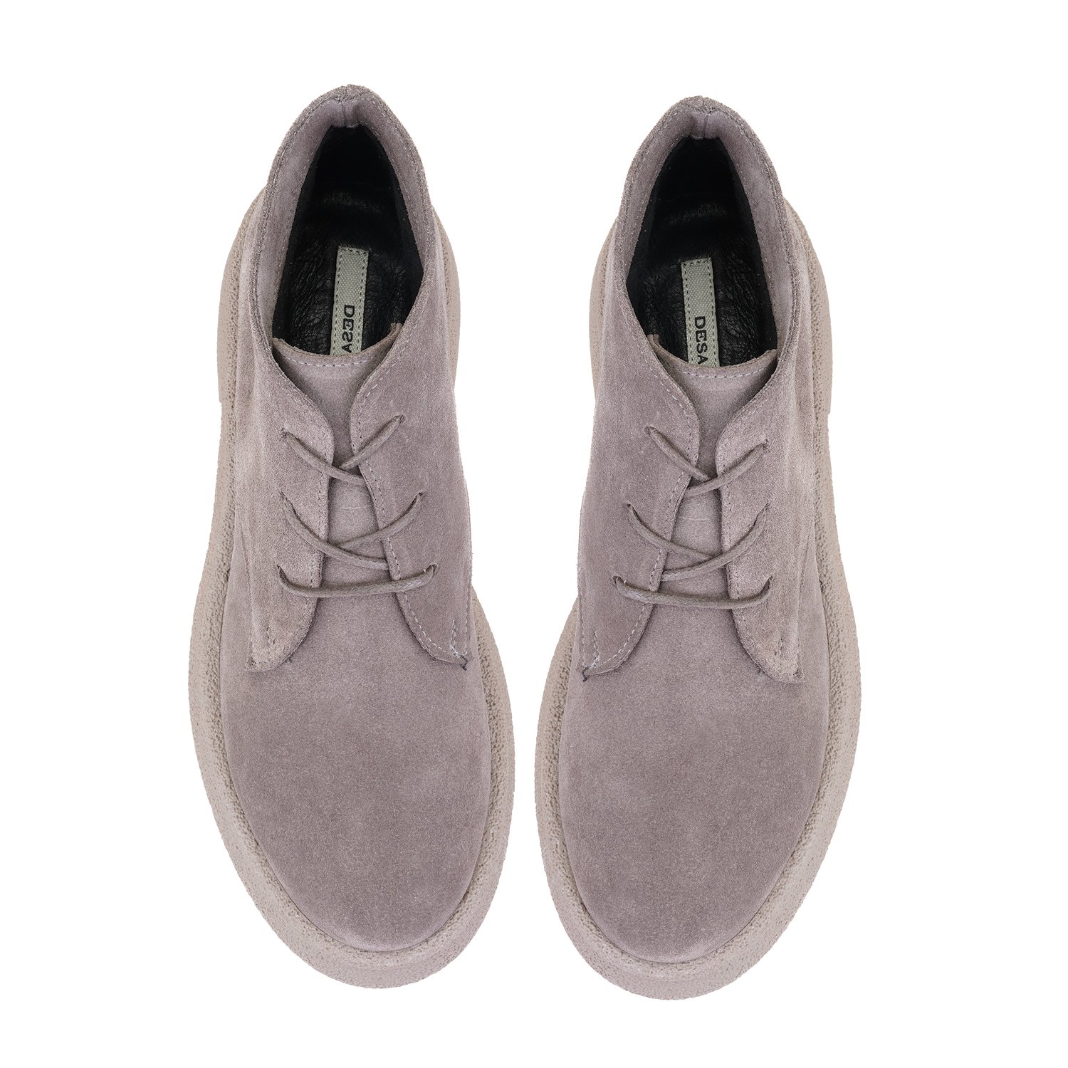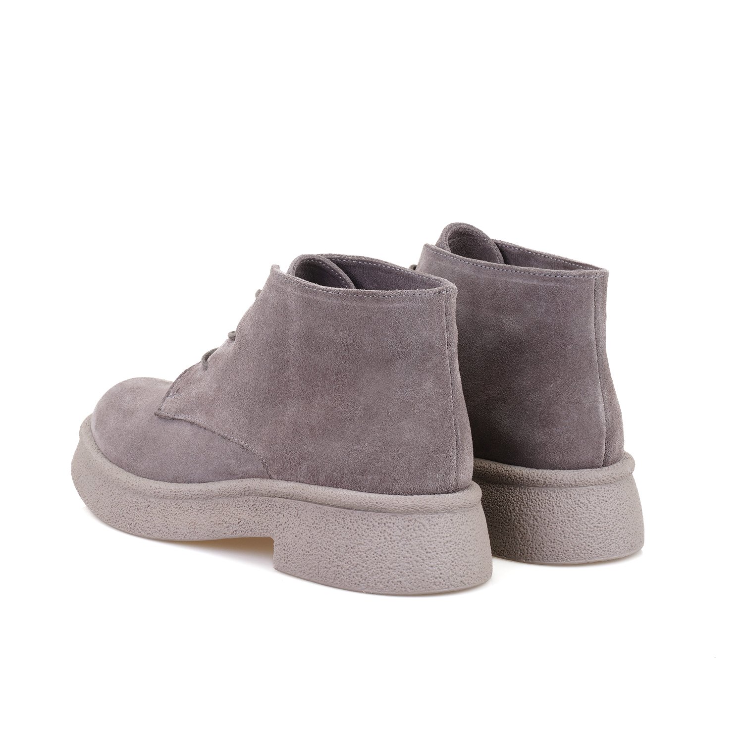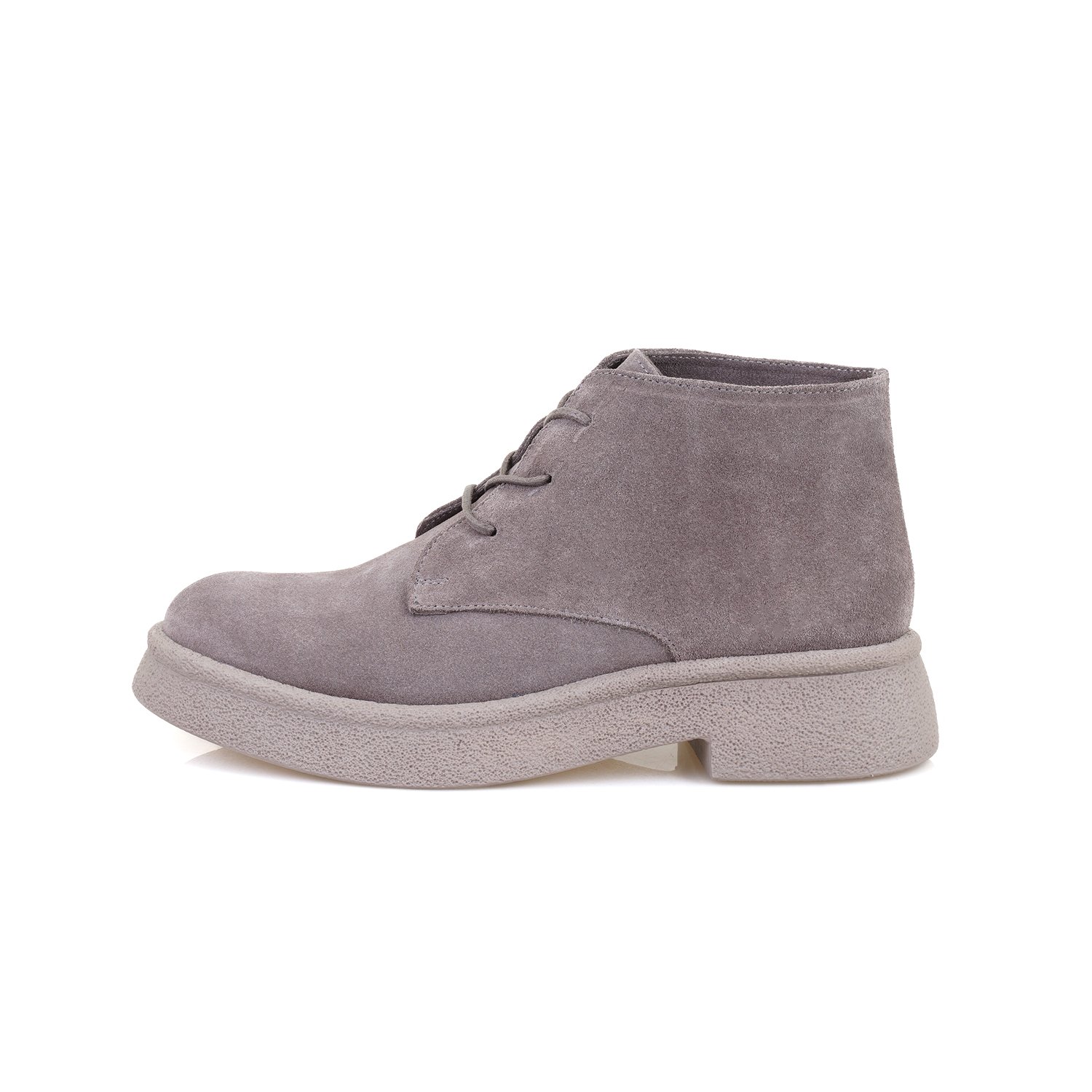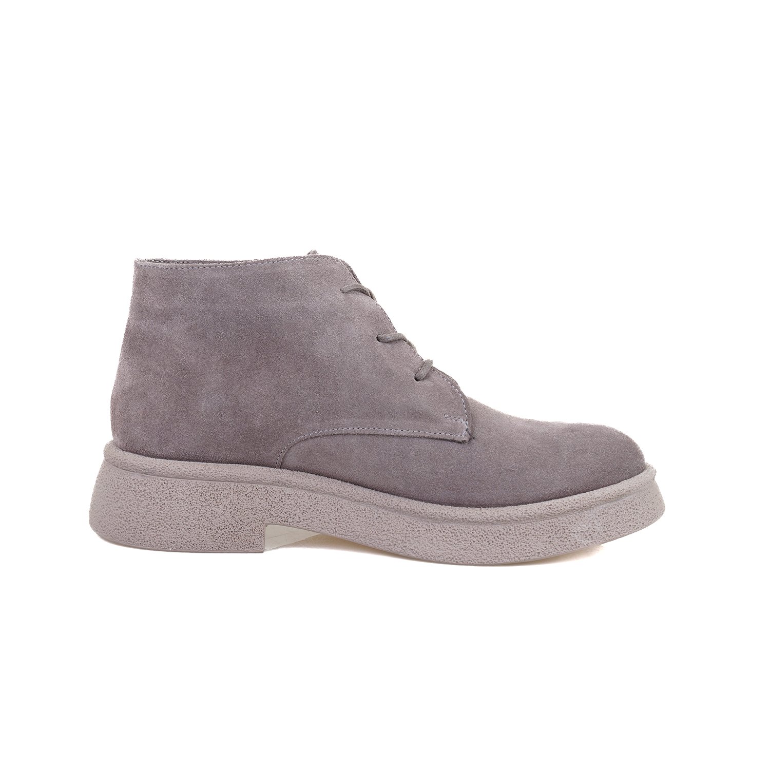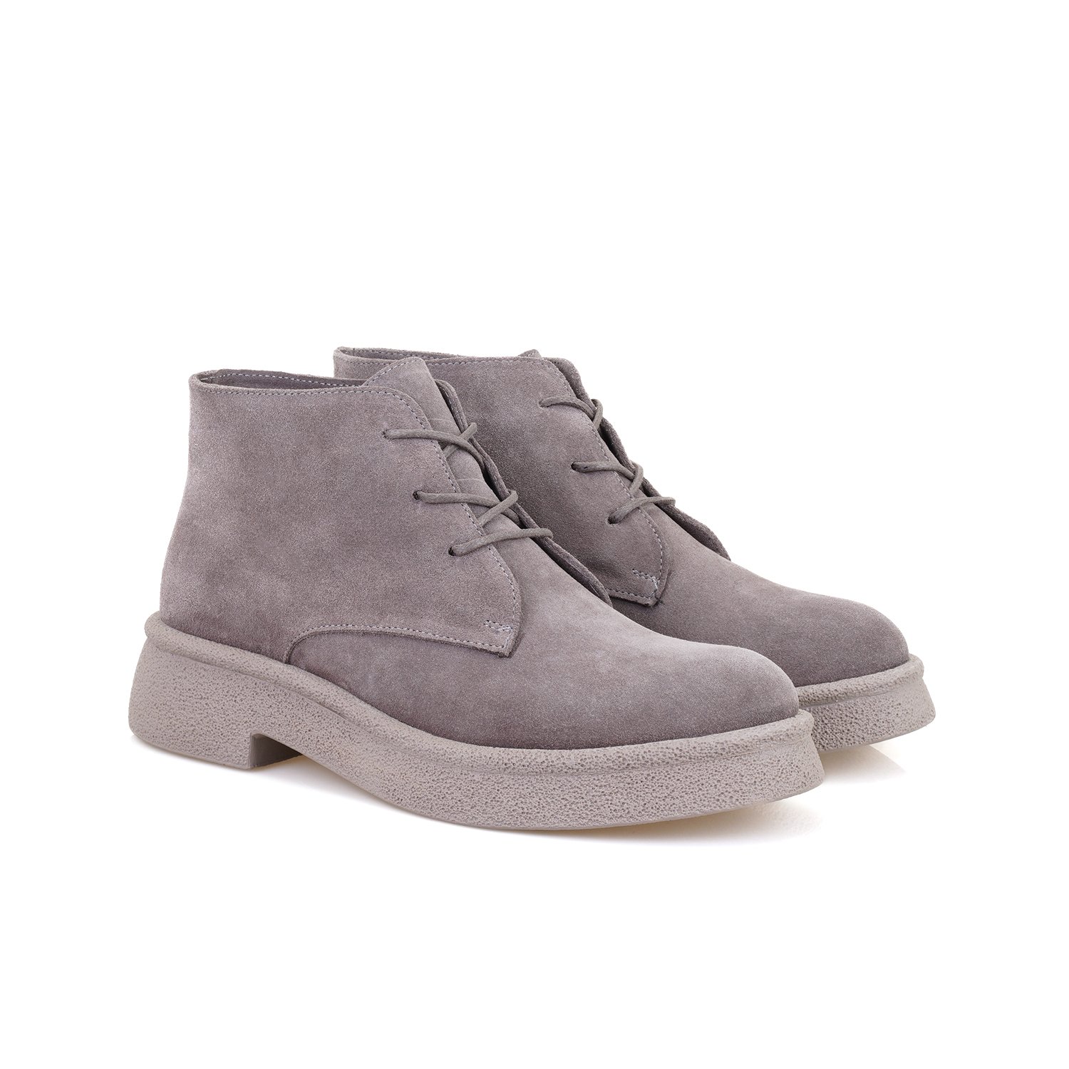 %100 süet deri, deri iç tabanlı, tekstil astarlı, kauçuk tabanlı, bağcıklı kadın bot.