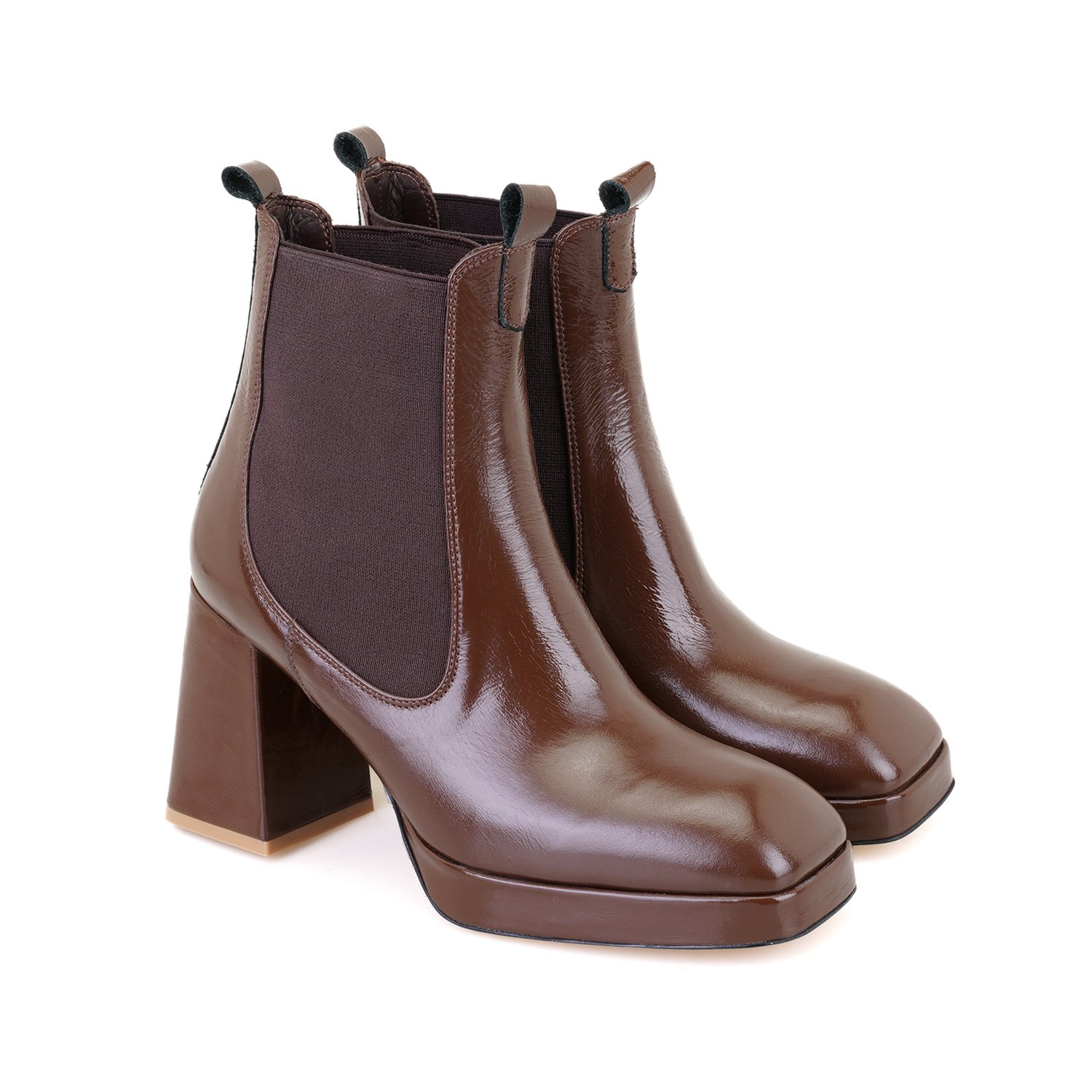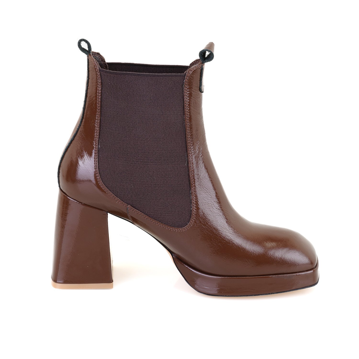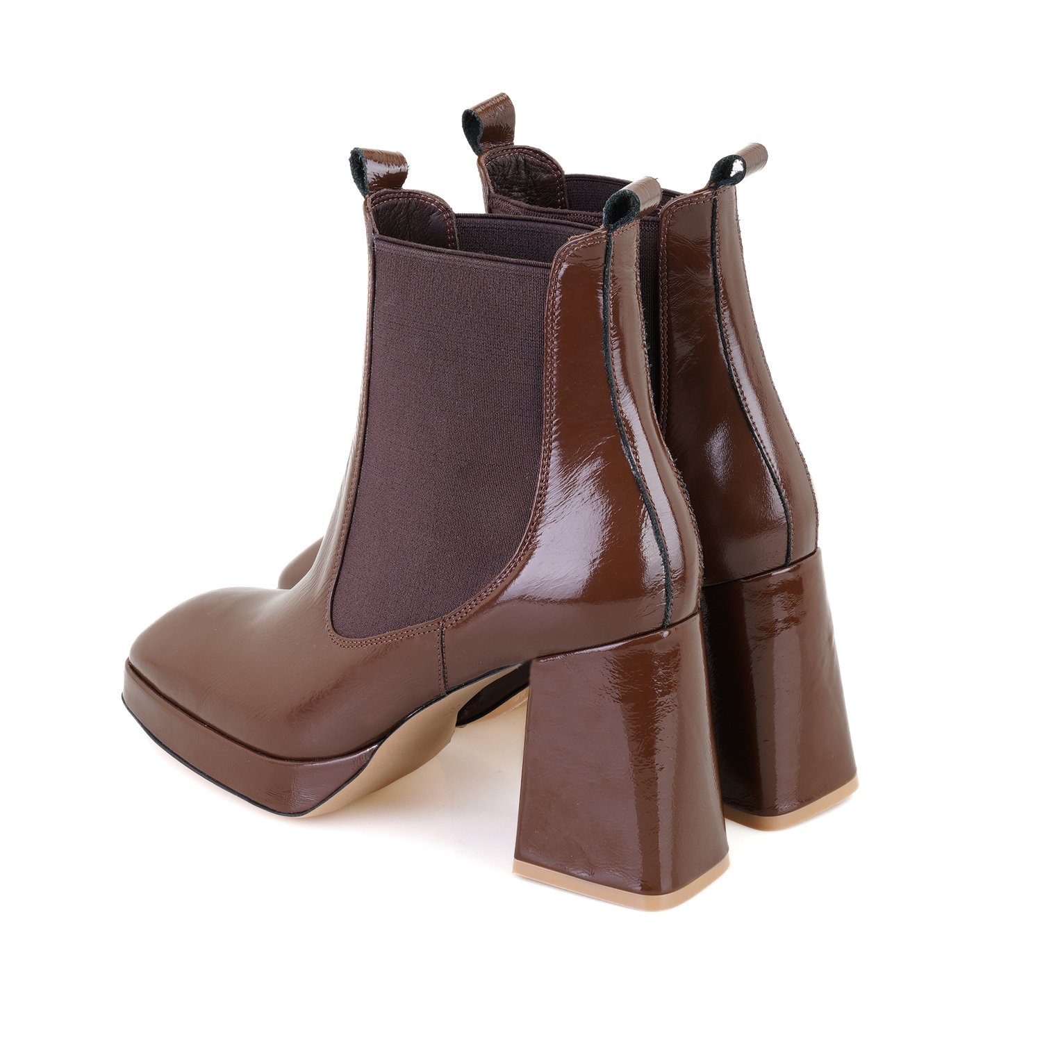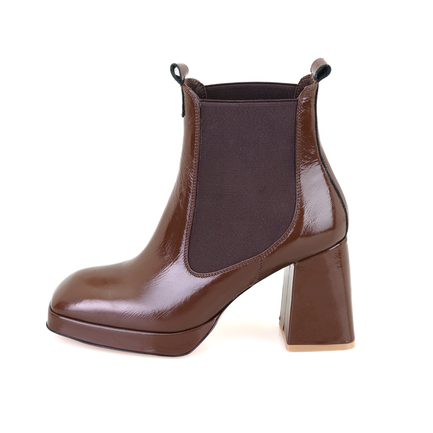 %100 deri, deri iç tabanlı, deri astarlı, lastik detaylı, neolit tabanlı, platformlu kadın topuklu bot.