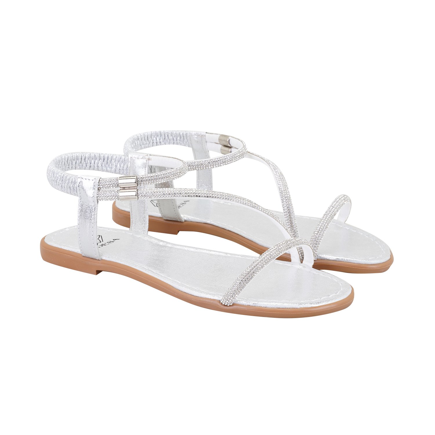 Rosmen Gri Kadın Parlak Taş Detaylı Sandalet