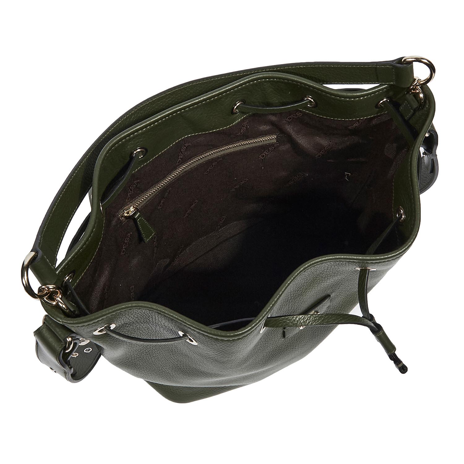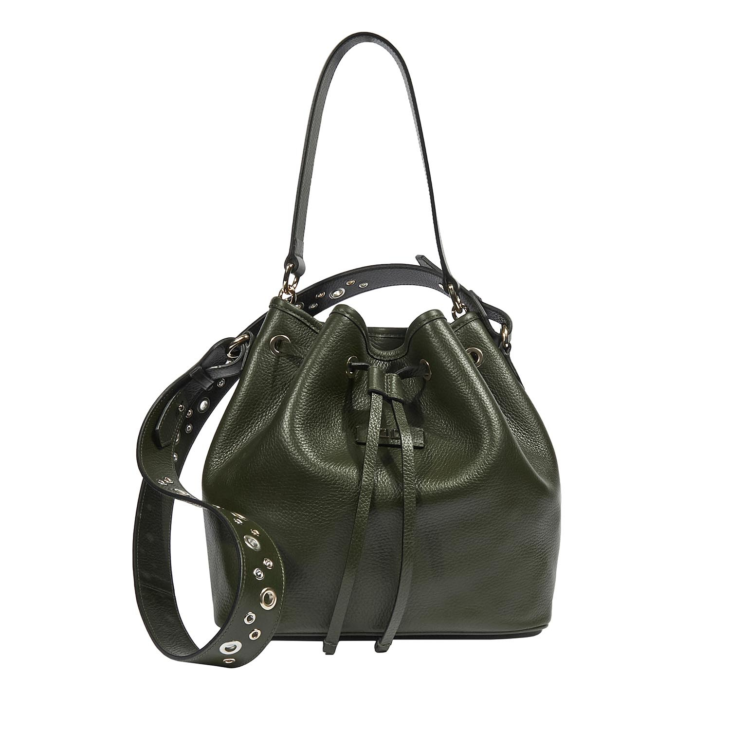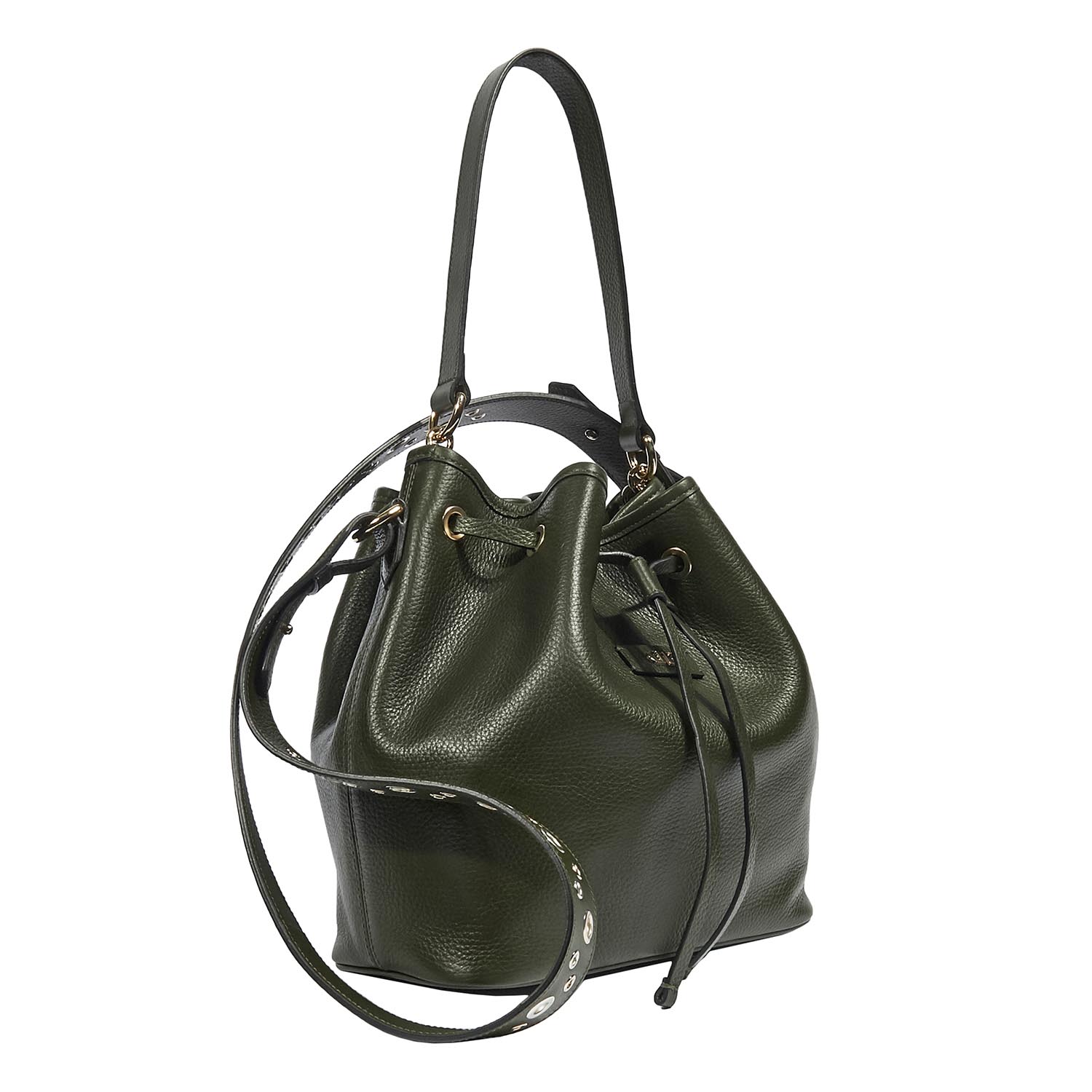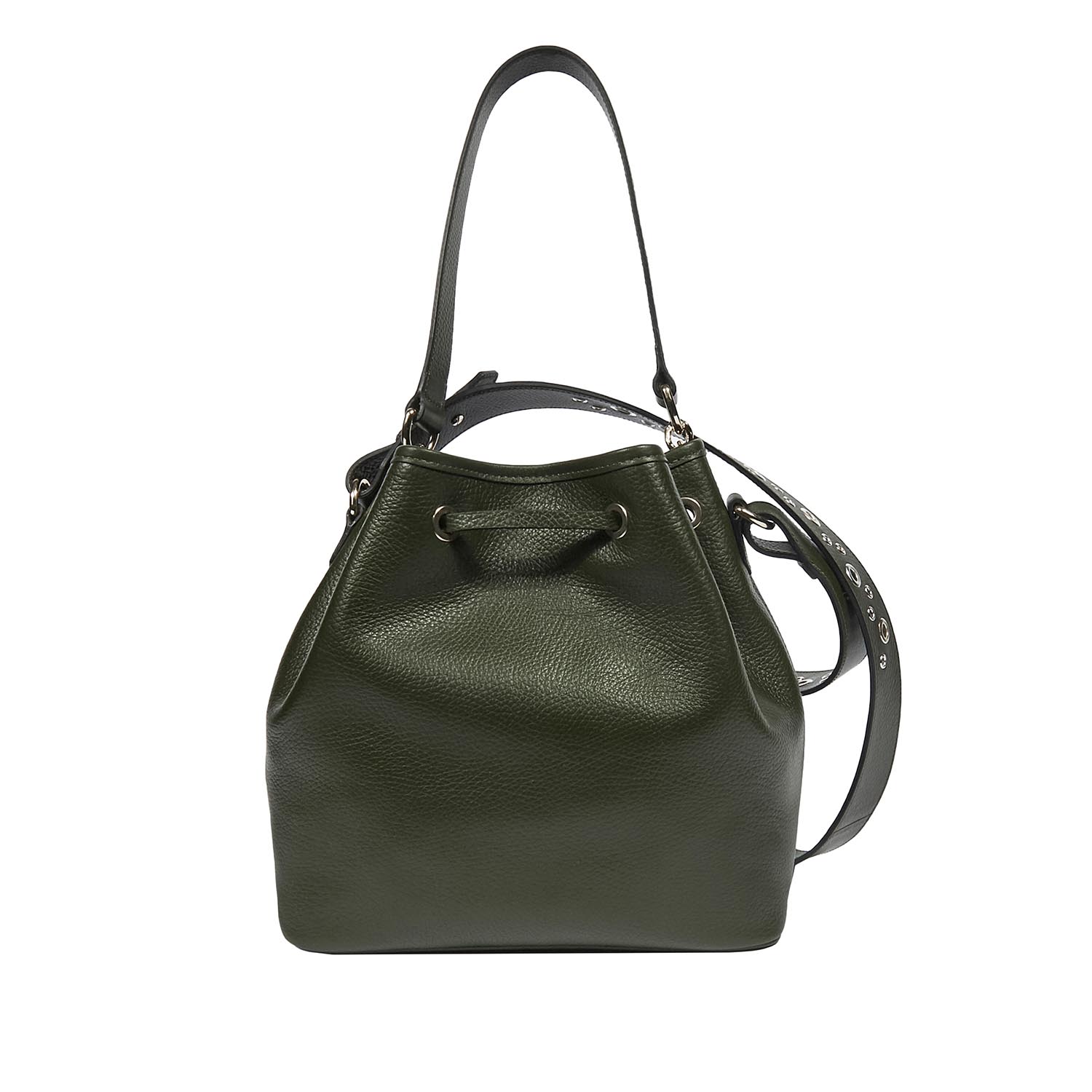 Metalik kuş göz aksesuarlı, ayarlanabilir omuz ve el saplı.